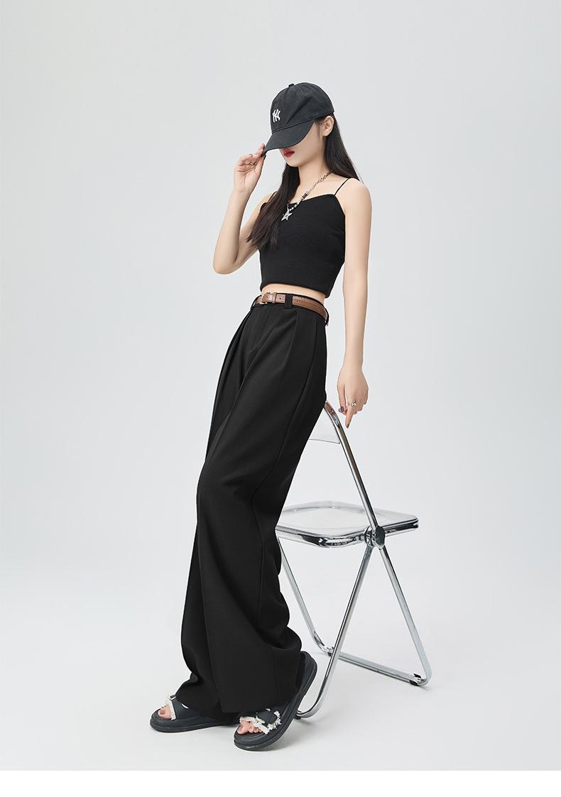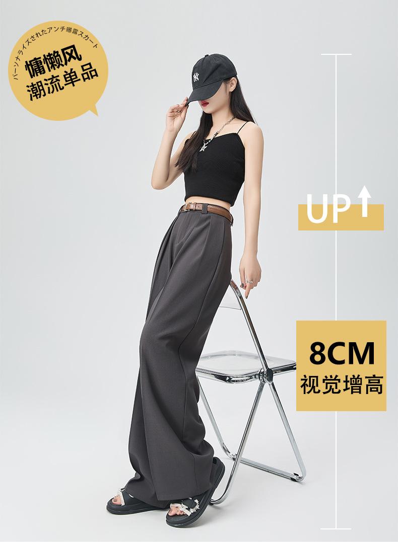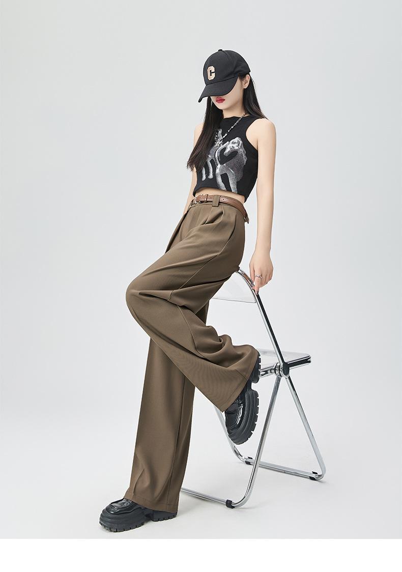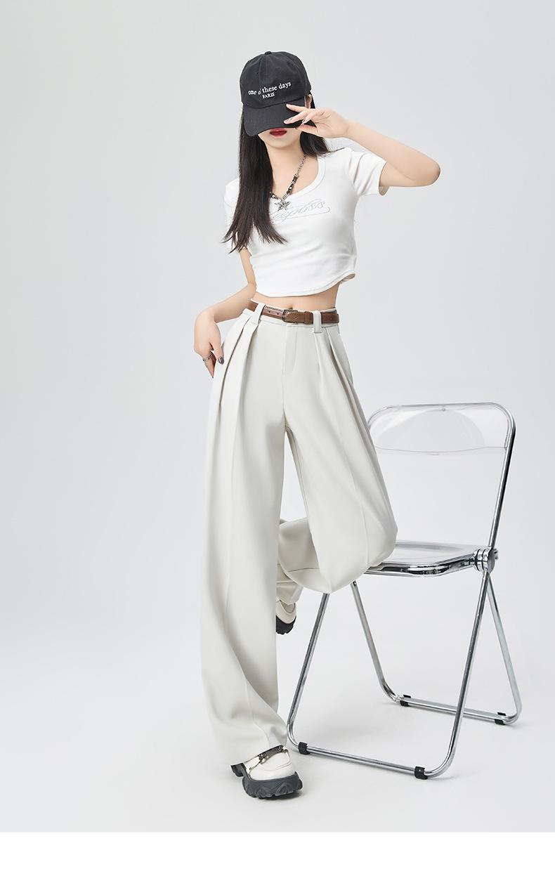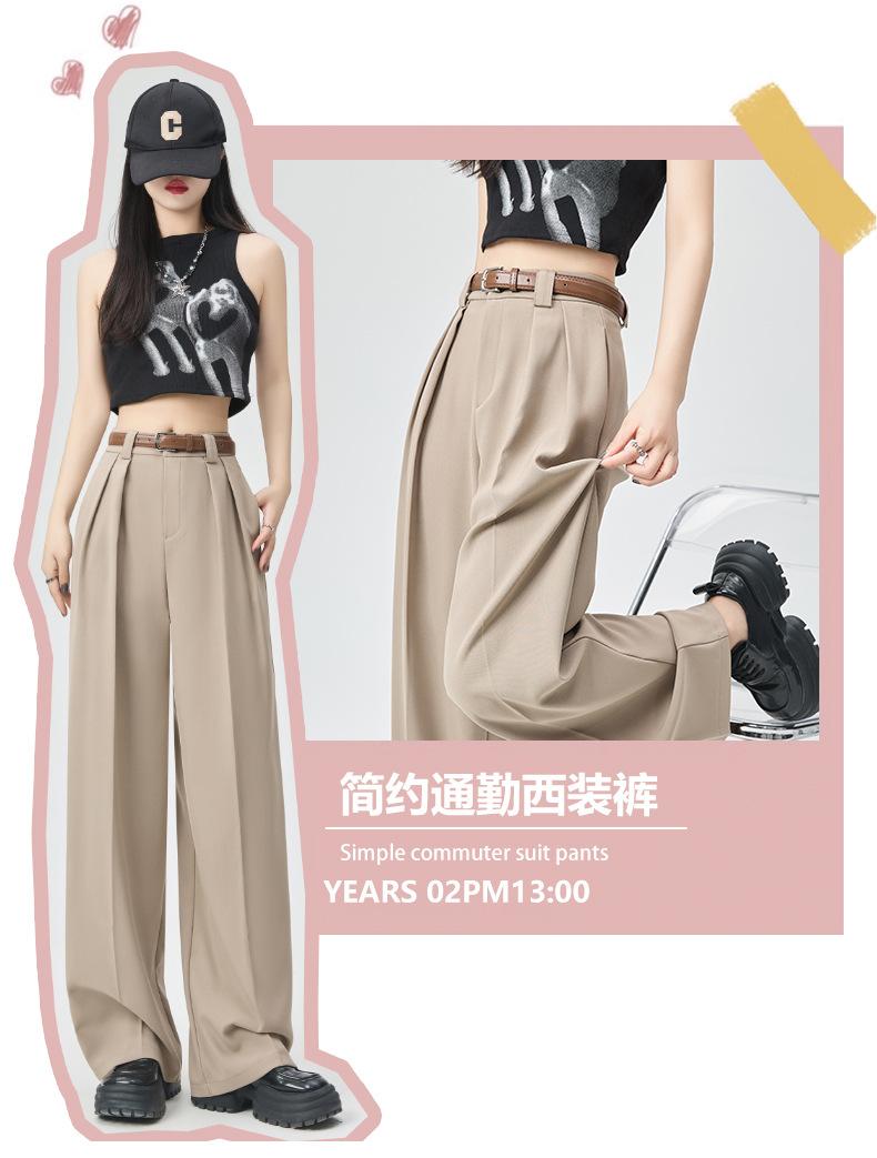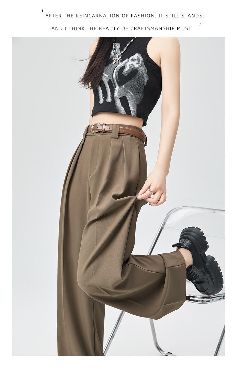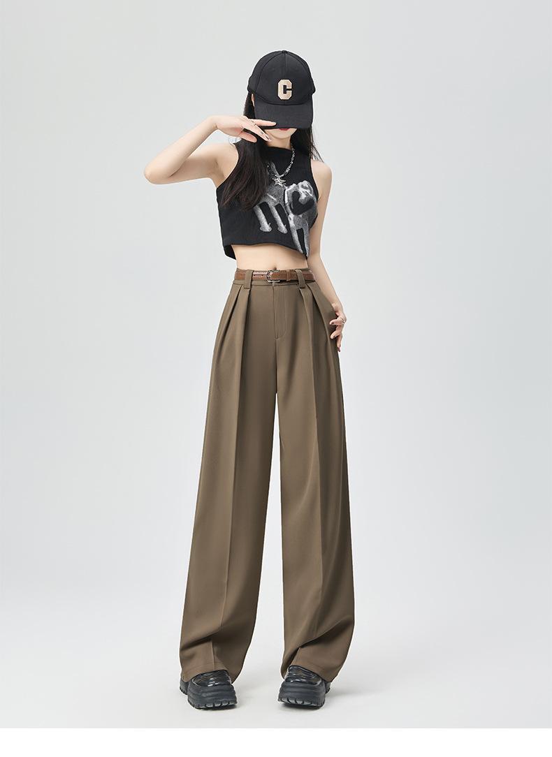 Pantalones de Pierna Ancha de Cintura Alta para Mujer, Primavera y Verano Drapeado Recto Casual Ajustado Largo hasta el Piso Elegante Sencillo Pantalones de Traje