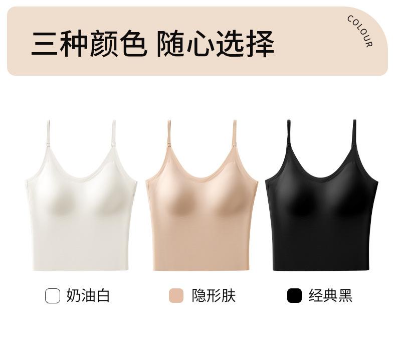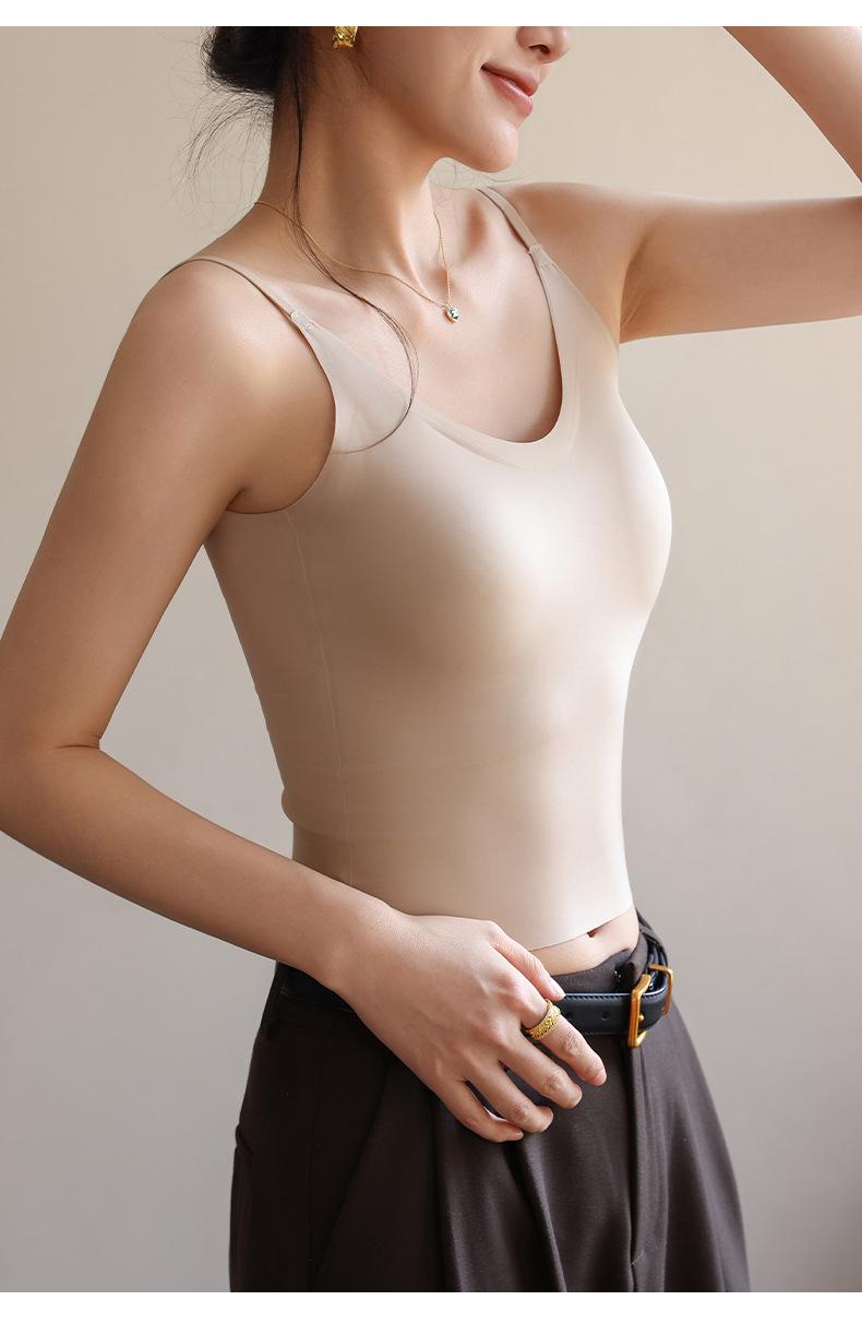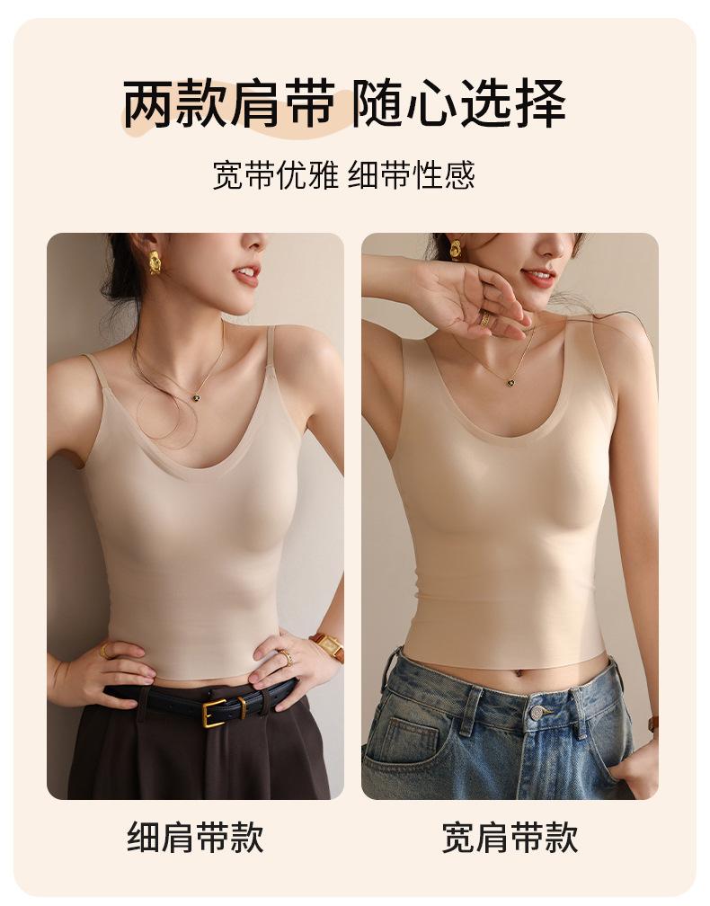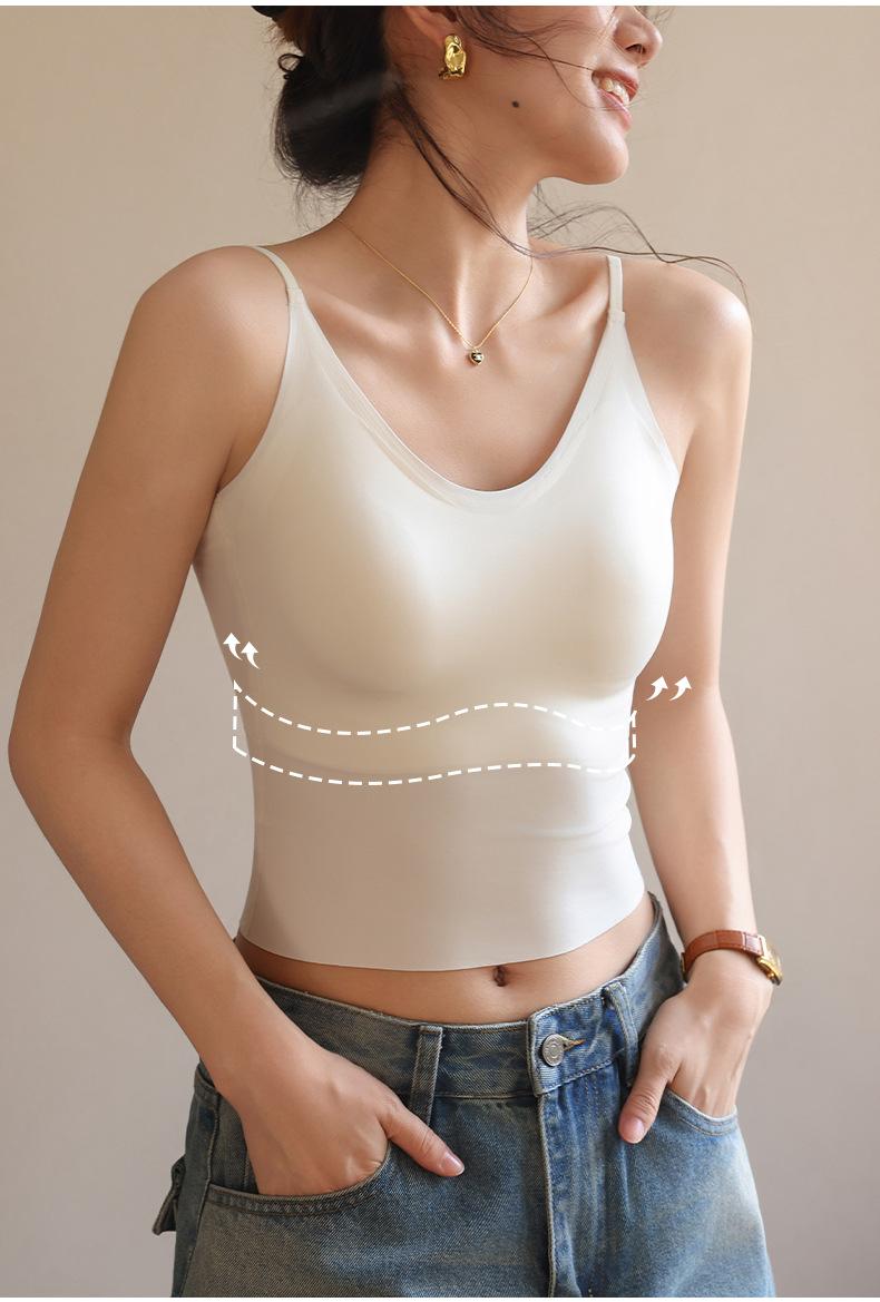 Camisola de color piel para mujer, prenda exterior de verano, sujetador de base de una pieza con almohadilla para el pecho, prenda interior sin marcas, top ligero anti-correr