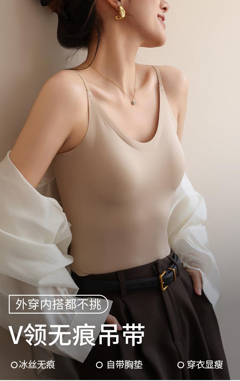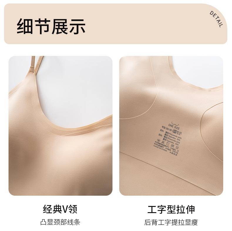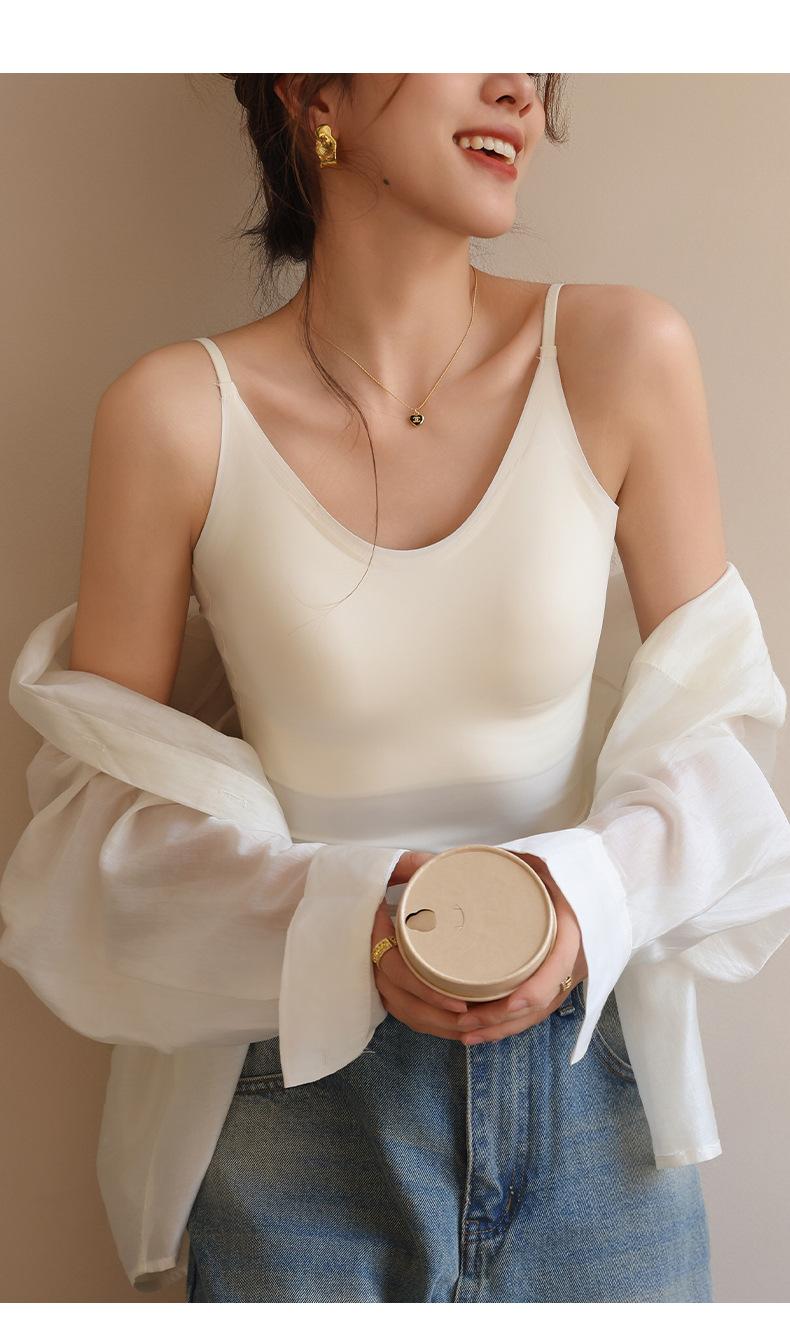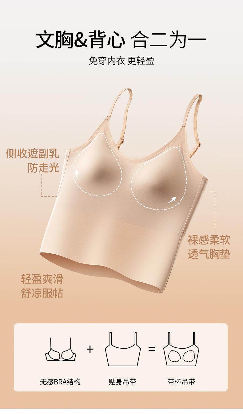 Camisola de color piel para mujer, prenda exterior de verano, sujetador de base de una pieza con almohadilla para el pecho, prenda interior sin marcas, top ligero anti-correr