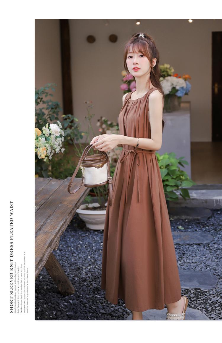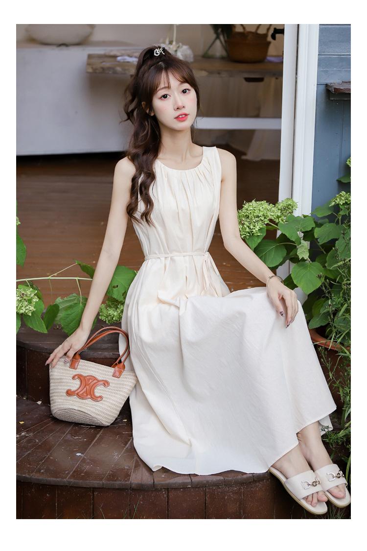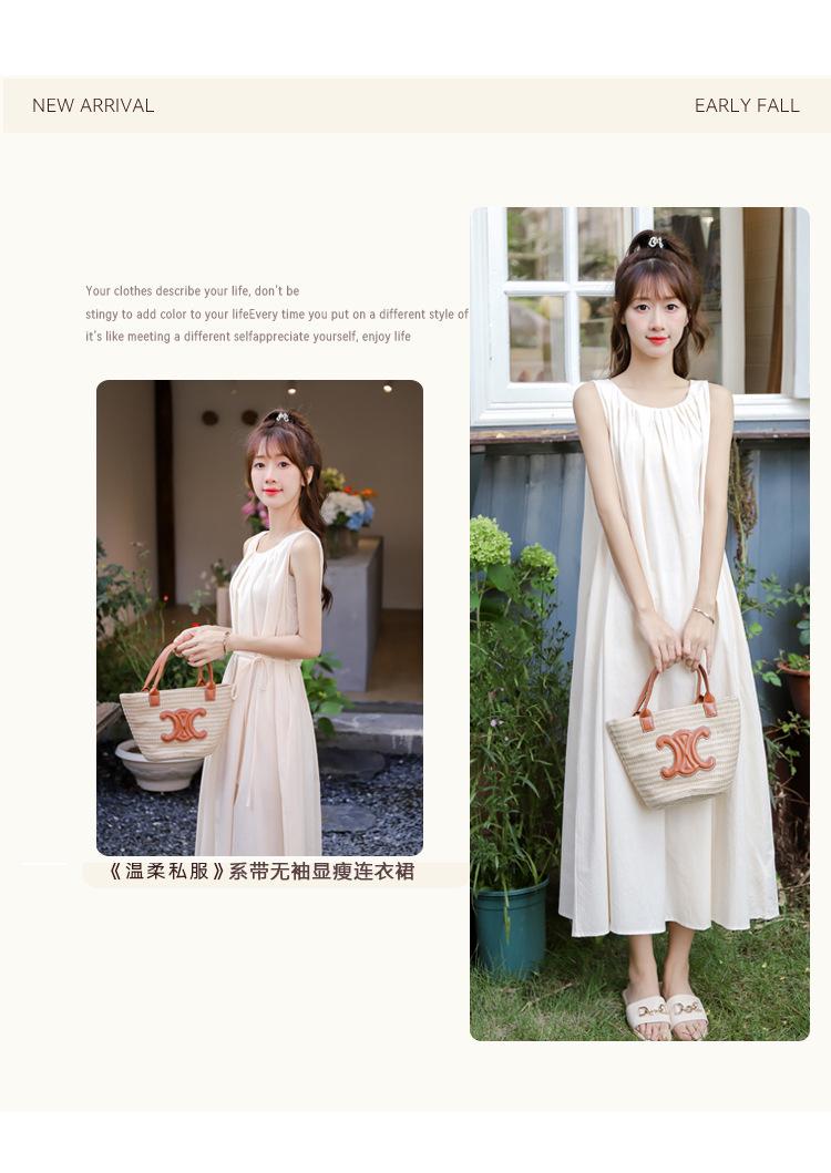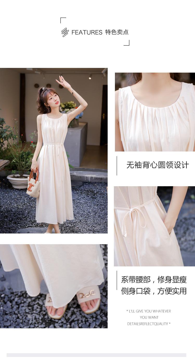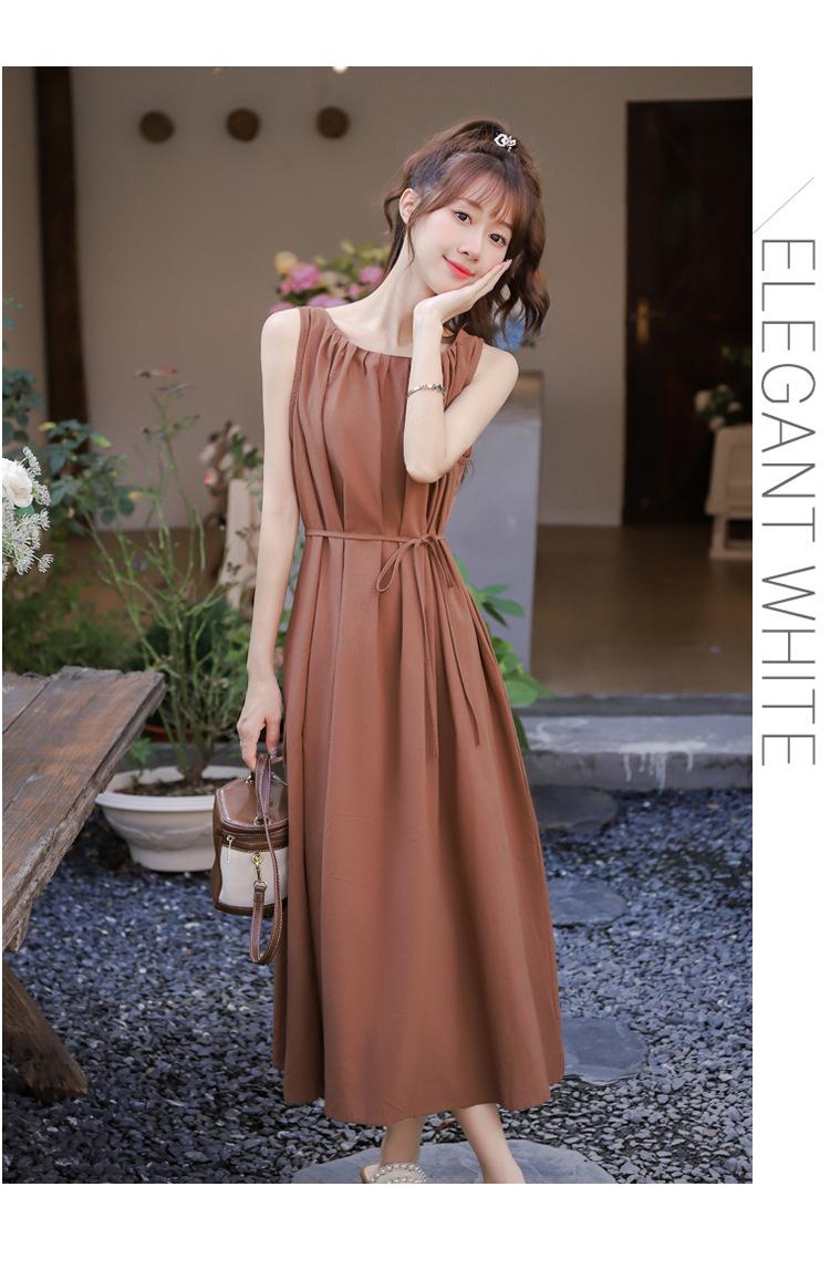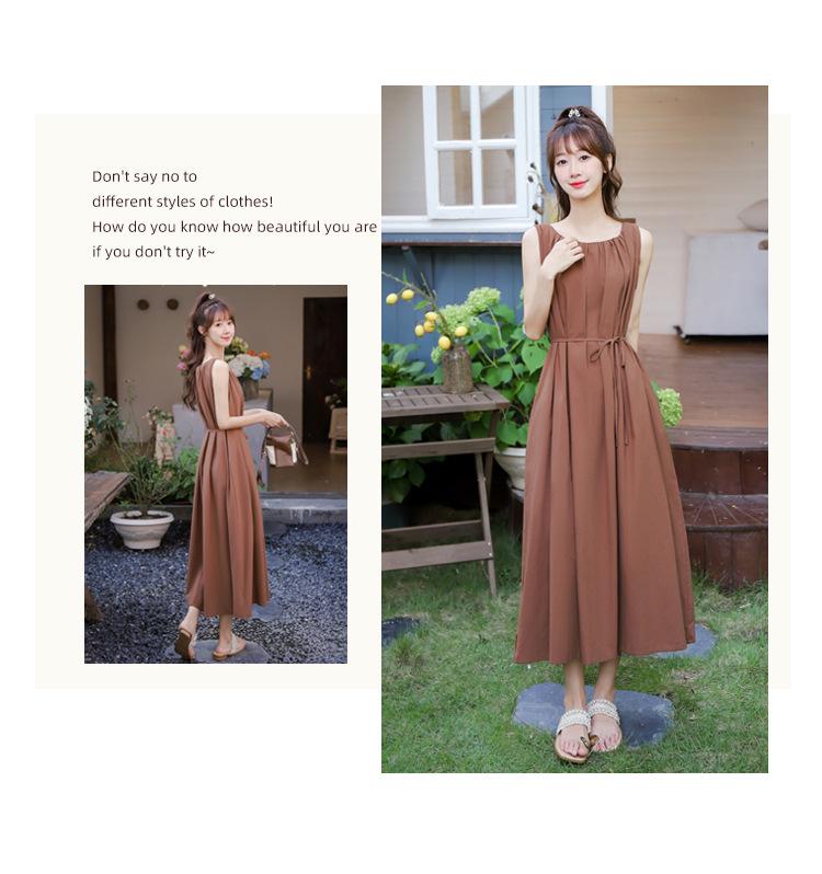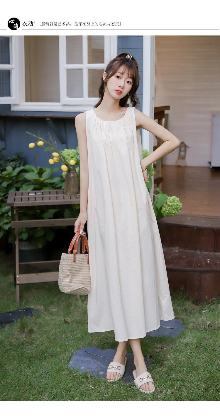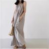 En stock Vestido de verano suelto de lino y algodón de color liso sin mangas estilo coreano con tirantes largos estilo diosa elegante