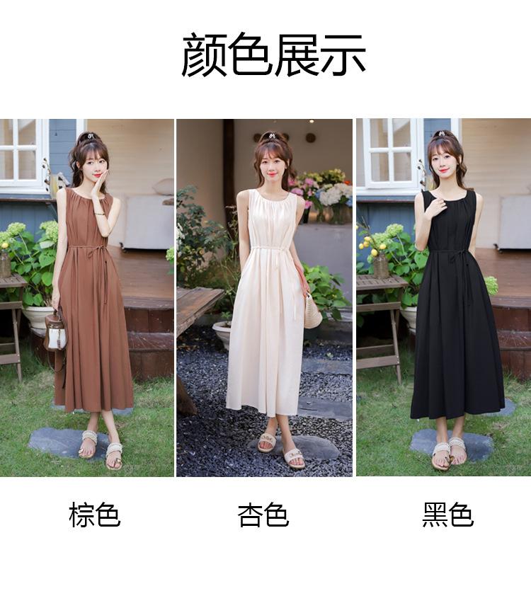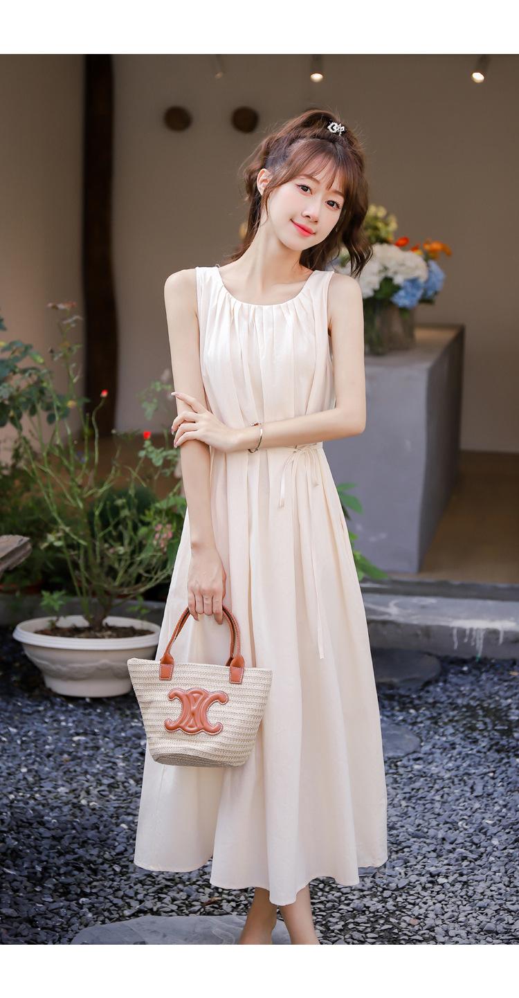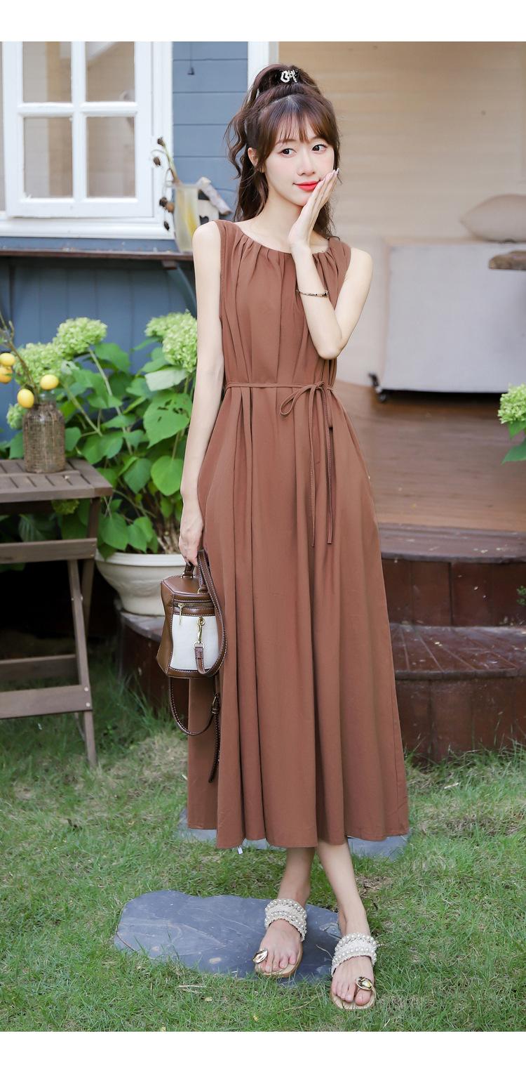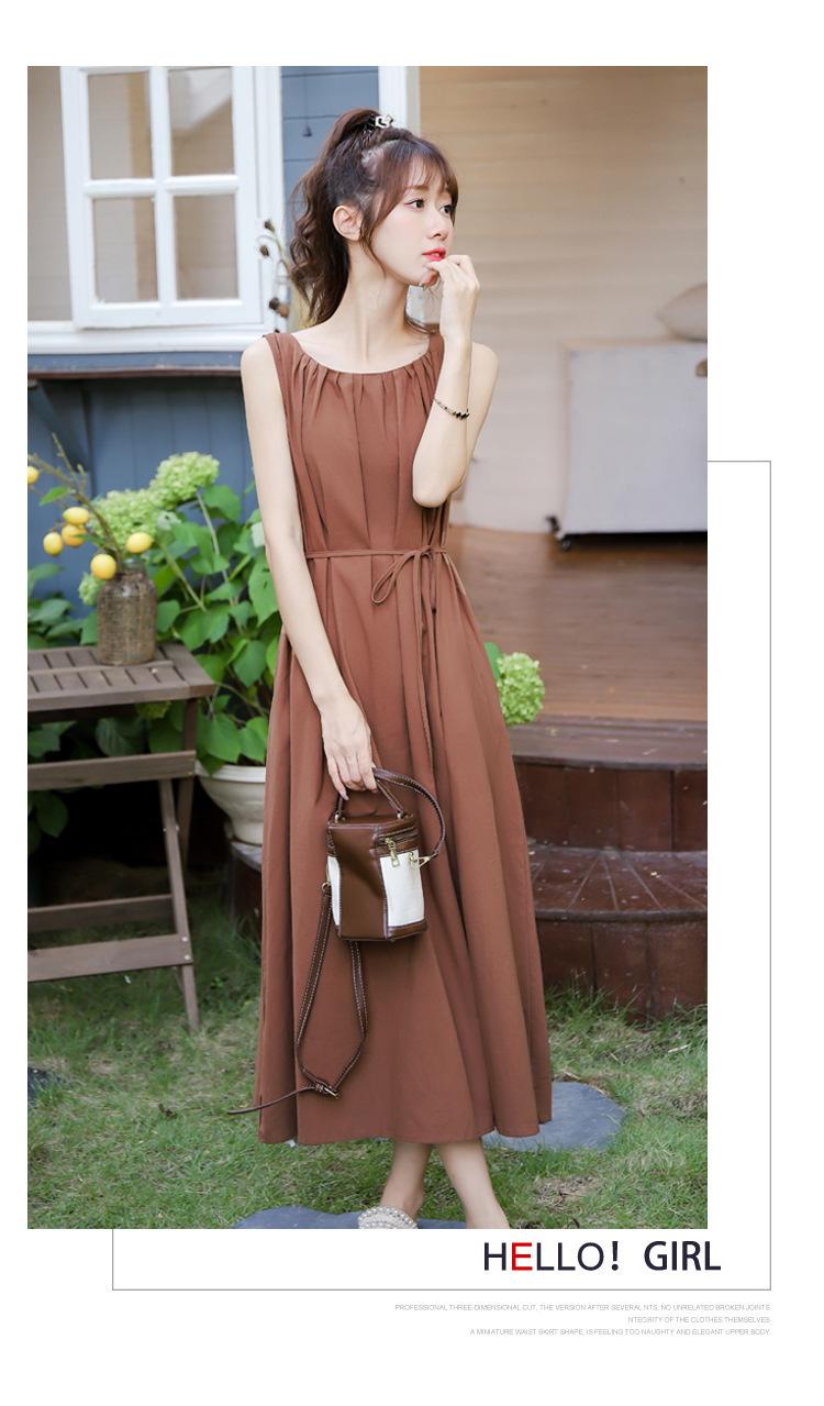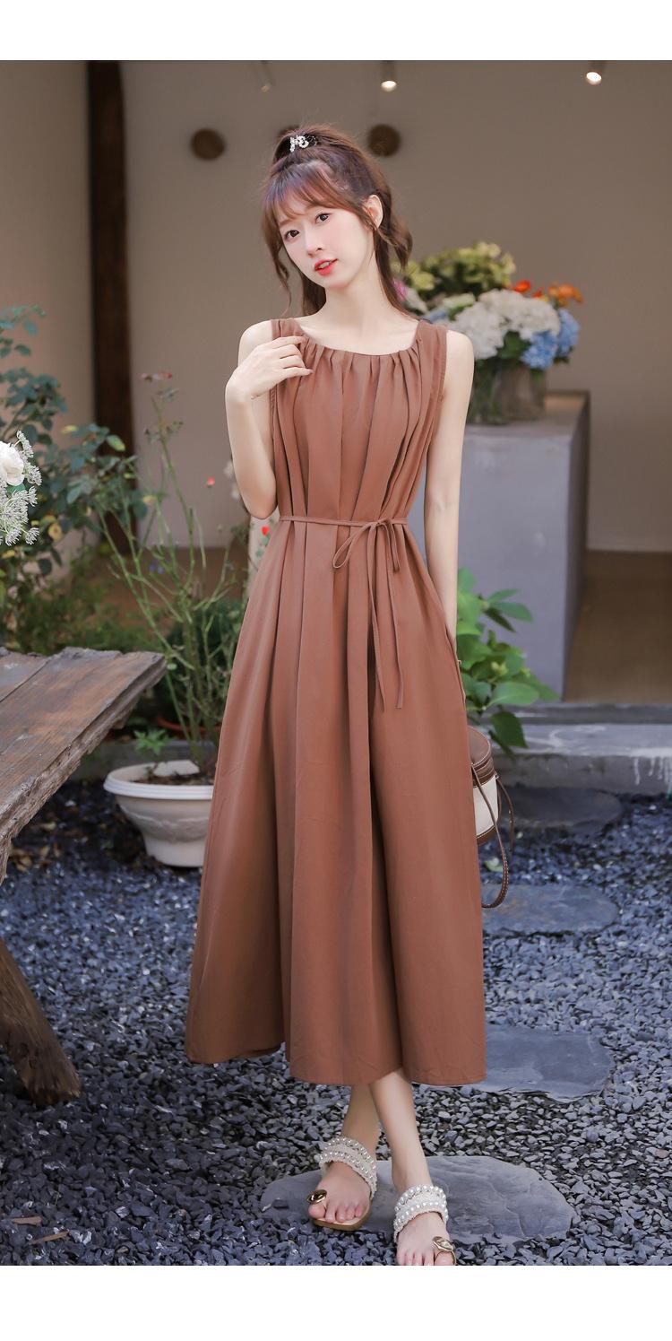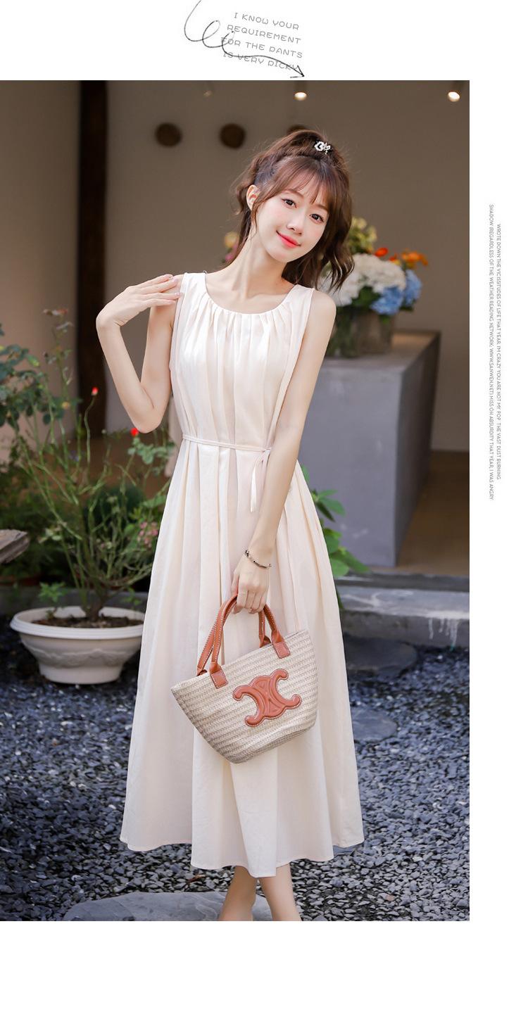 En stock Vestido de verano suelto de lino y algodón de color liso sin mangas estilo coreano con tirantes largos estilo diosa elegante