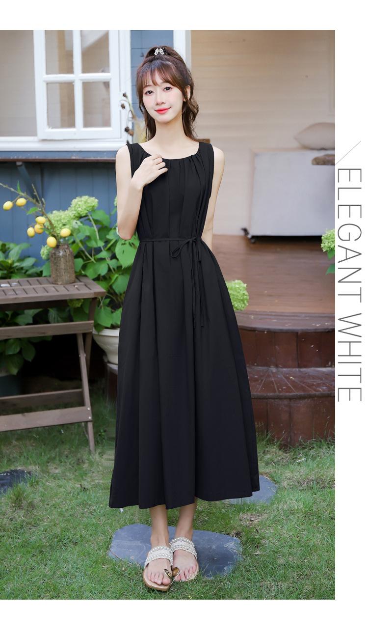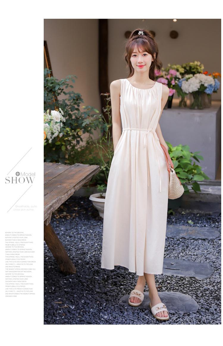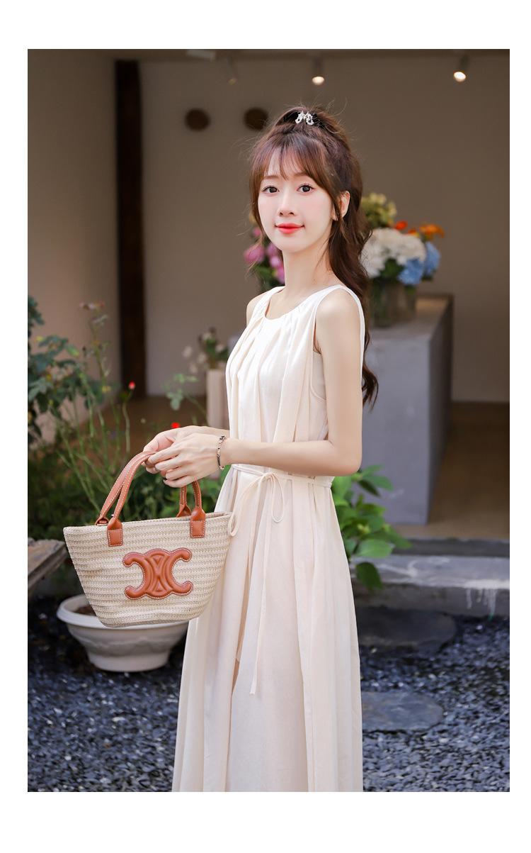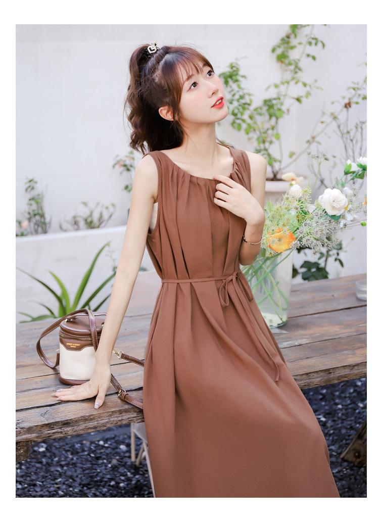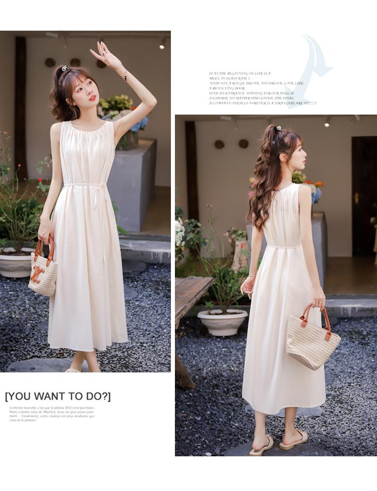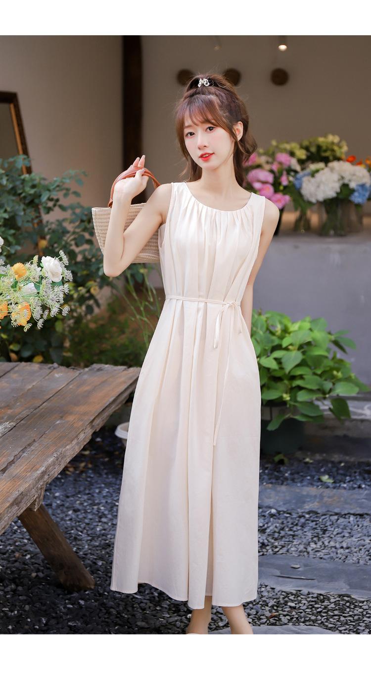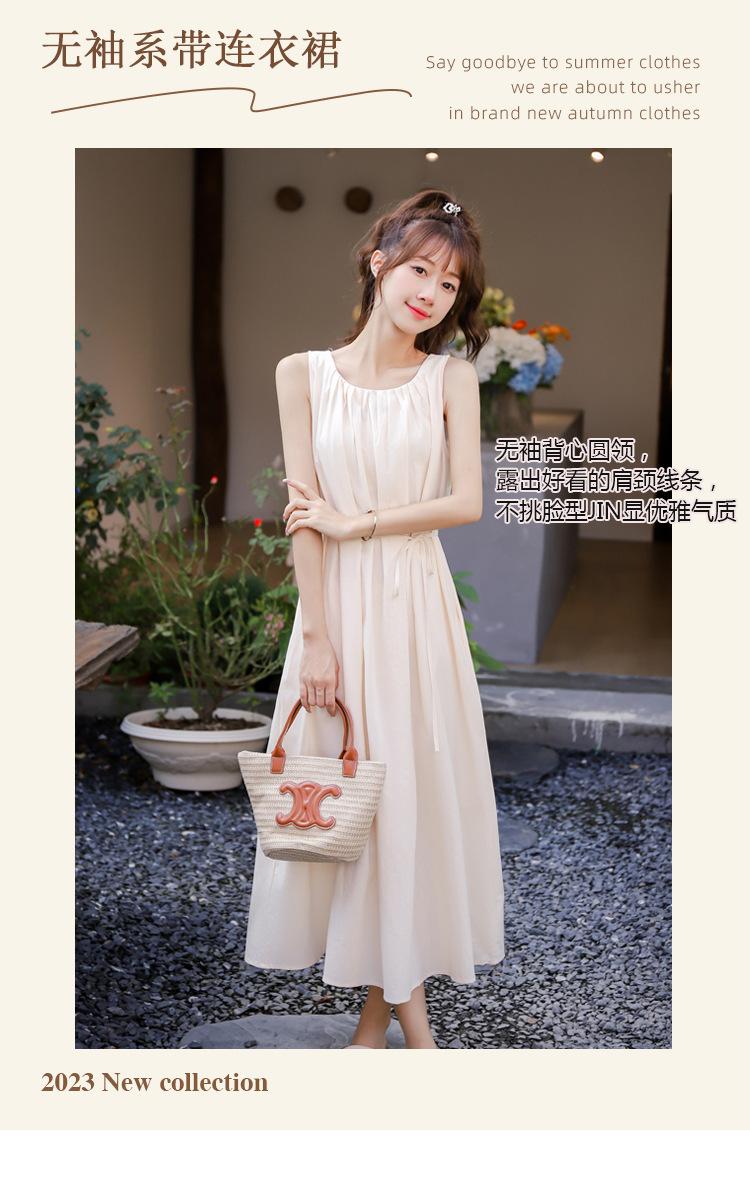 En stock Vestido de verano suelto de lino y algodón de color liso sin mangas estilo coreano con tirantes largos estilo diosa elegante