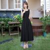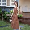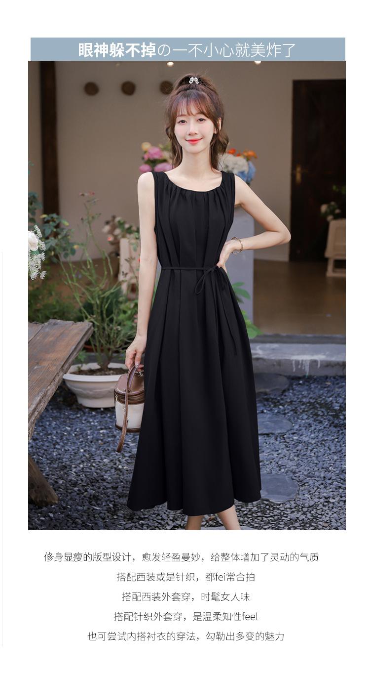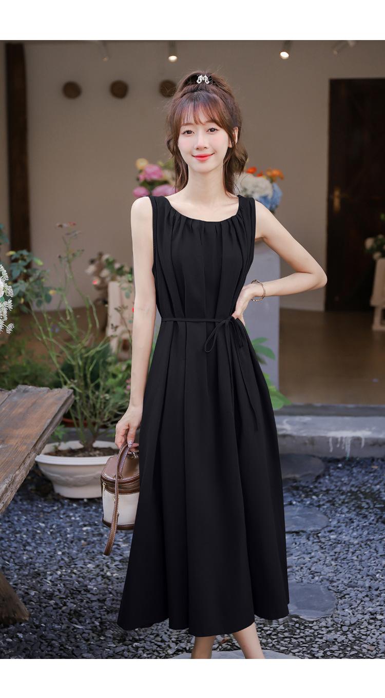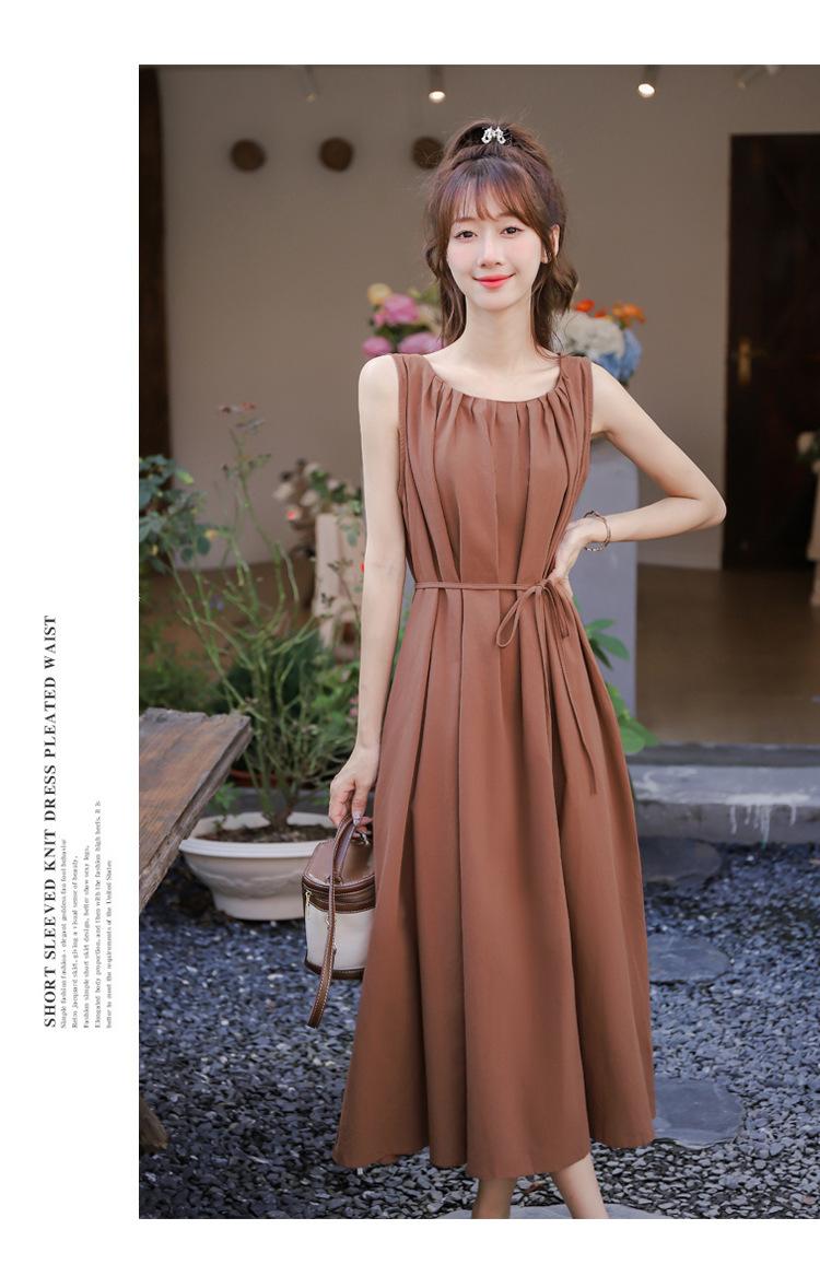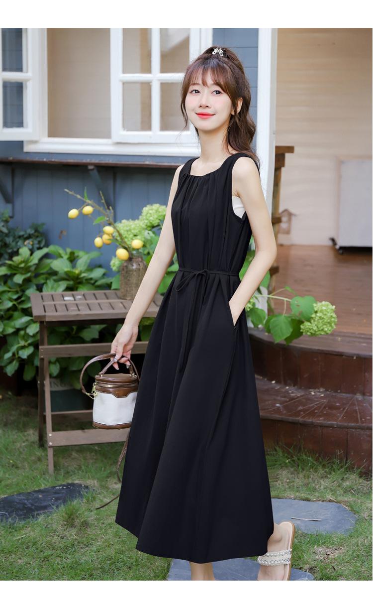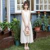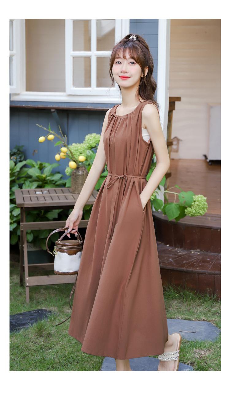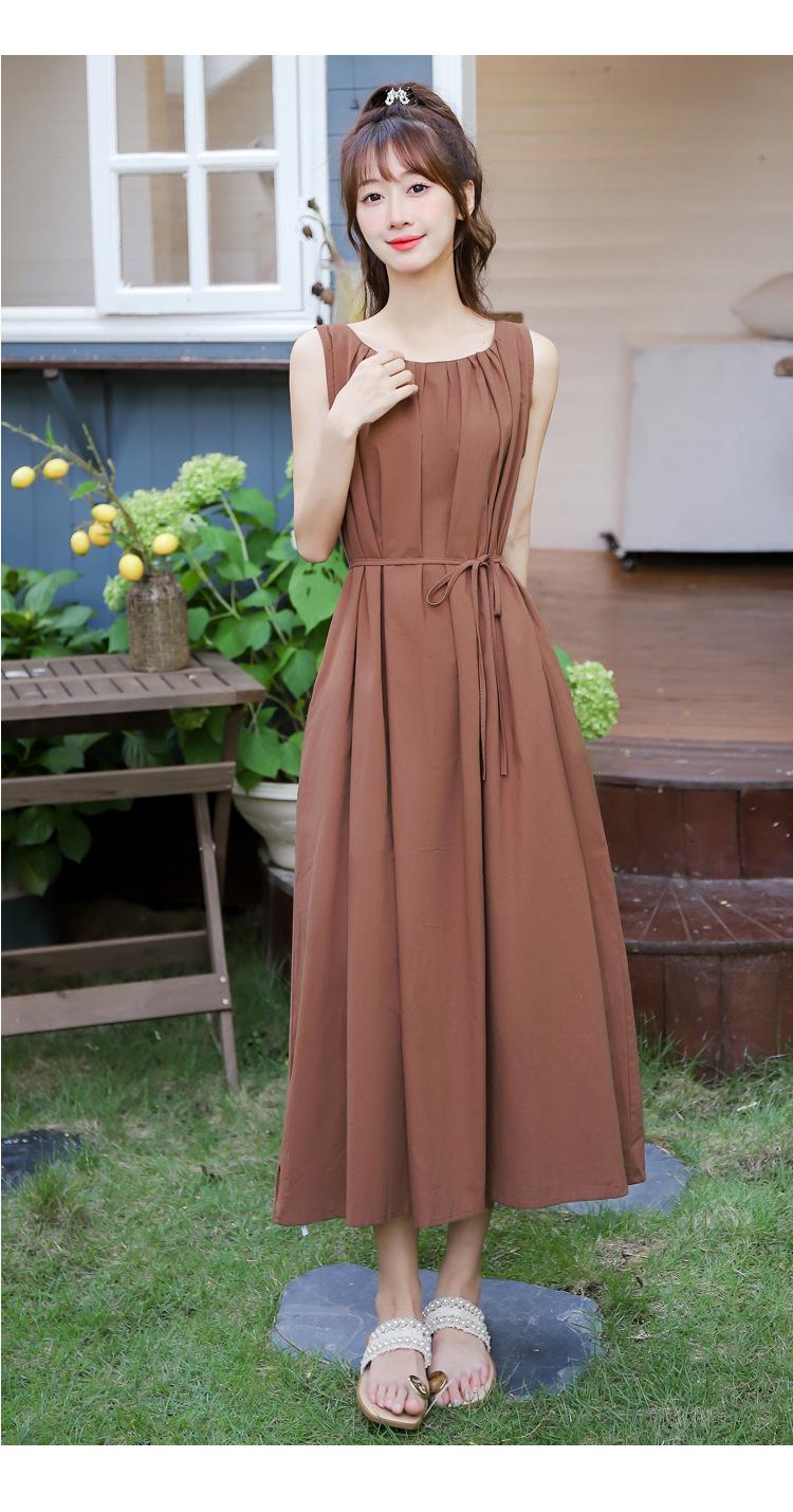 En stock Vestido de verano suelto de lino y algodón de color liso sin mangas estilo coreano con tirantes largos estilo diosa elegante