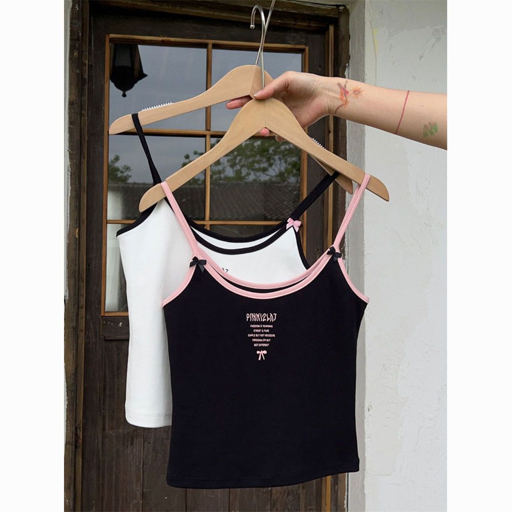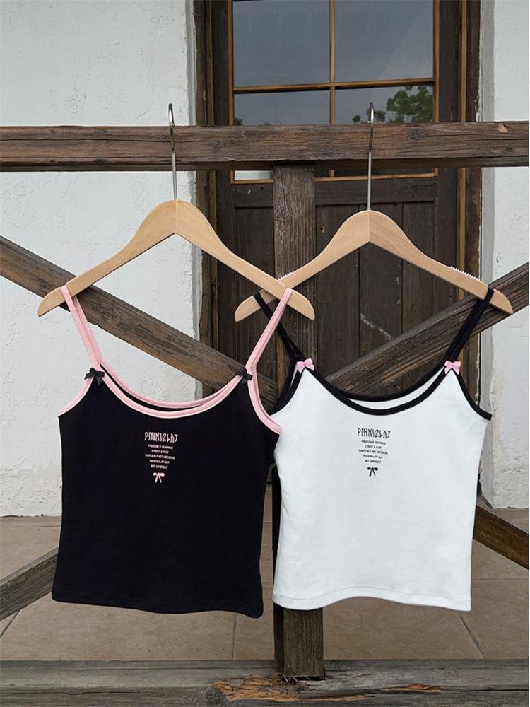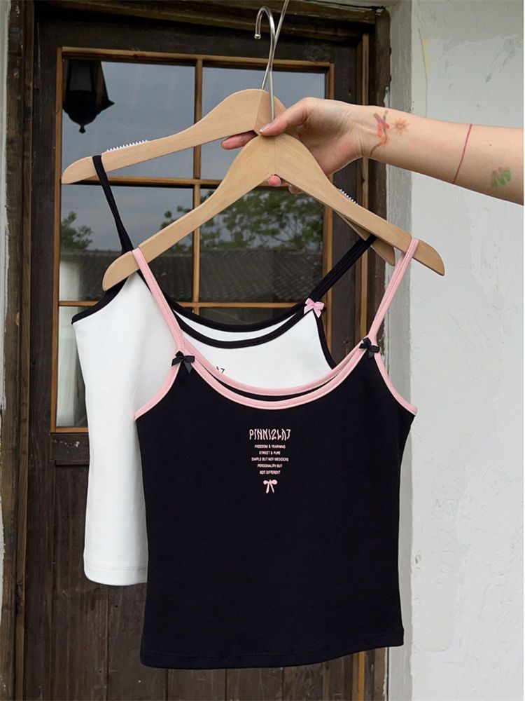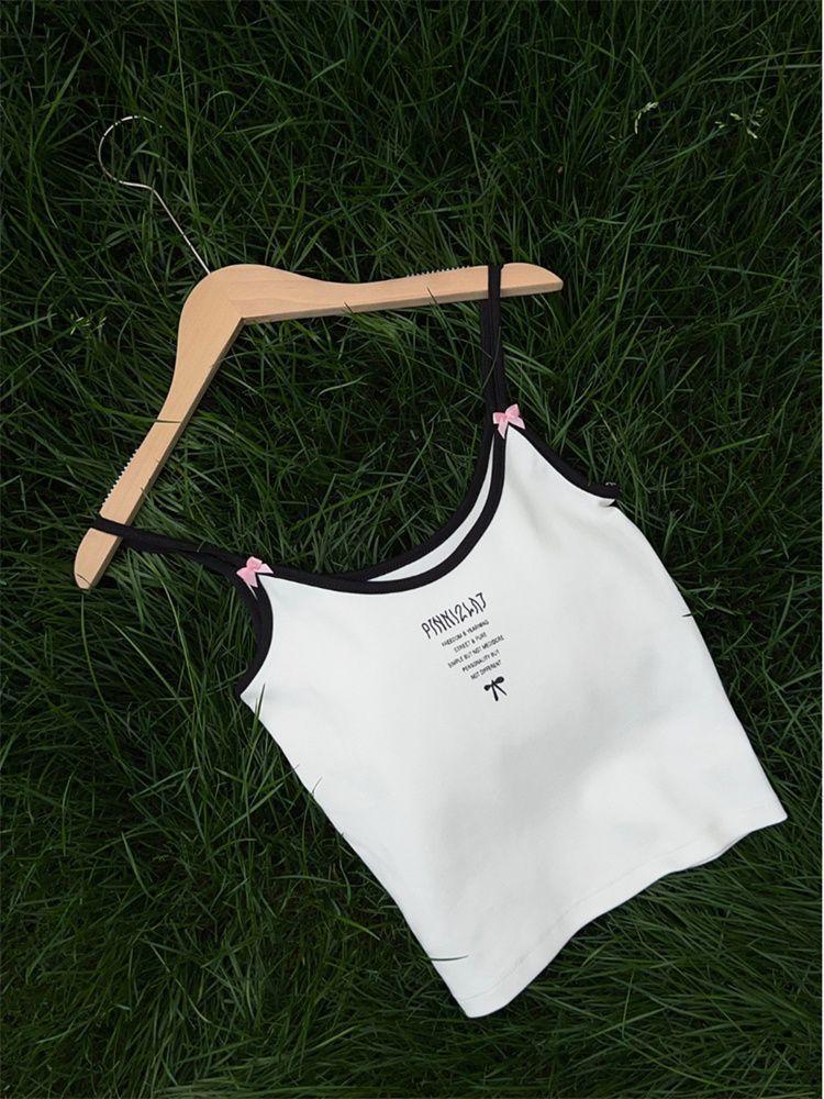 Camisola de verano sin mangas con lazo en contraste, letras estampadas, corte entallado y adelgazante