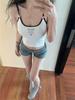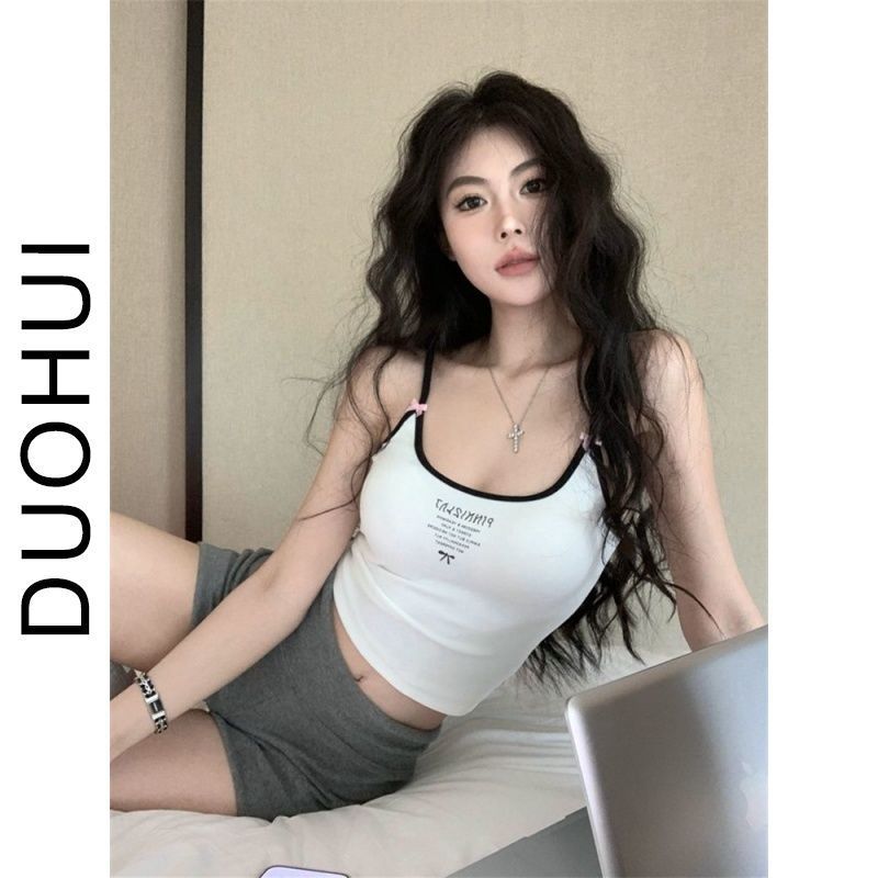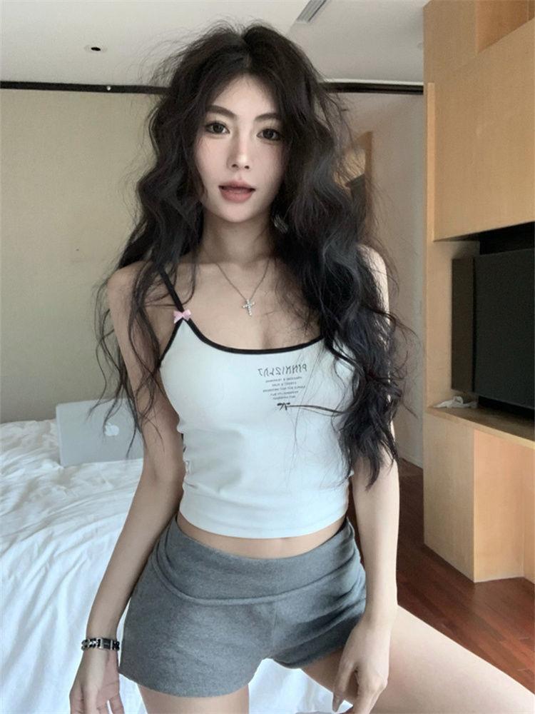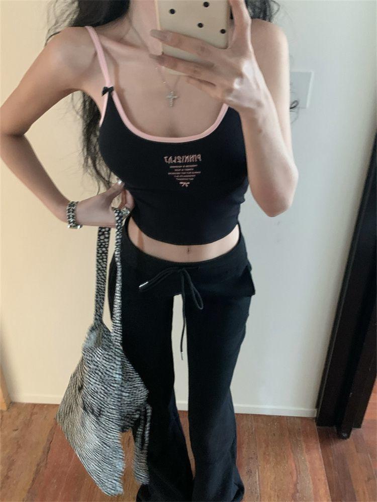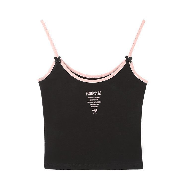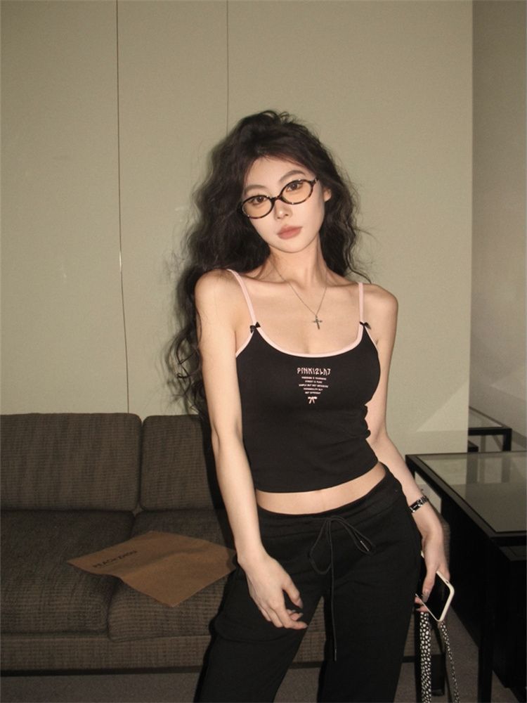Camisola de verano sin mangas con lazo en contraste, letras estampadas, corte entallado y adelgazante