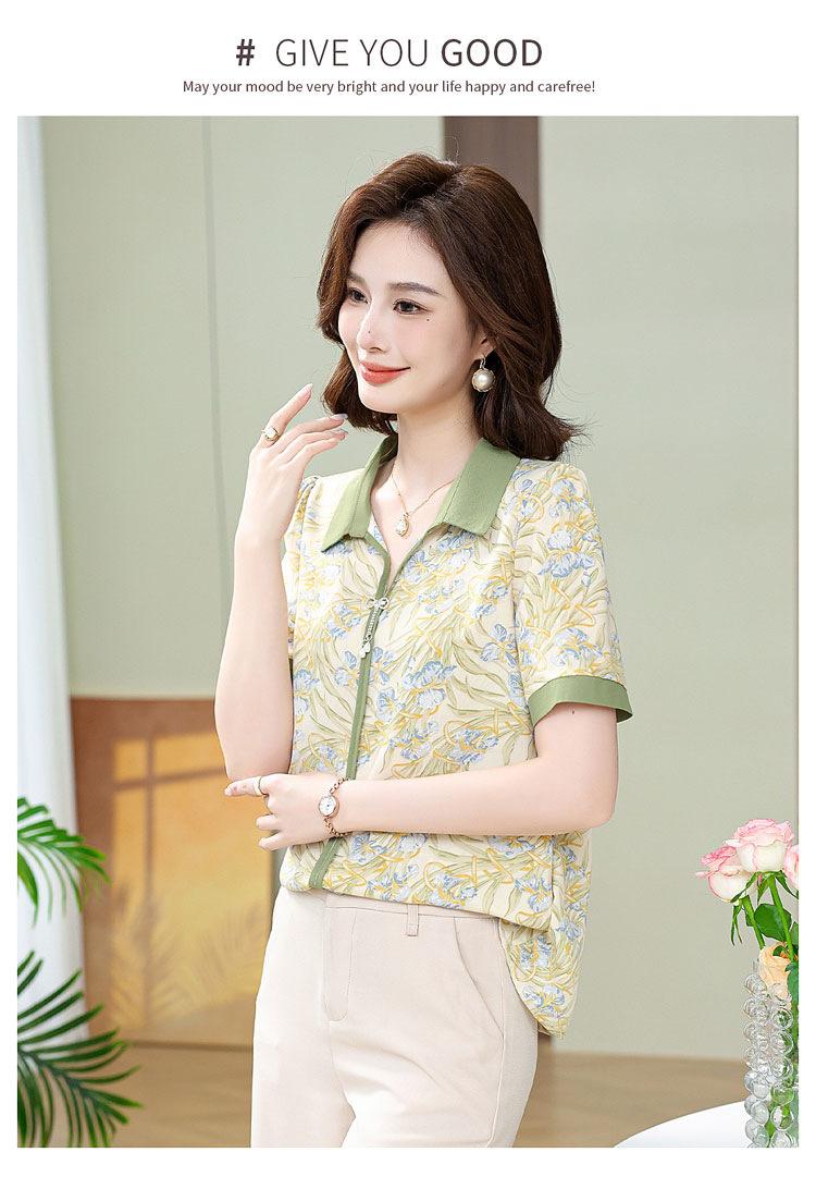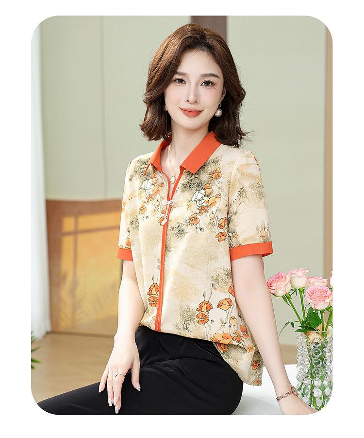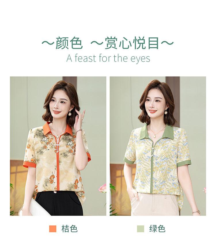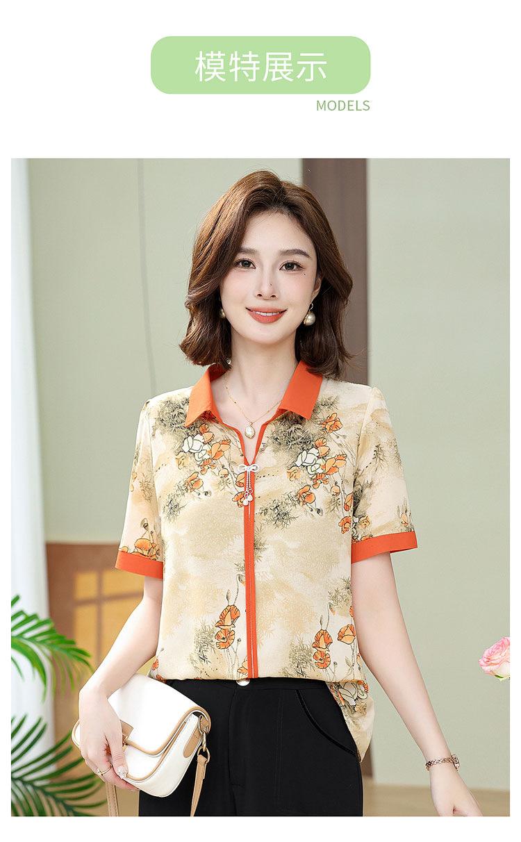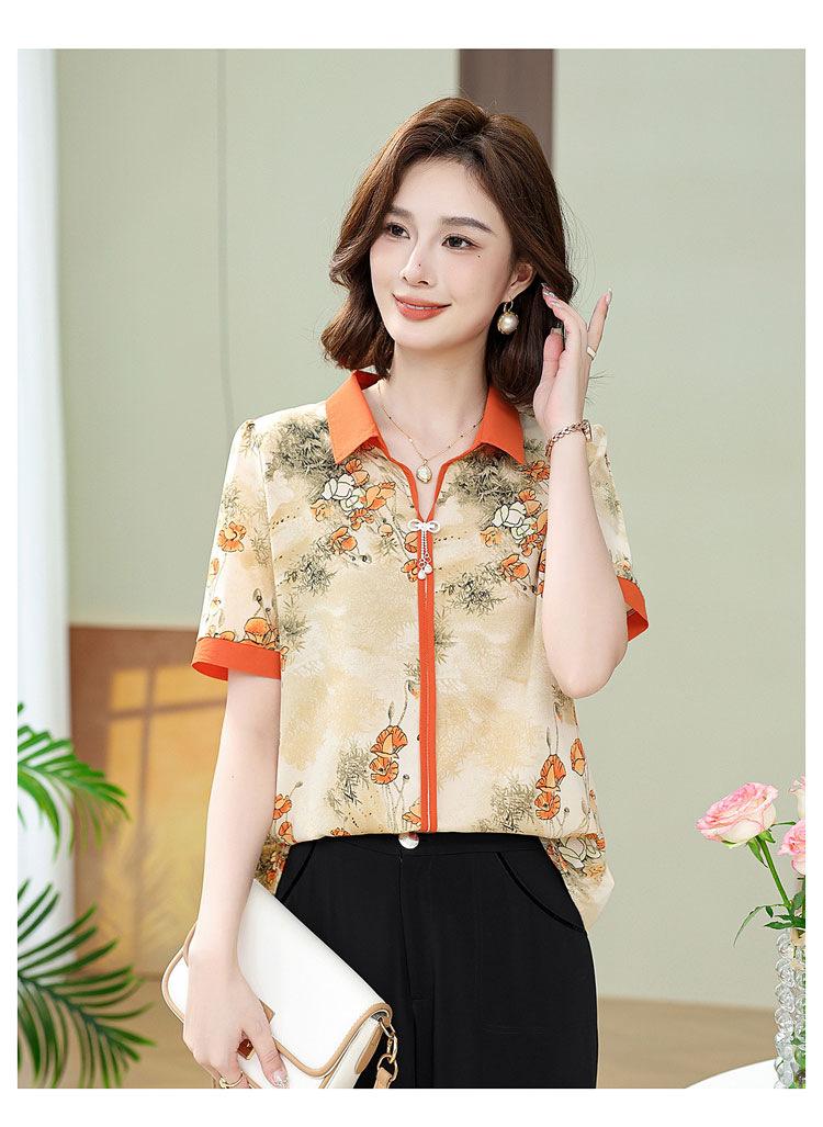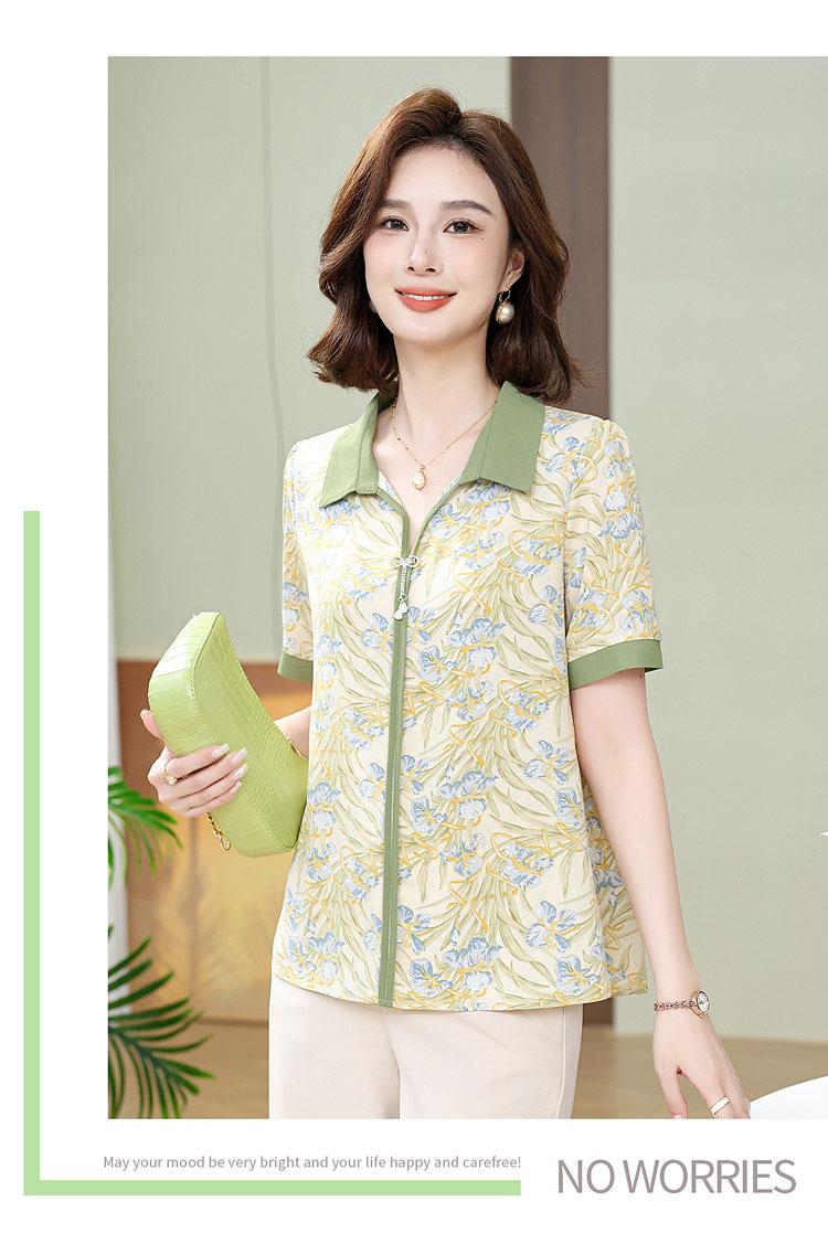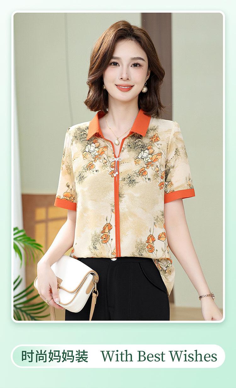 Compra Camisas de Chifón de Manga Corta para Mujeres de Mediana Edad y Mayores, Moda de Verano 2025 Nueva Moda Blusas con Cuello de Camisa Floral para Mamá al por mayor en Joom.pro