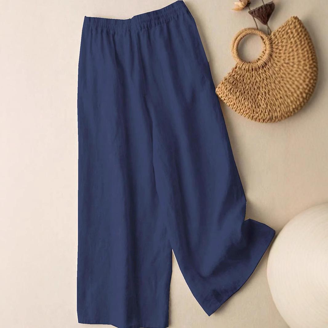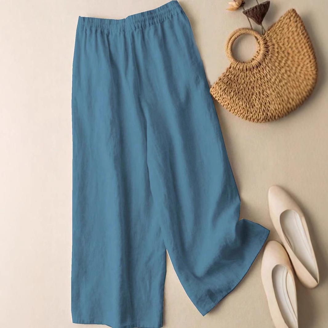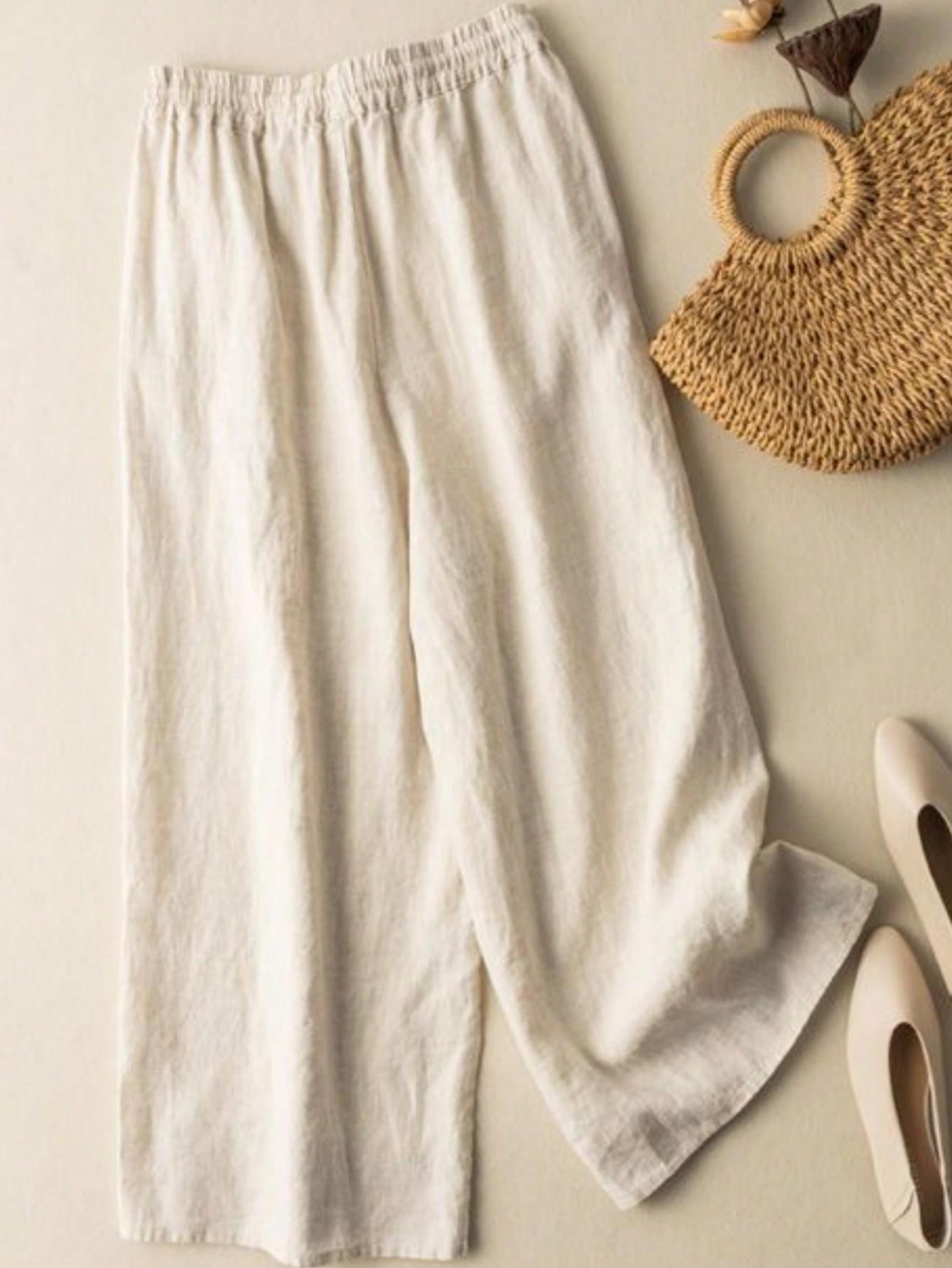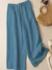 Colgante Geométrico Bordado Pantalones Anchos Bordados de Algodón y Lino para Mujer Verano Sueltos Rectos Versátiles Cintura Alta Adelgazantes Pantalones Casuales para Mujer