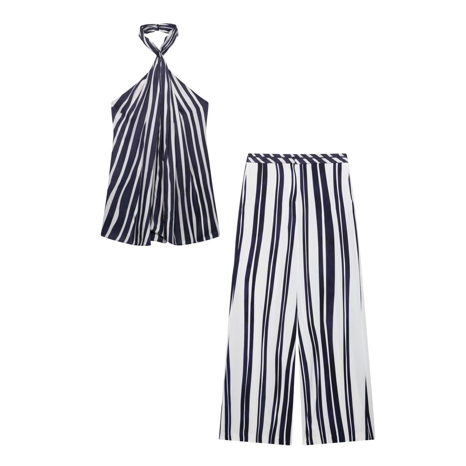 Compra Chaqueta y pantalón de cuello a rayas para mujer, moda transfronteriza europea y americana, primavera 2025, w03 6227 al por mayor en Joom.pro