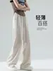 Pantalones anchos de seda helada con protección solar para mujer, pantalón informal, recto, de verano, fino y fresco, novedad de 2025