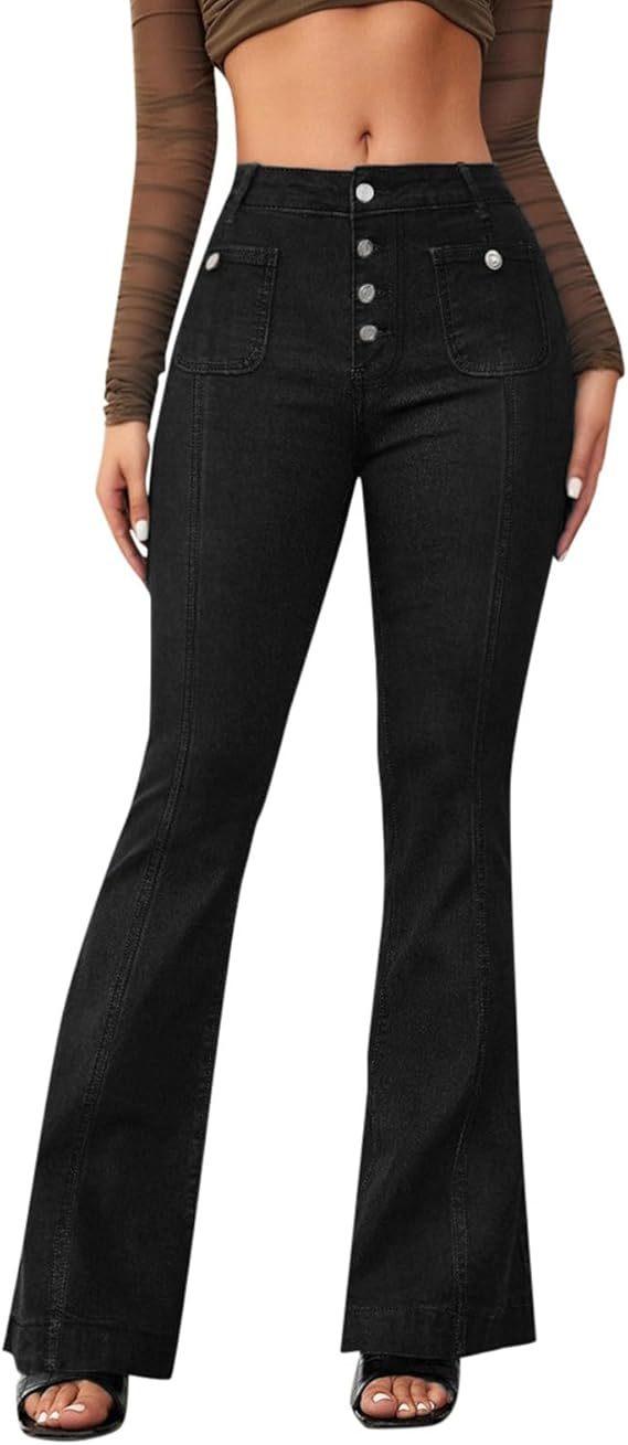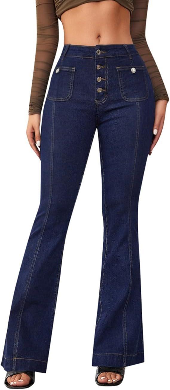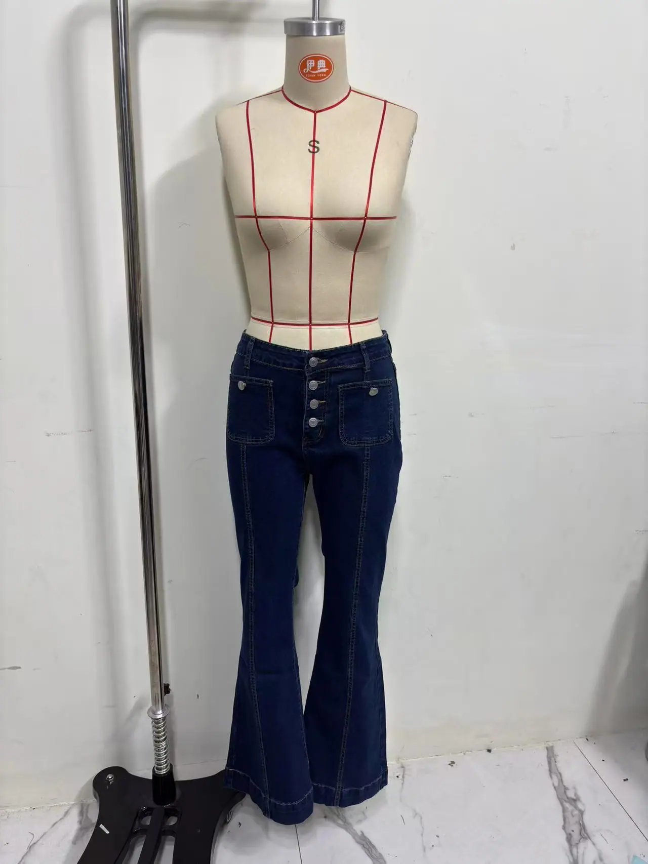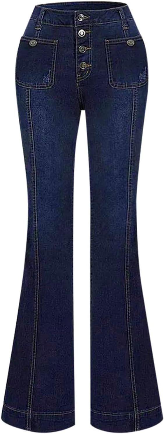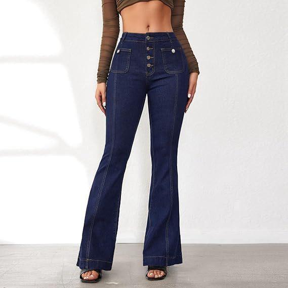 Compra 2025 Primavera y Otoño Nuevo Europeo y Americano Amazon Transfronterizo Retro Patchwork Ajustado Elástico Acampanados Jeans para Mujer al por mayor en Joom.pro