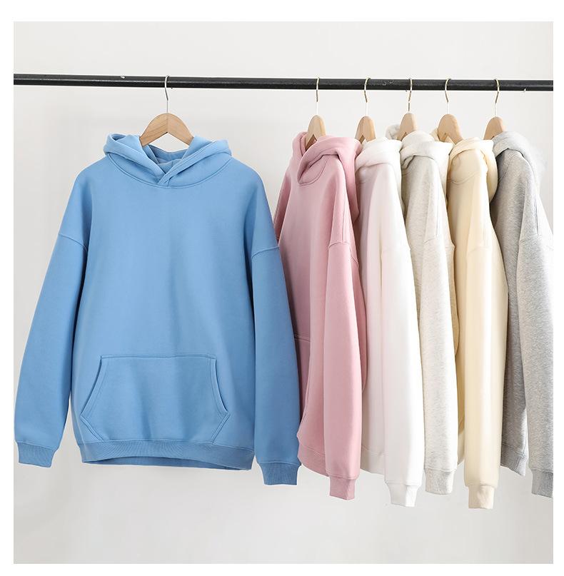Compra Sudadera con capucha holgada para mujer, estilo coreano, de polar, de manga larga, para primavera y otoño de 2025, estilo holgado, chaqueta de color liso que combina con todo. al por mayor en Joom.pro