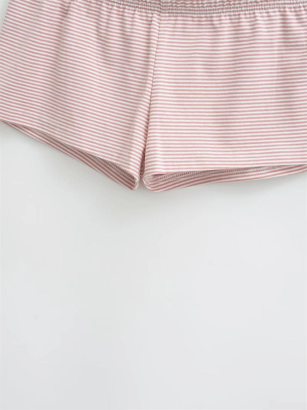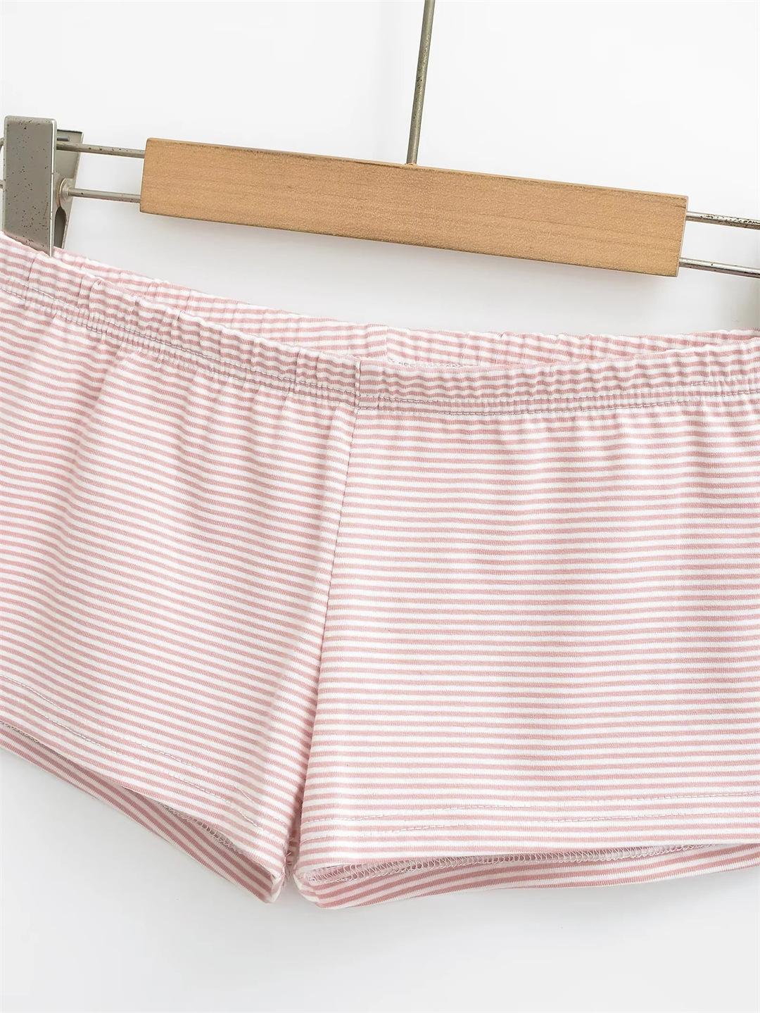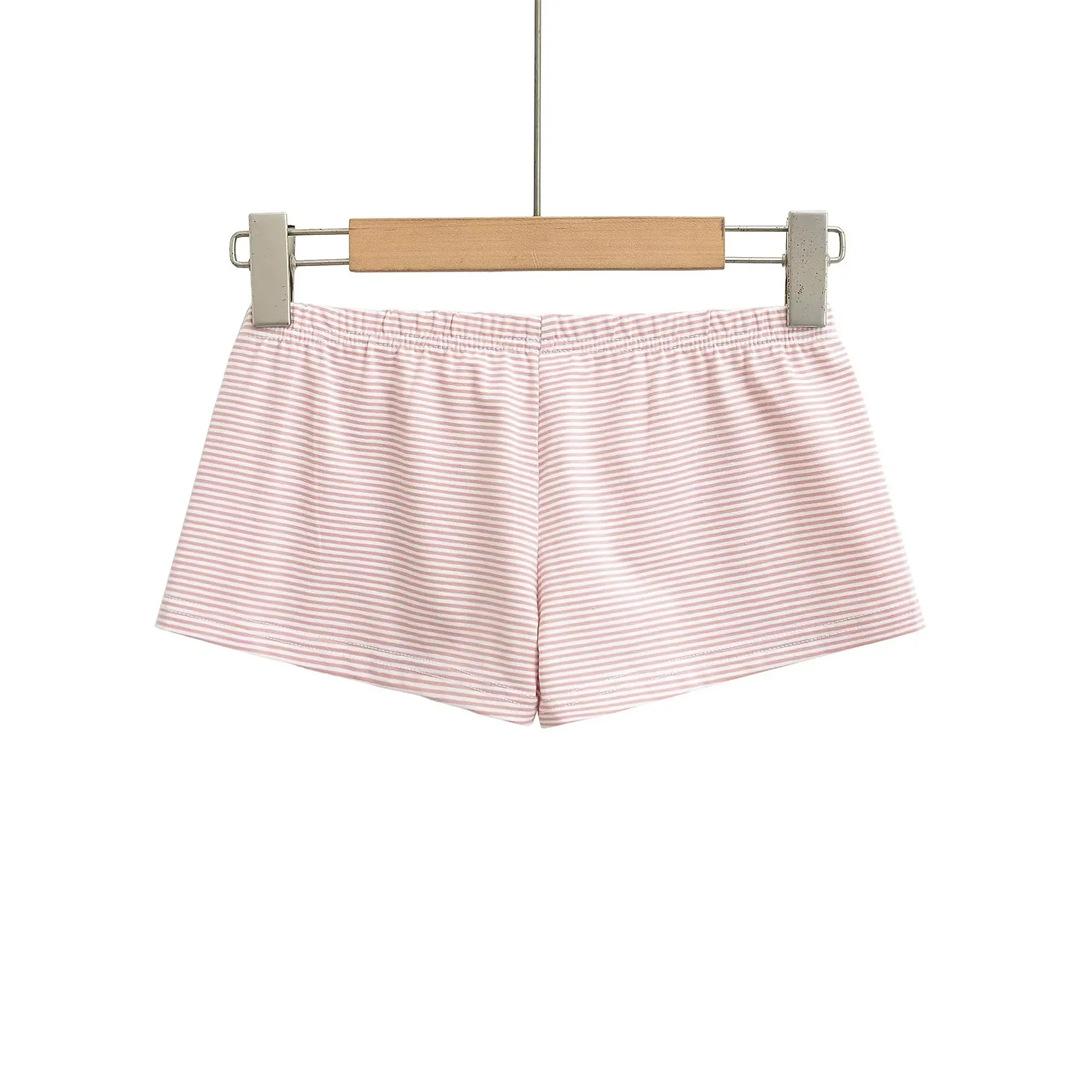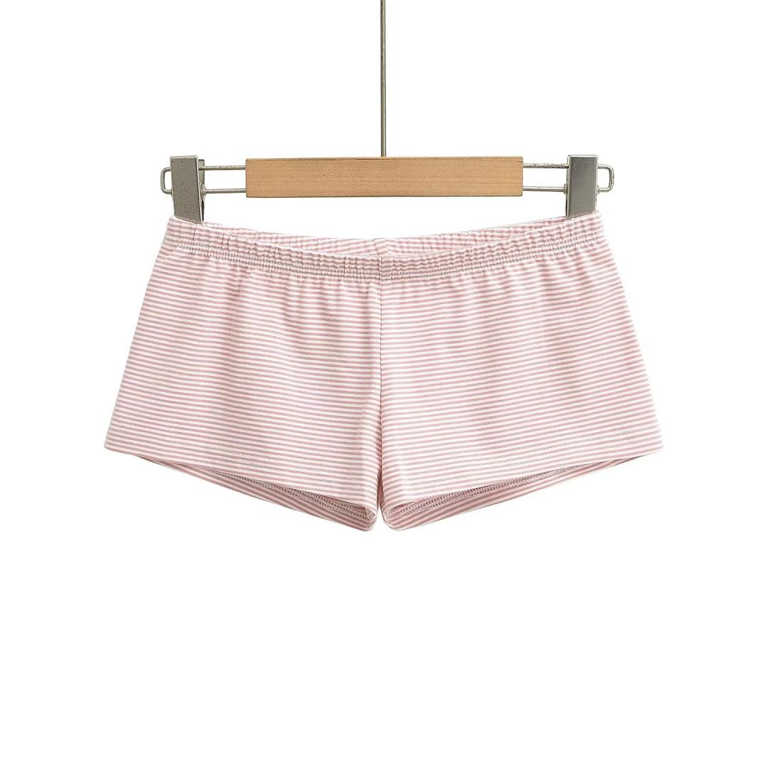 Pantalones cortos deportivos informales estilo americano retro para mujer, de verano, sencillos, a rayas, ajustados, cómodos para estar en casa
