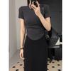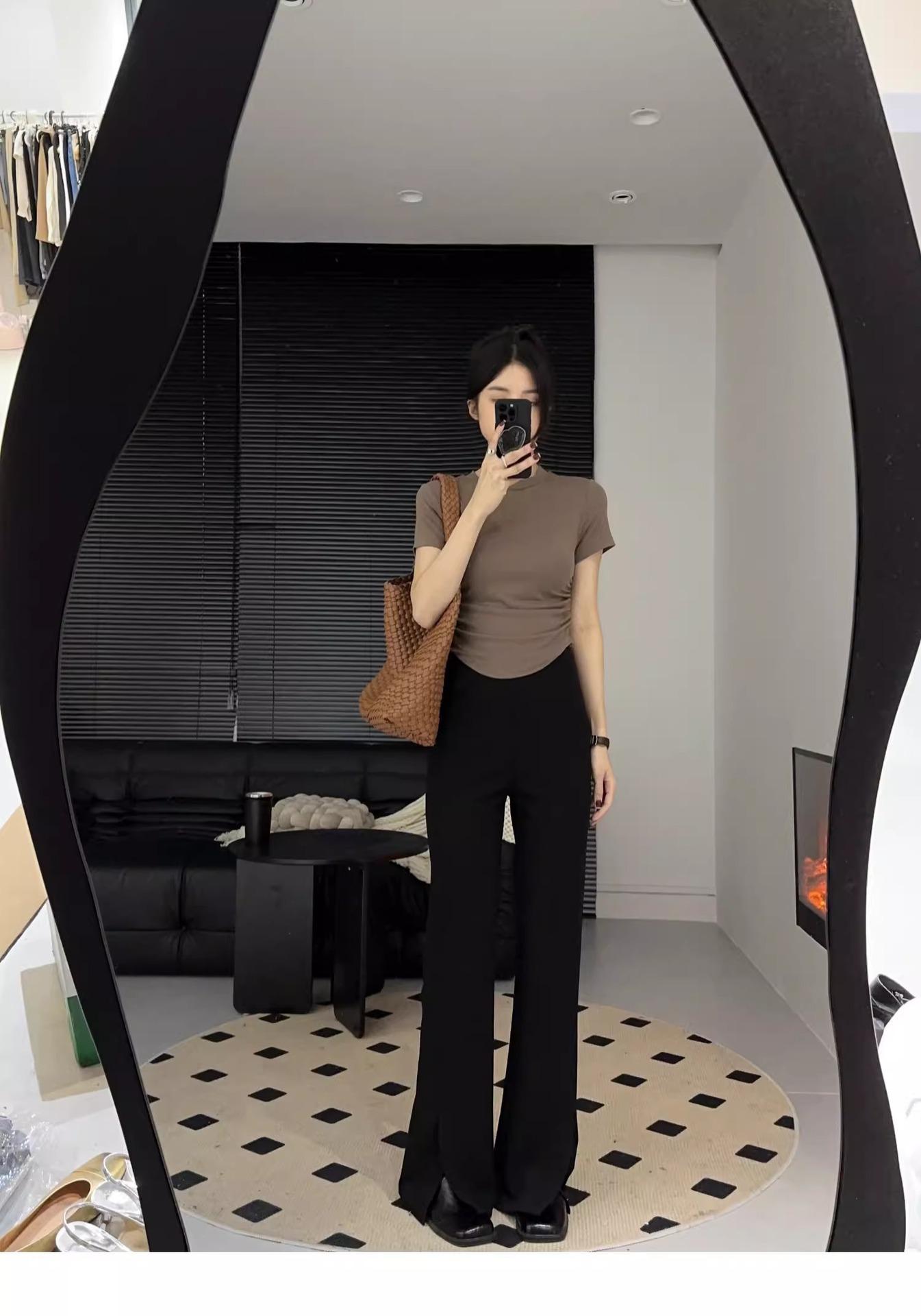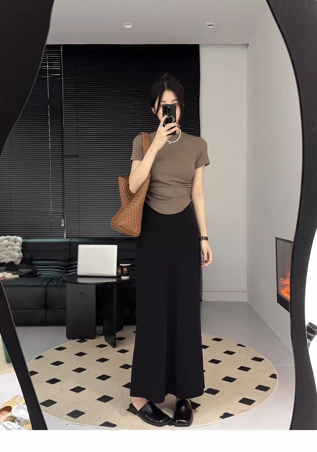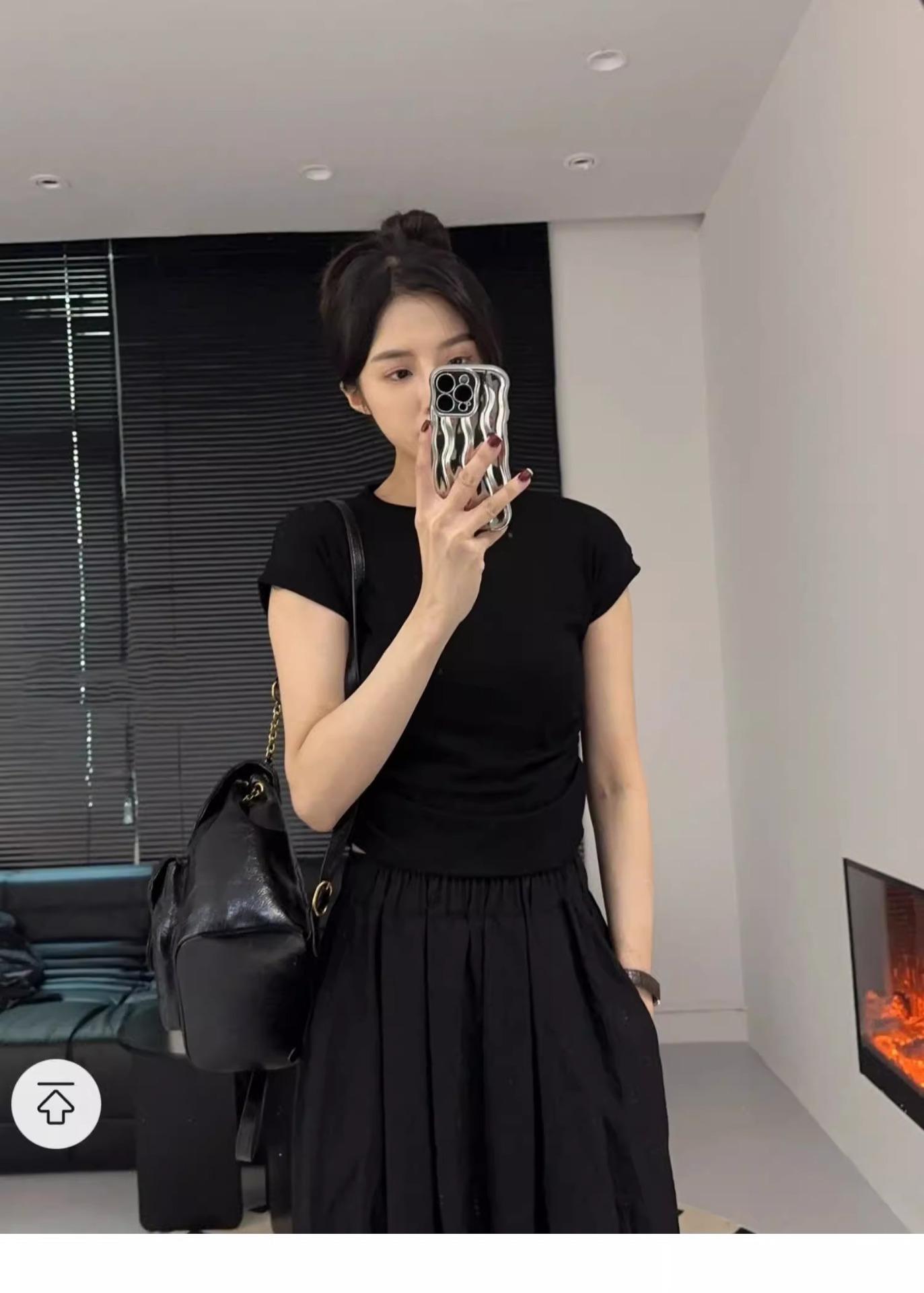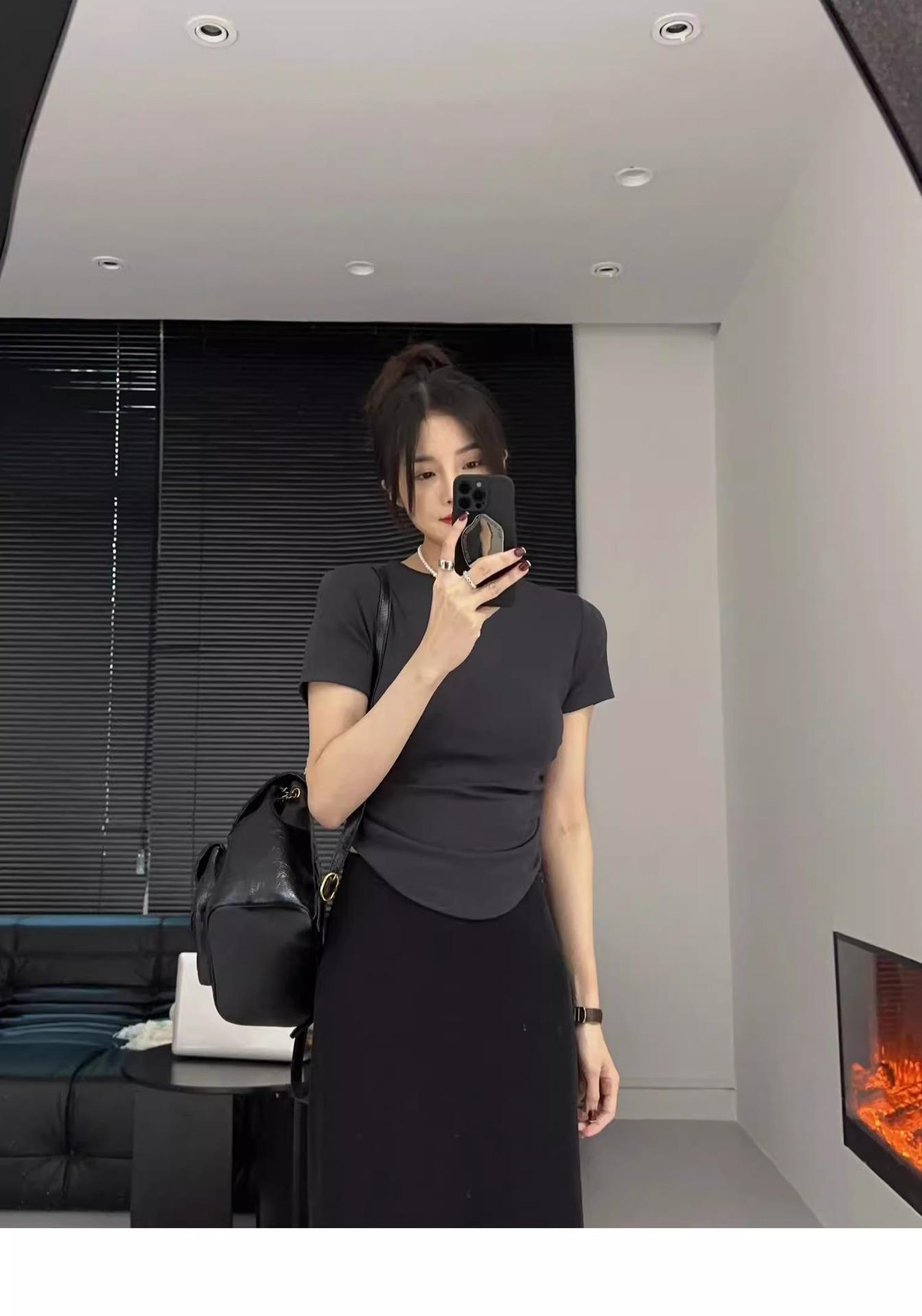 Compra Diseño de Camiseta de Hombro Plisada Corta Irregular Verano de Chica Caliente Cuello U Manga Corta Ajustada Cintura Ceñida Top A3410 al por mayor en Joom.pro