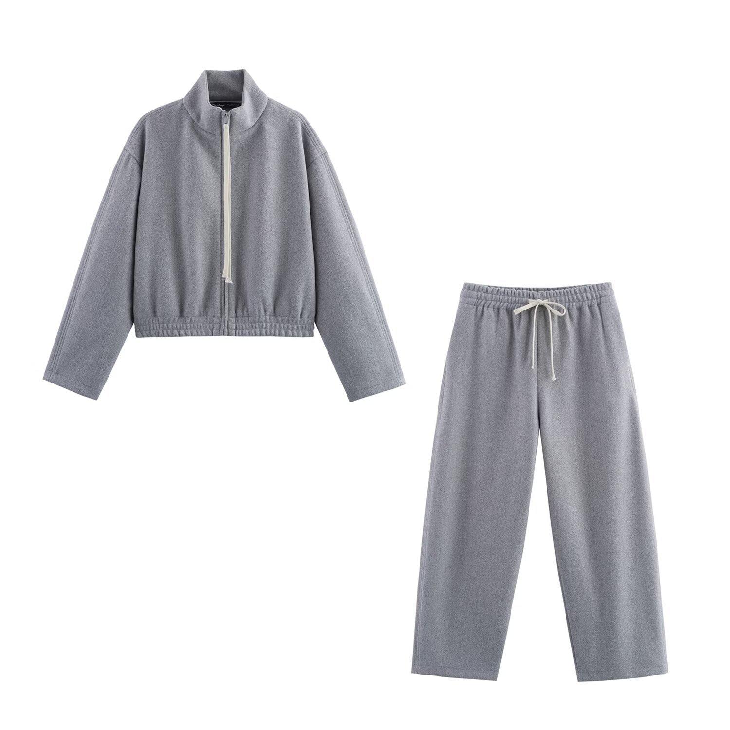 Exportación Transfronteriza Ropa de Mujer 2025 Primavera y Otoño Estilo Europeo y Americano Chaqueta de Cuello Alto + Pantalones Traje Casual Mujer B482220/1