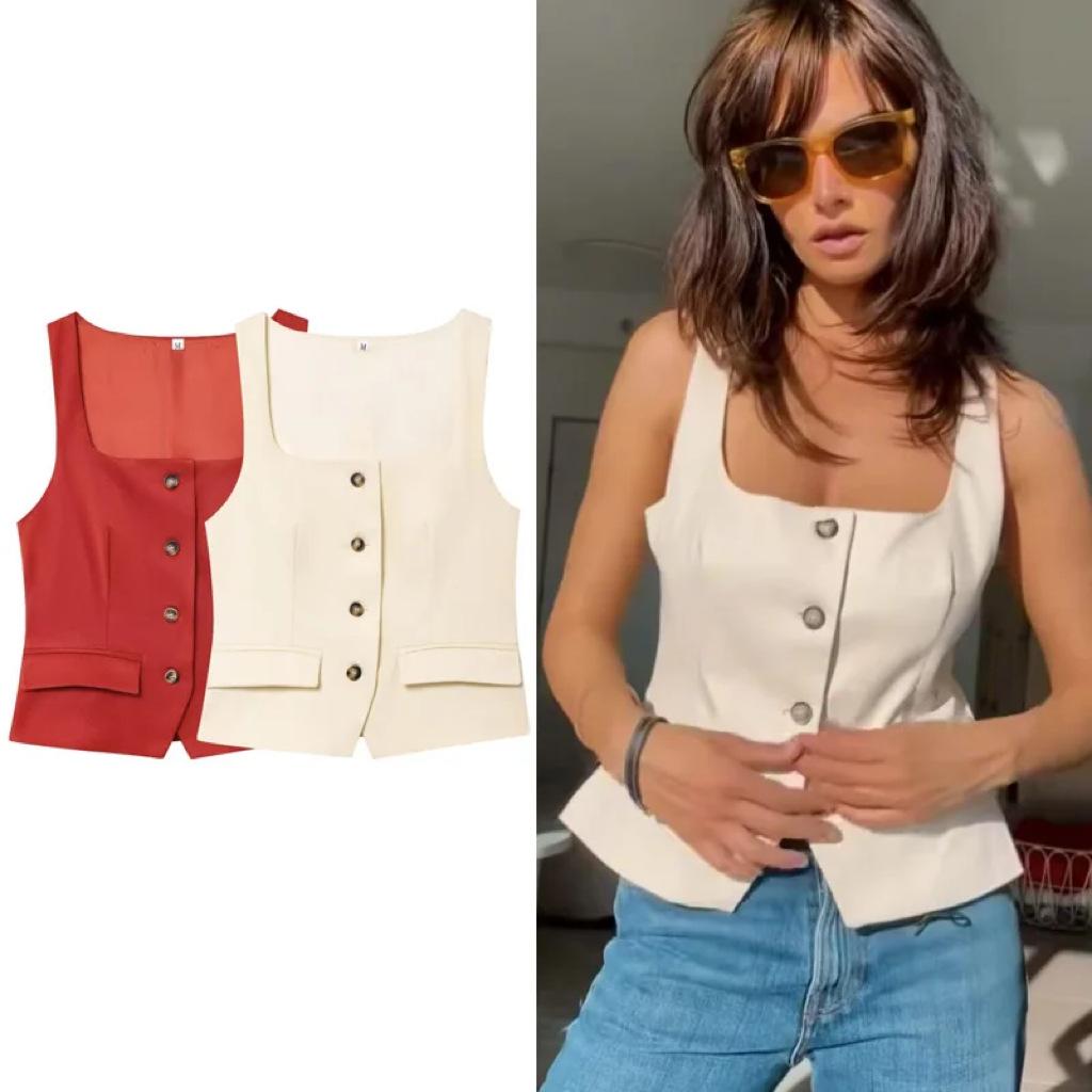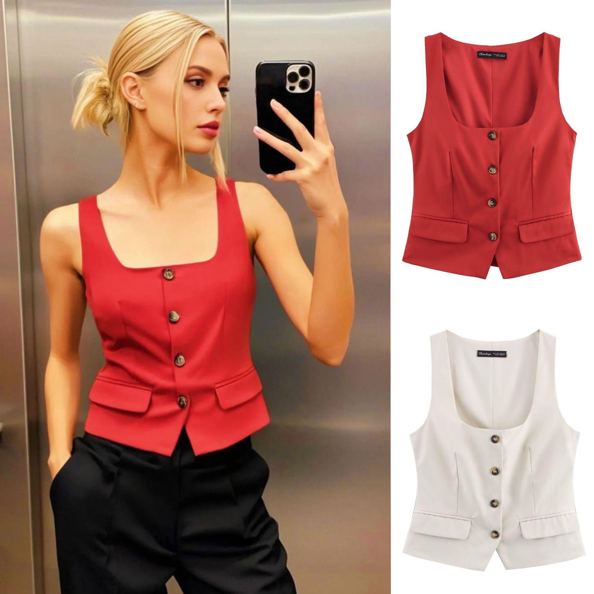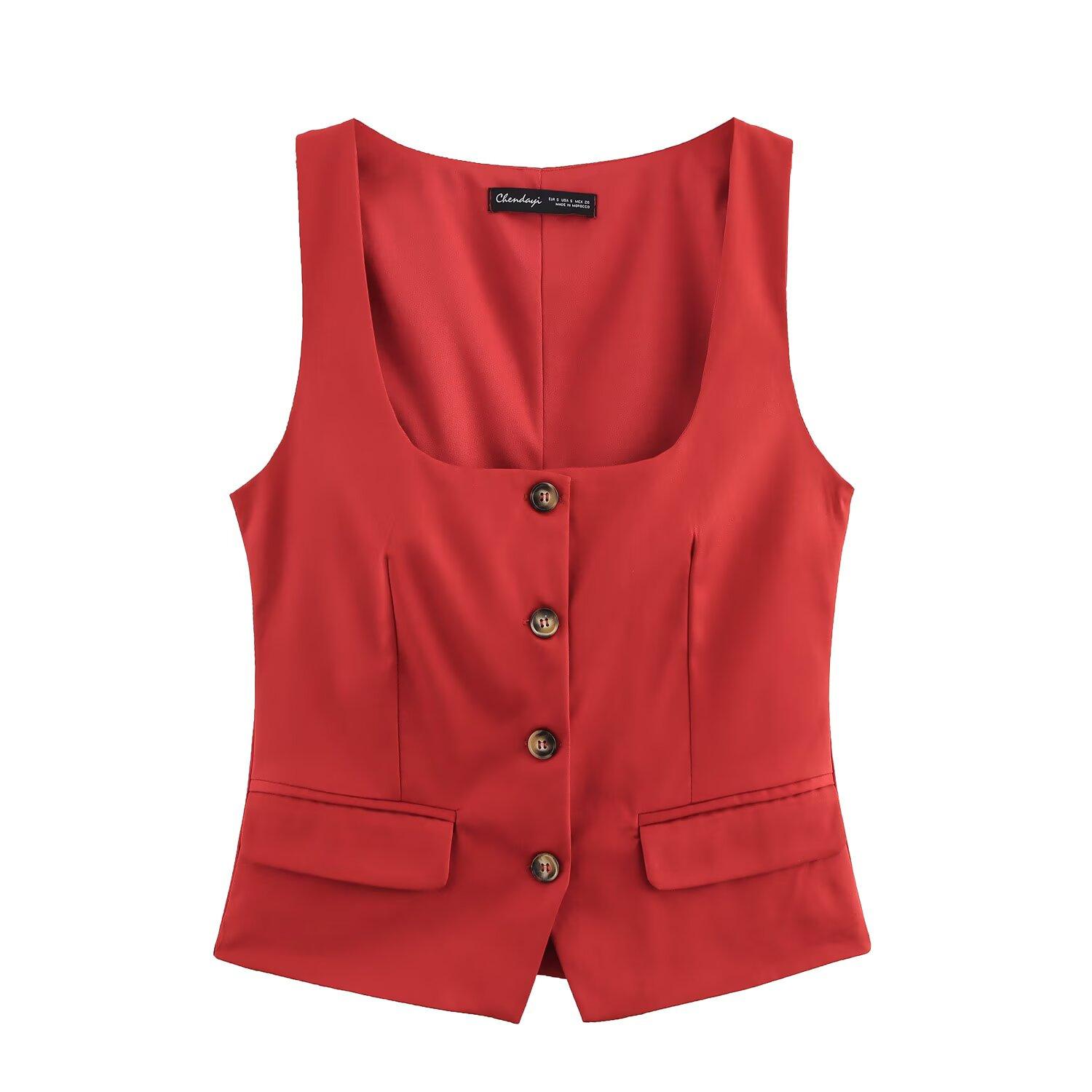 Compra Chaleco sin mangas con hebilla para mujer europea y americana de principios de primavera de 2025, comercio exterior transfronterizo de Amazon al por mayor en Joom.pro