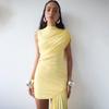 Vestido de verano ajustado con tirantes, cuello redondo, plisado, sin mangas, irregular, estilo transfronterizo europeo y americano.