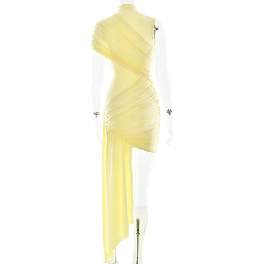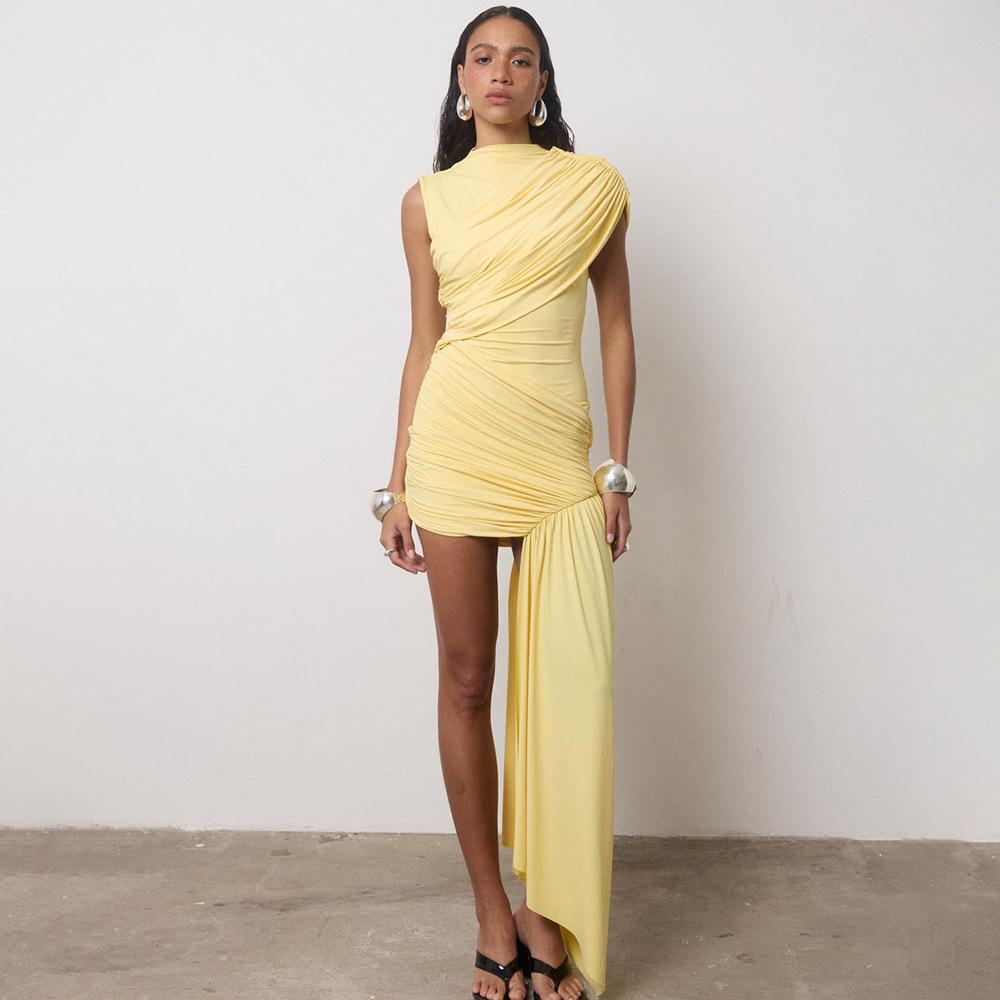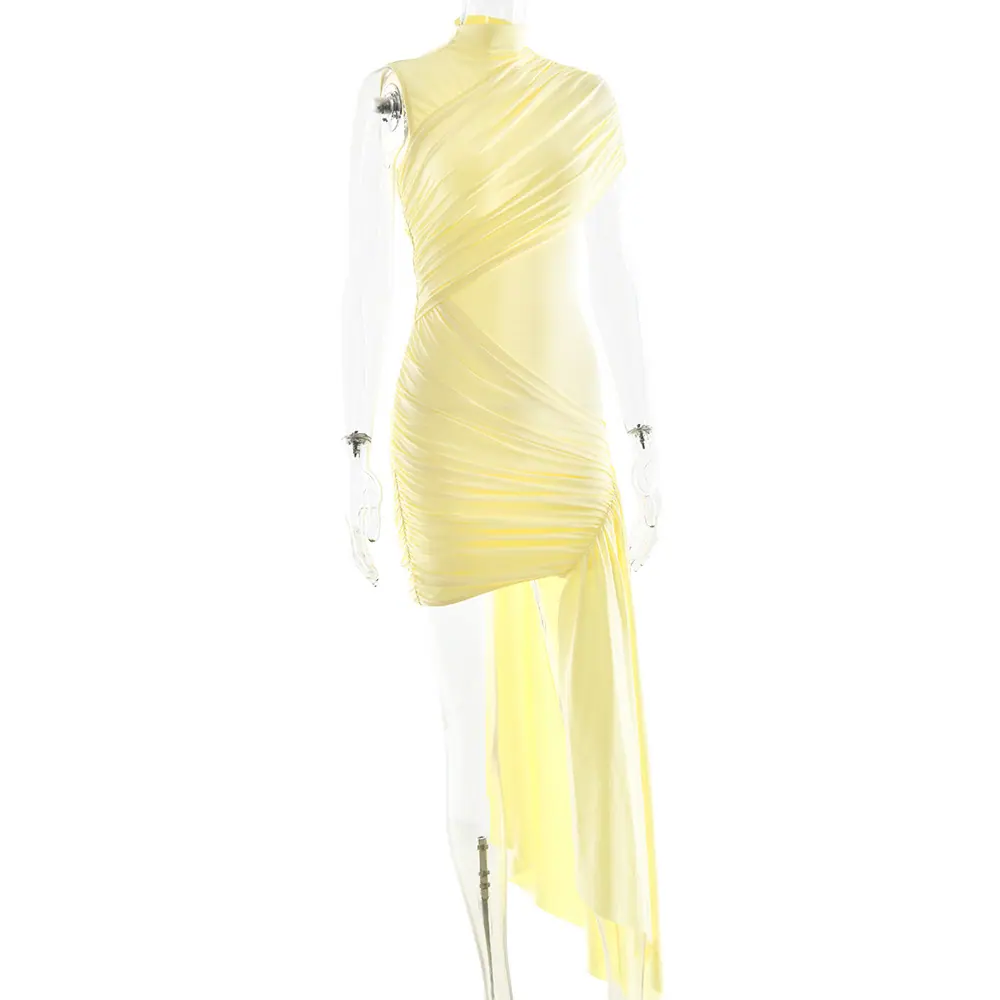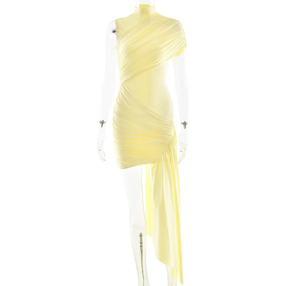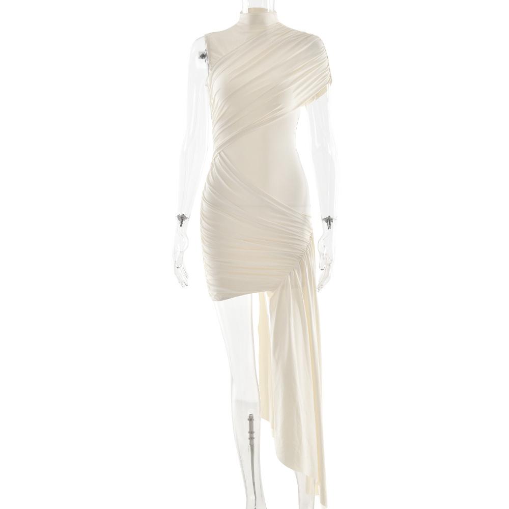 Compra Vestido de verano ajustado con tirantes, cuello redondo, plisado, sin mangas, irregular, estilo transfronterizo europeo y americano. al por mayor en Joom.pro