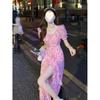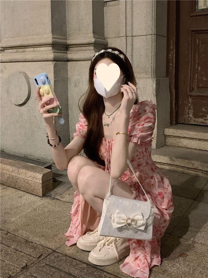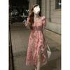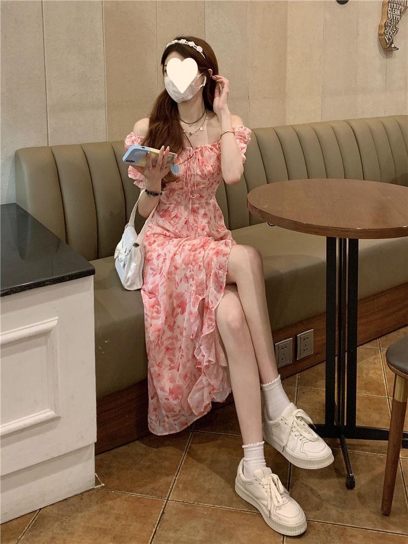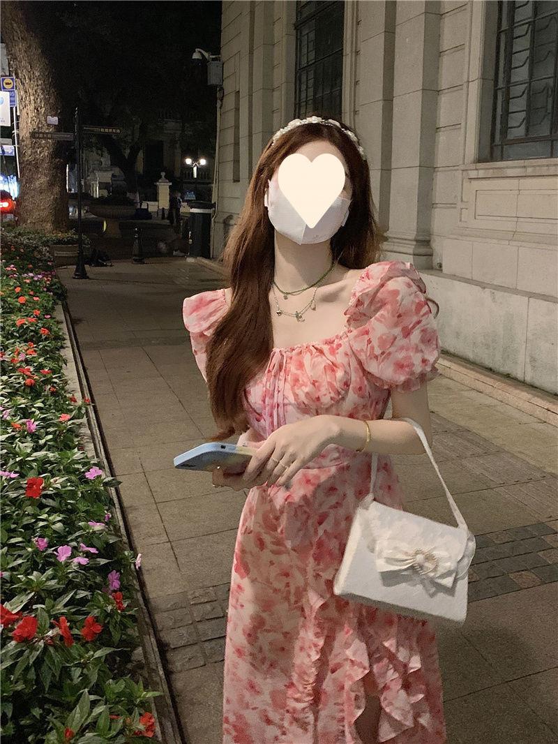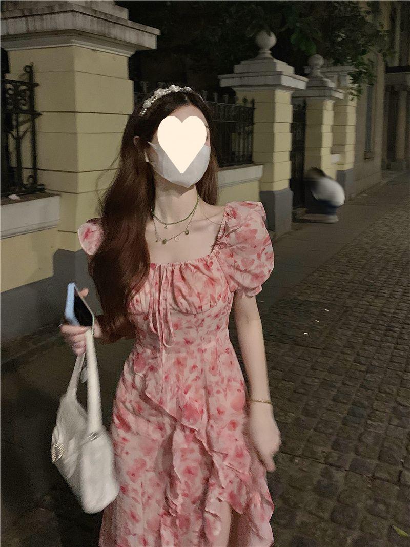 Compra Vestido floral estilo francés para mujer, de verano, talla grande, estilo suave, para chica gordita, cintura ajustada, adelgazante, con volantes, falda larga dividida al por mayor en Joom.pro