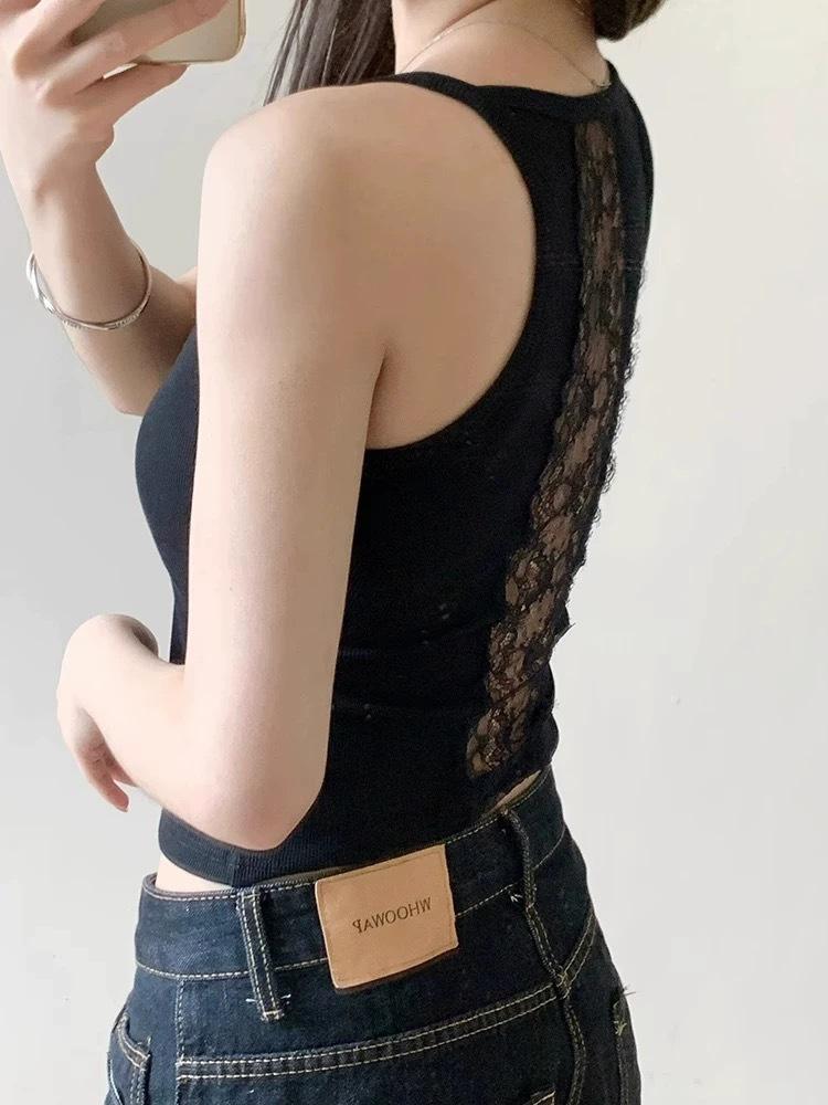 Camisola de verano sin mangas con perspectiva de costura de encaje en la espalda sexy de Pure Desire Spice Girl