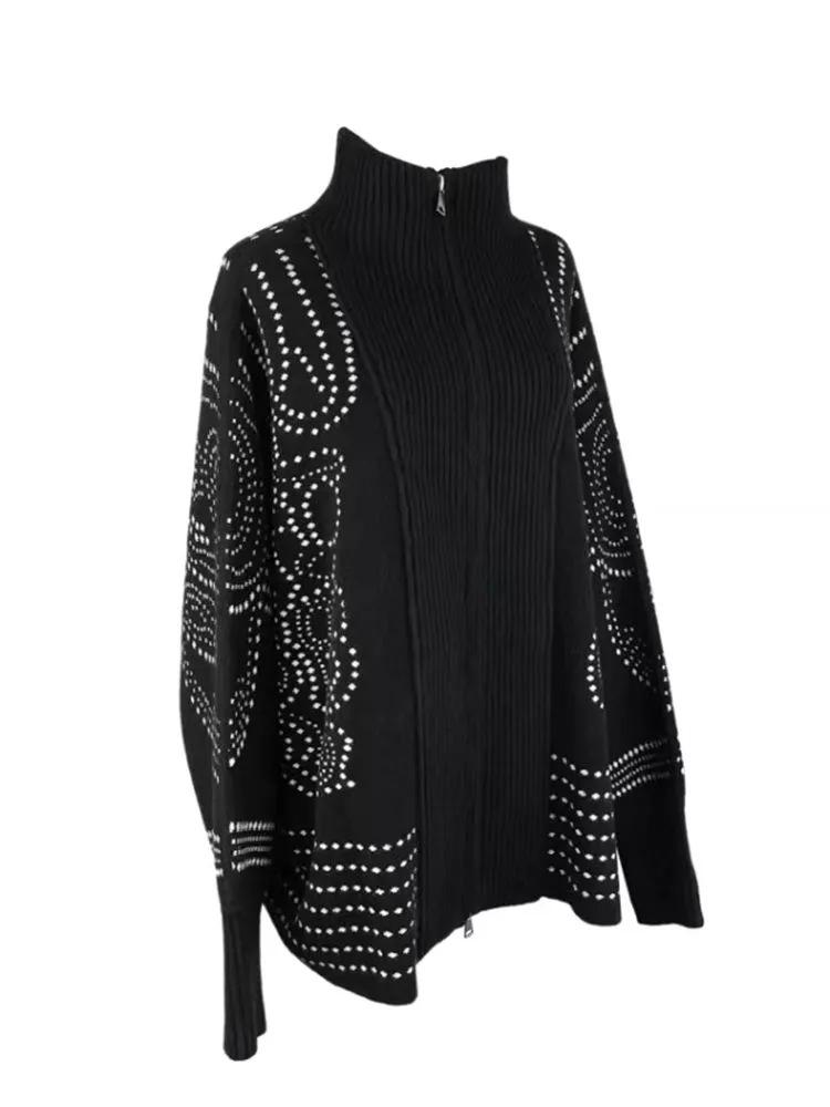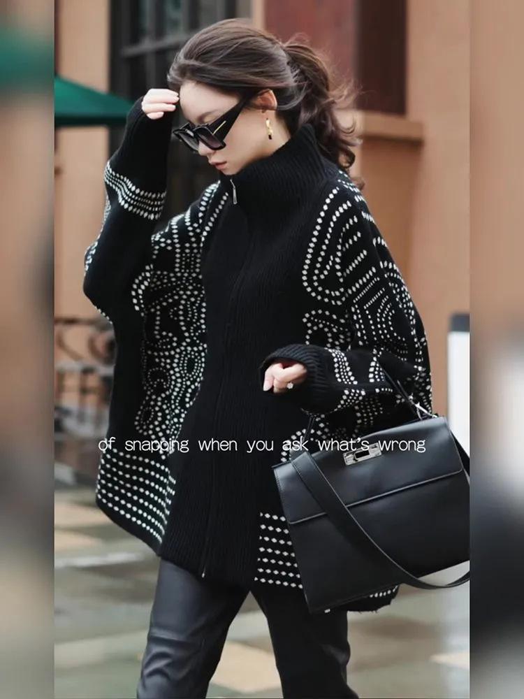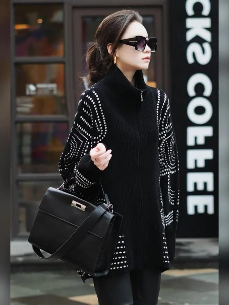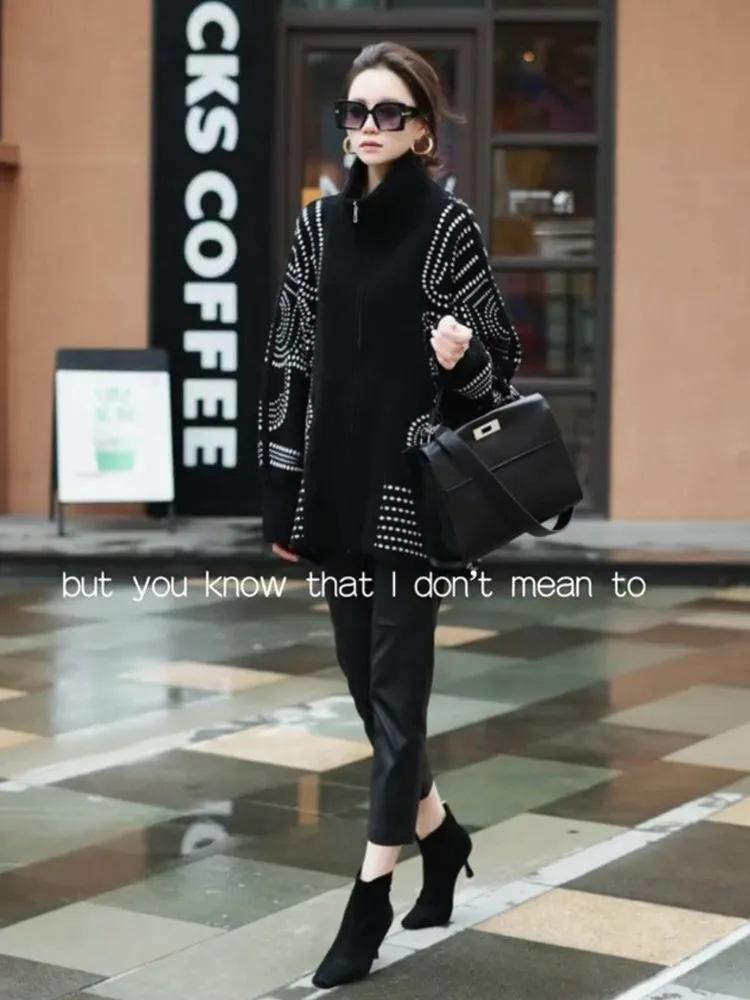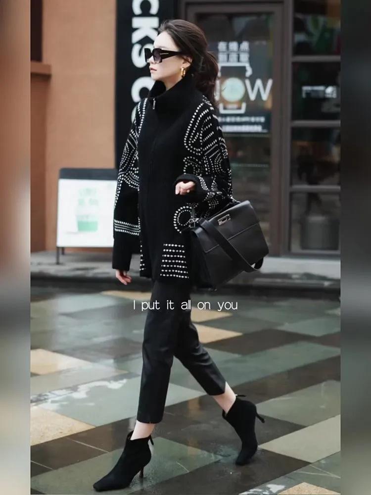 Moda Negra Combinable Elegante Estilo Holgazán Tejido de Punto para Mujer Primavera y Otoño Diseño de Productos Europeos Nicho Francés Chaqueta de Lujo Ligero
