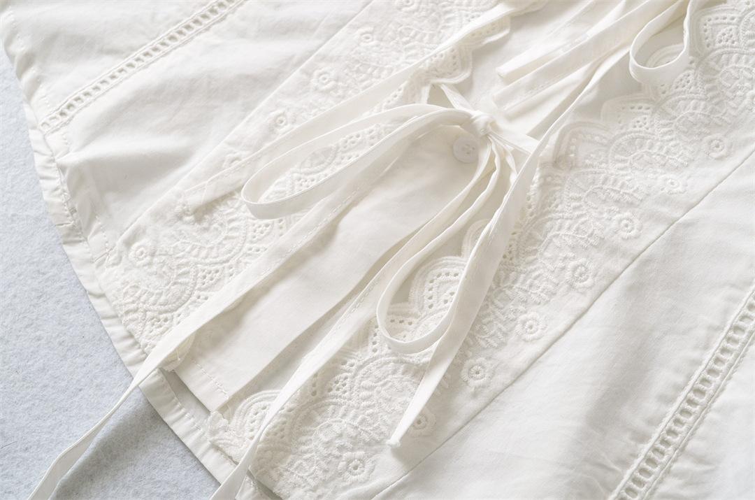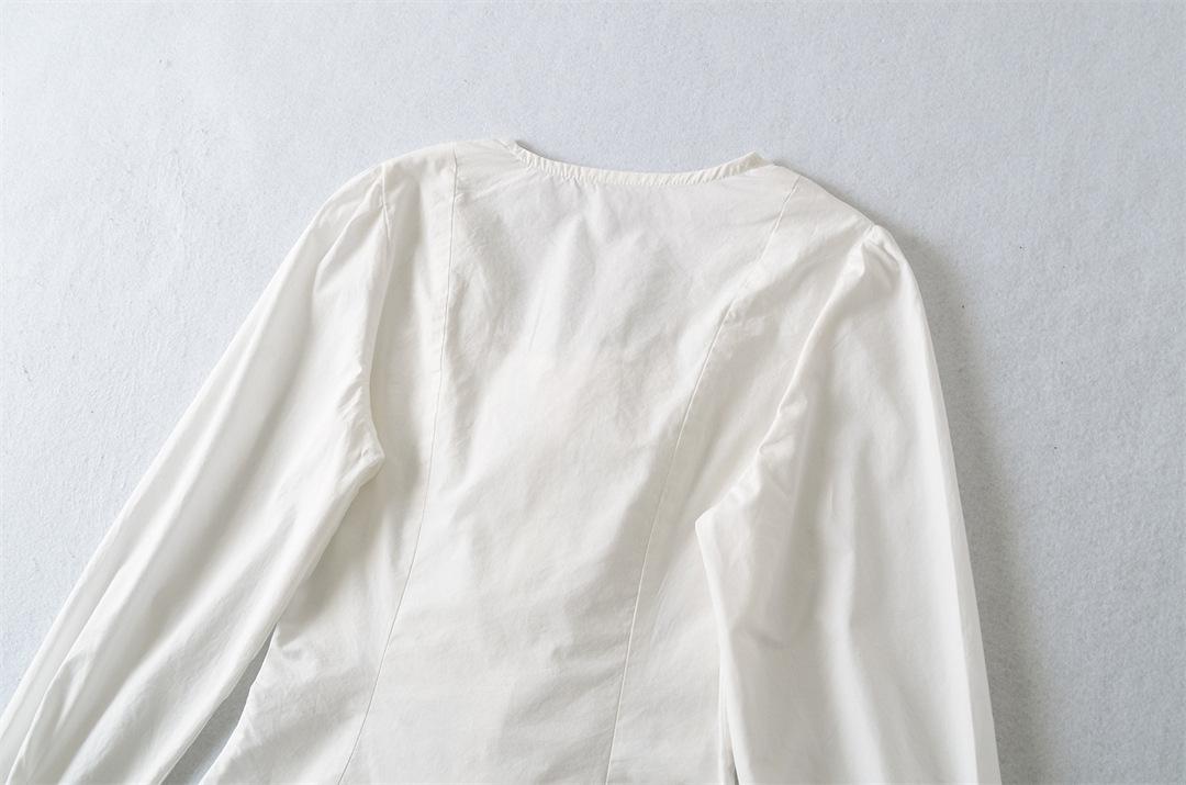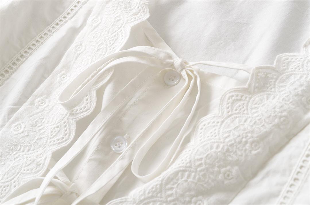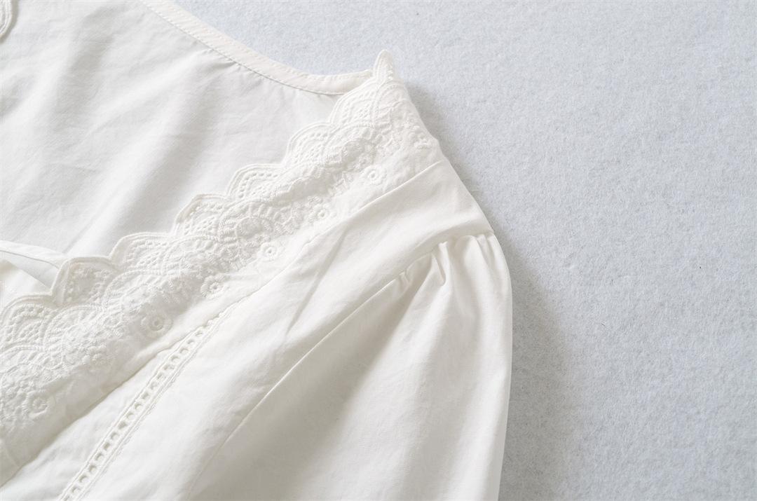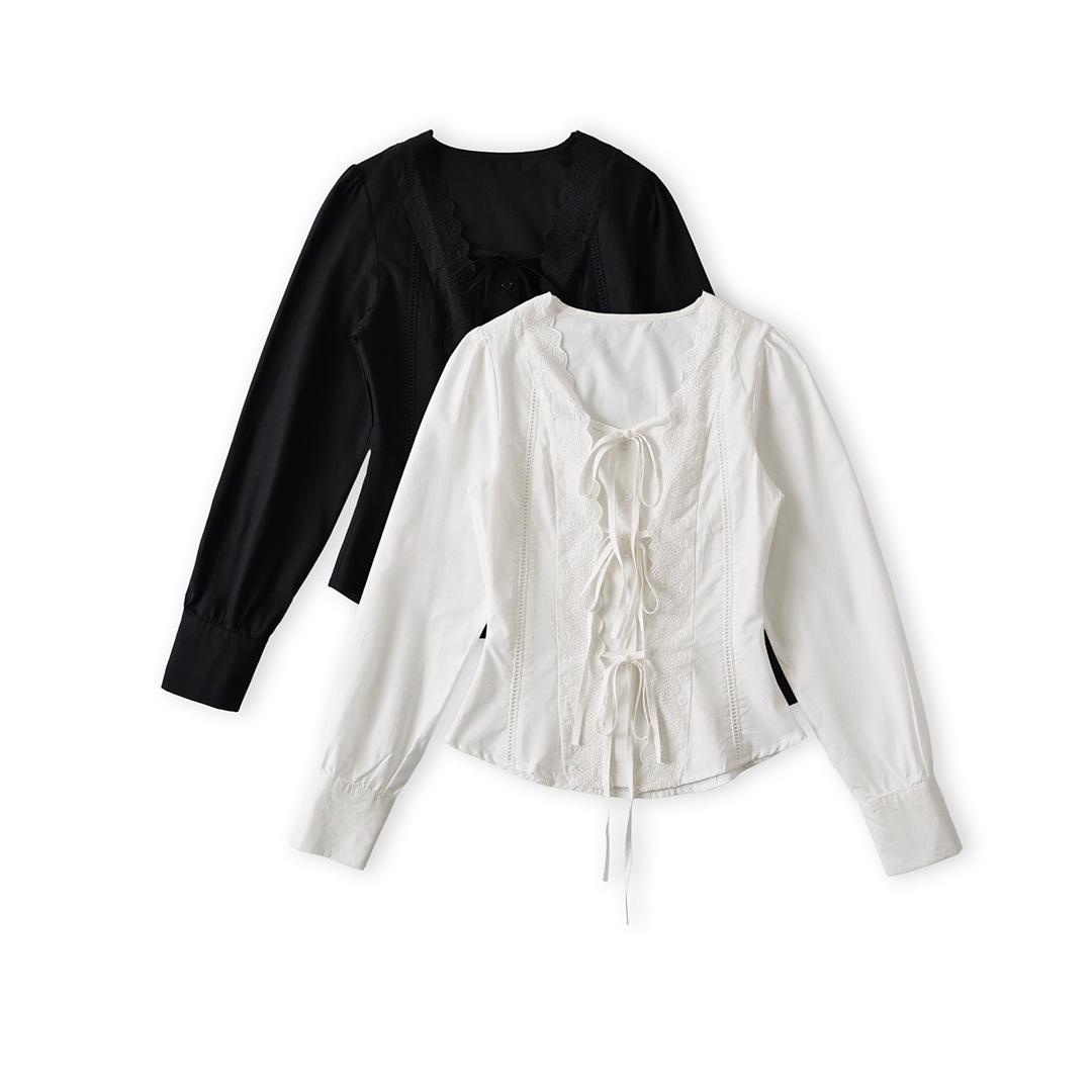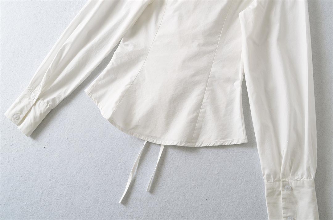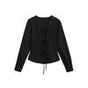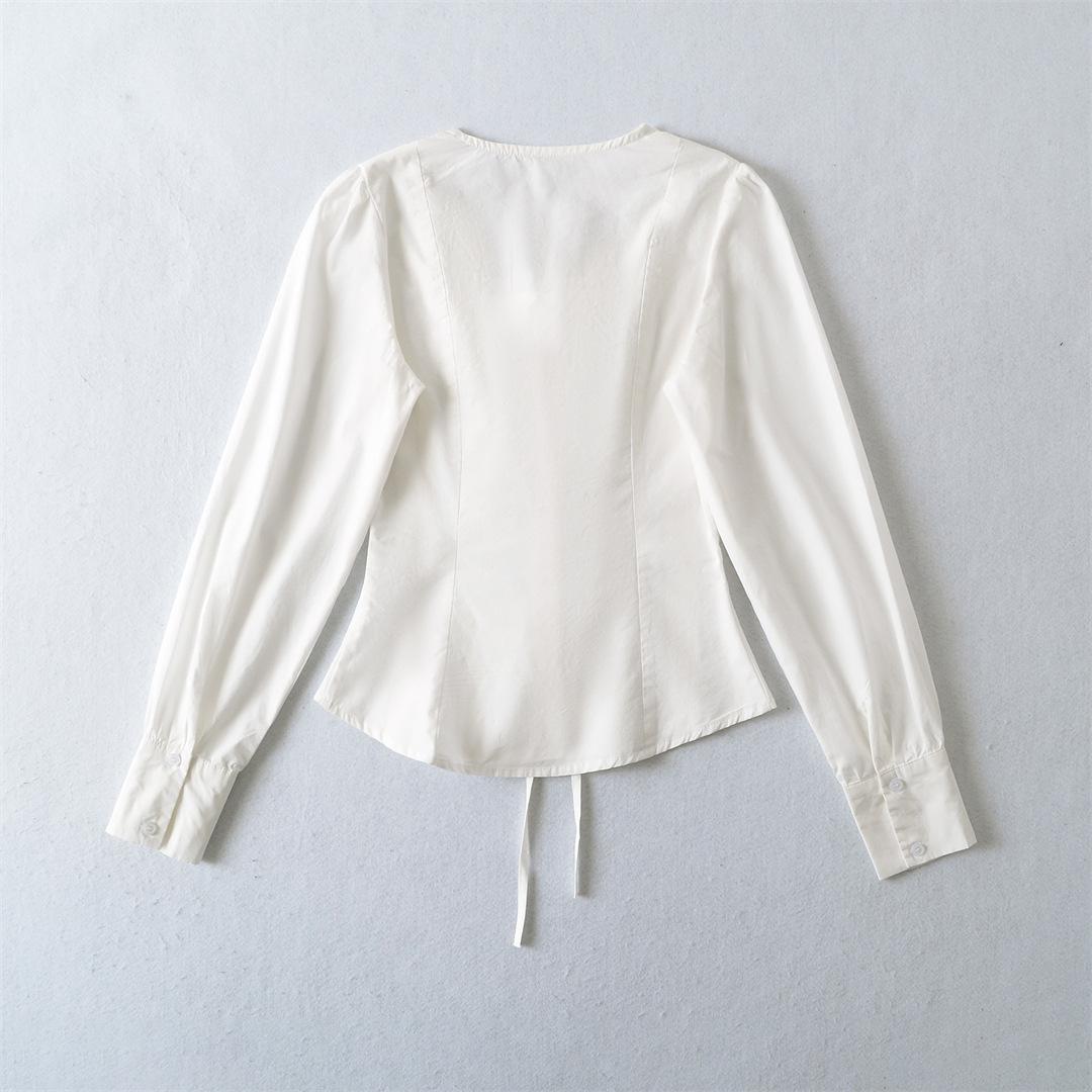 Compra Camisa de Manga Larga con Cuello de Encaje de Color Sólido Diseño para Mujer Chica Sexy Pecho Frente con Cordones Cintura Curvada Dulce Top Pulóver al por mayor en Joom.pro