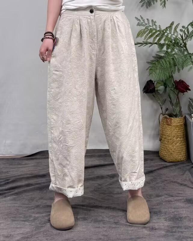 Compra Pantalones casuales de lino para mujer, primavera y verano, nuevos, artísticos, retro, sueltos, adelgazantes, sencillos, combinables, de pierna ancha, elegantes, pantalones Harlan al por mayor en Joom.pro