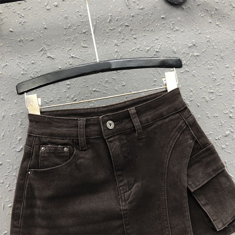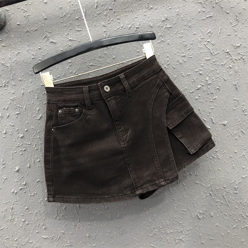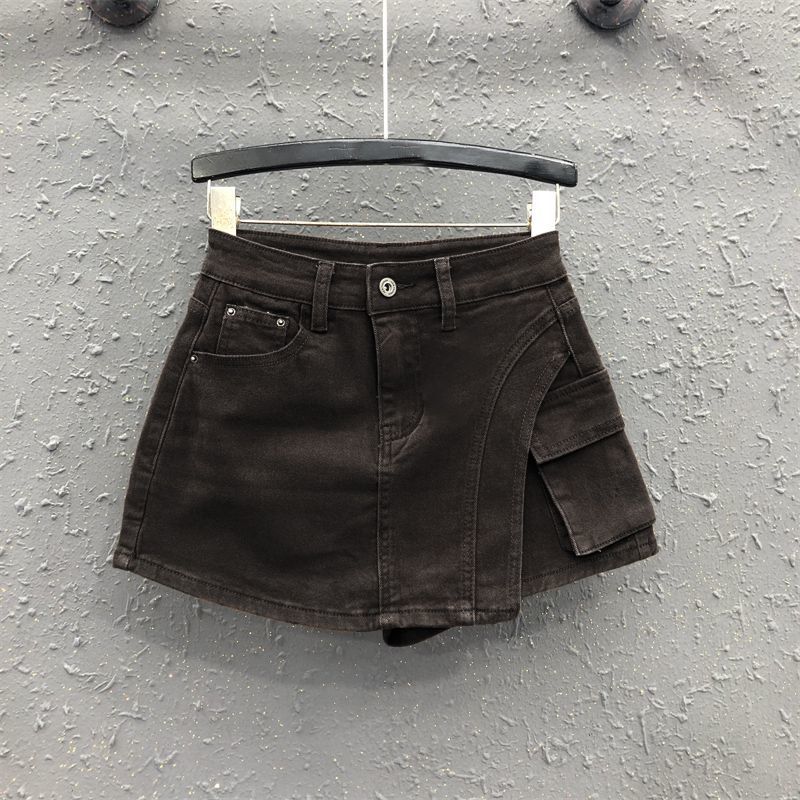 Minifalda de mezclilla para mujer Primavera y Verano 2025 Nueva Elástica Cintura Alta Look Adelgazante Falda Pantalón Línea A Dulce y Cool Negra Media Falda