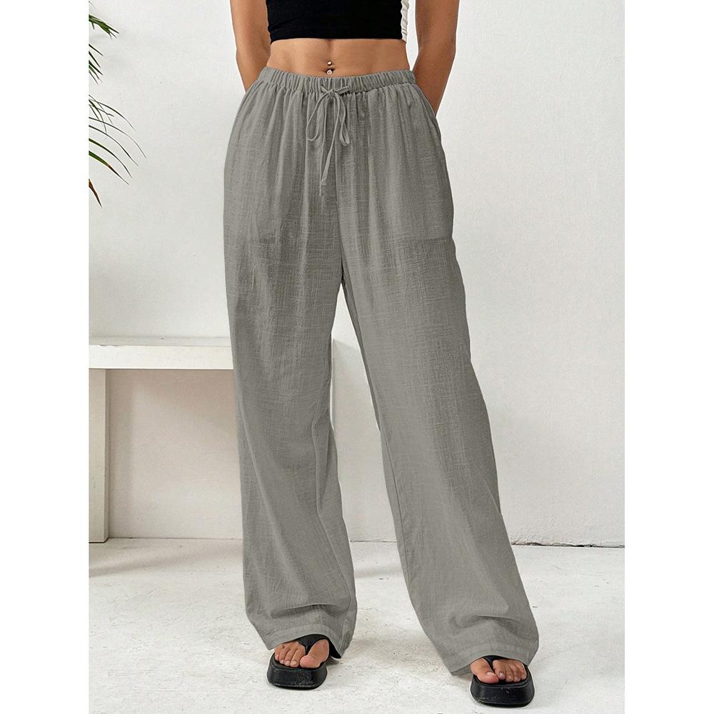 Pantalones casuales rectos nuevos de primavera y verano 2025 para mujer, pantalones largos holgados de pierna ancha de color sólido que combinan con todo. Disponibles en stock y con envío transfronterizo.