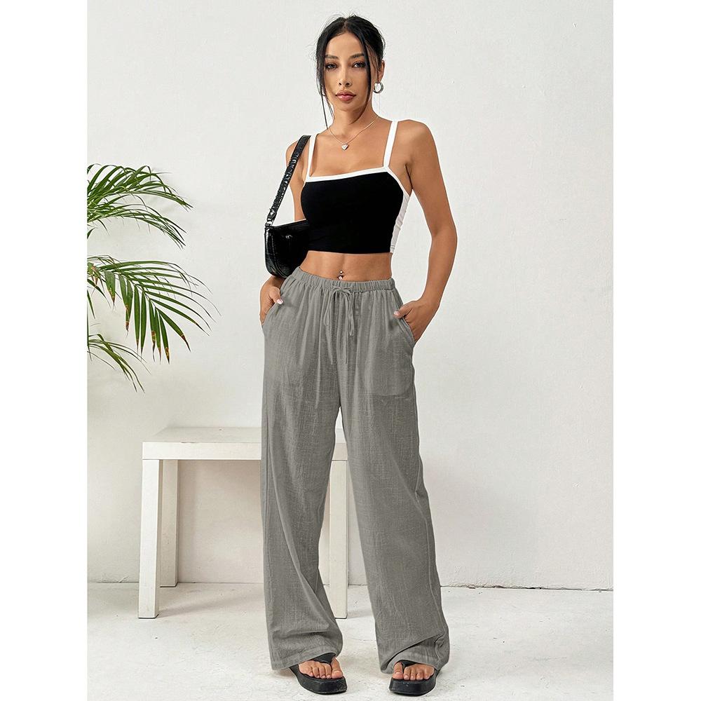 Compra Pantalones casuales rectos nuevos de primavera y verano 2025 para mujer, pantalones largos holgados de pierna ancha de color sólido que combinan con todo. Disponibles en stock y con envío transfronterizo. al por mayor en Joom.pro