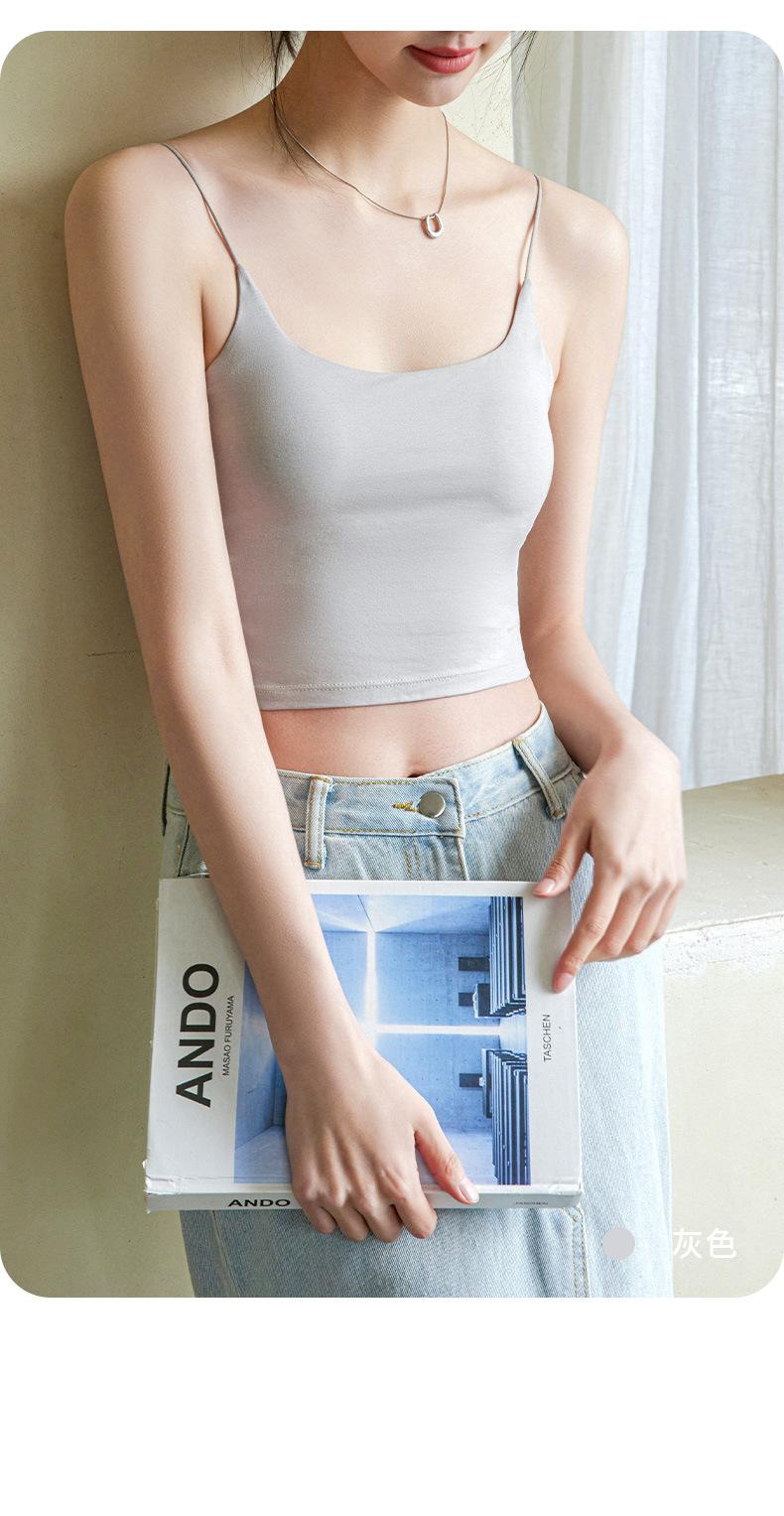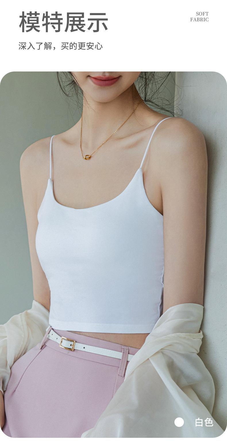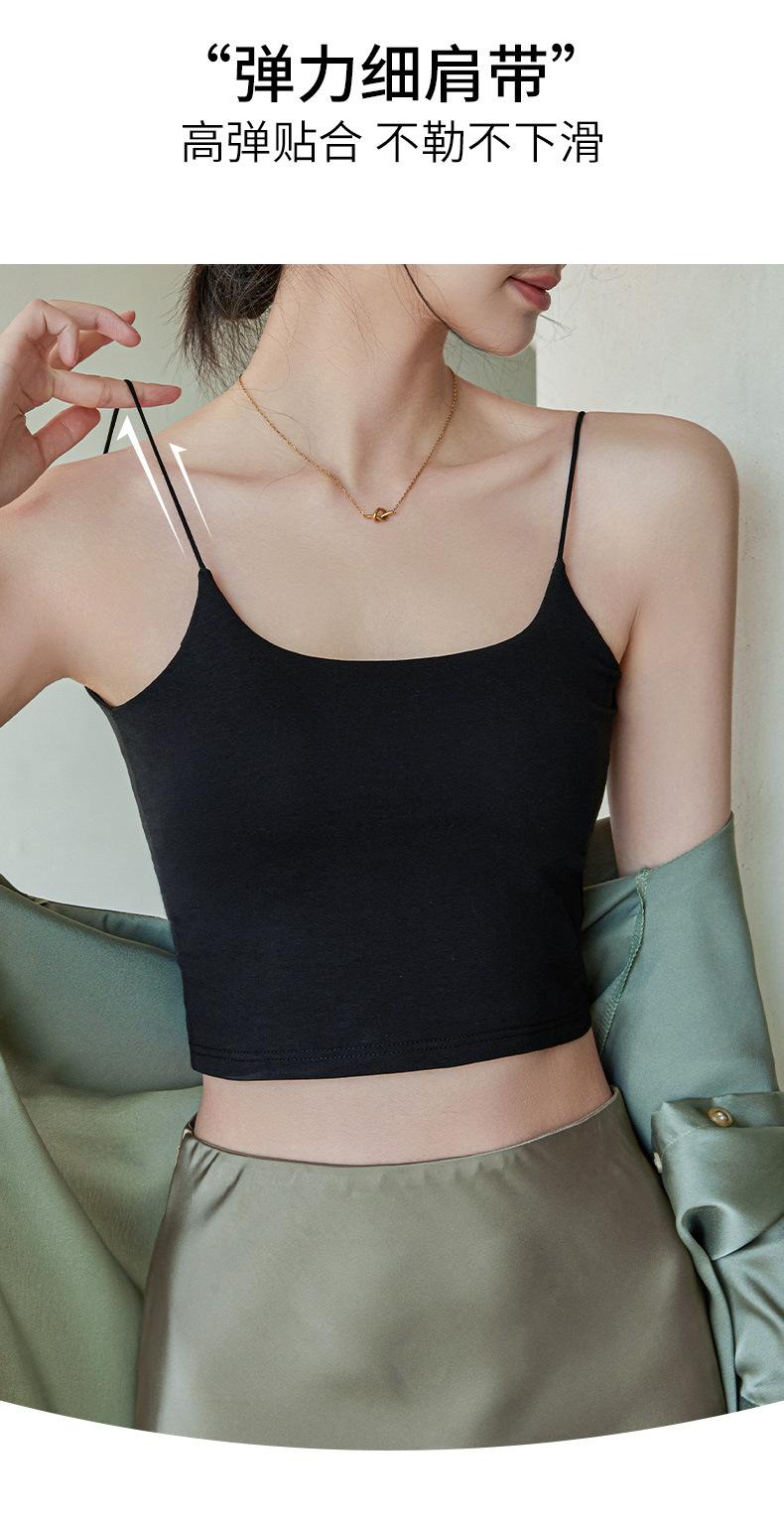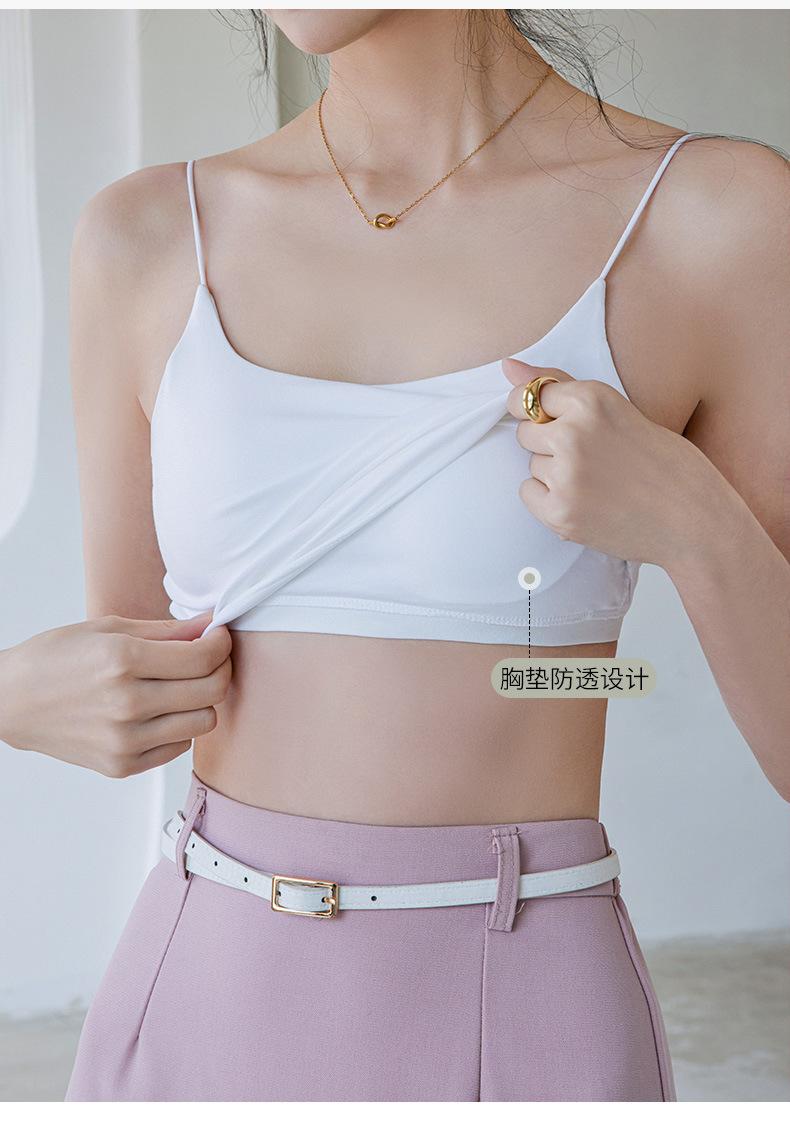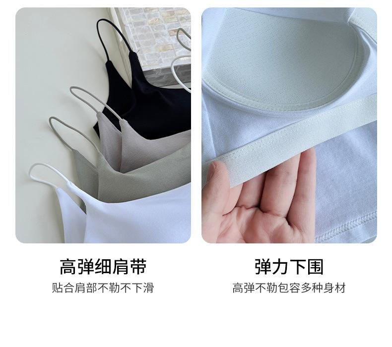 Camisola de mujer con almohadilla para el pecho, verano 2025, nuevo estilo, prenda exterior, tirantes finos antideslizantes, cuello lateral, espalda hermosa, sin marcas.