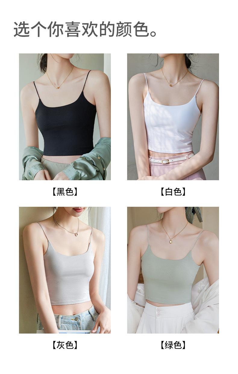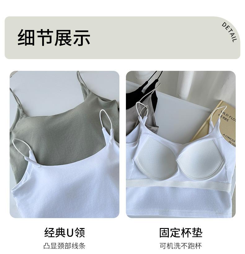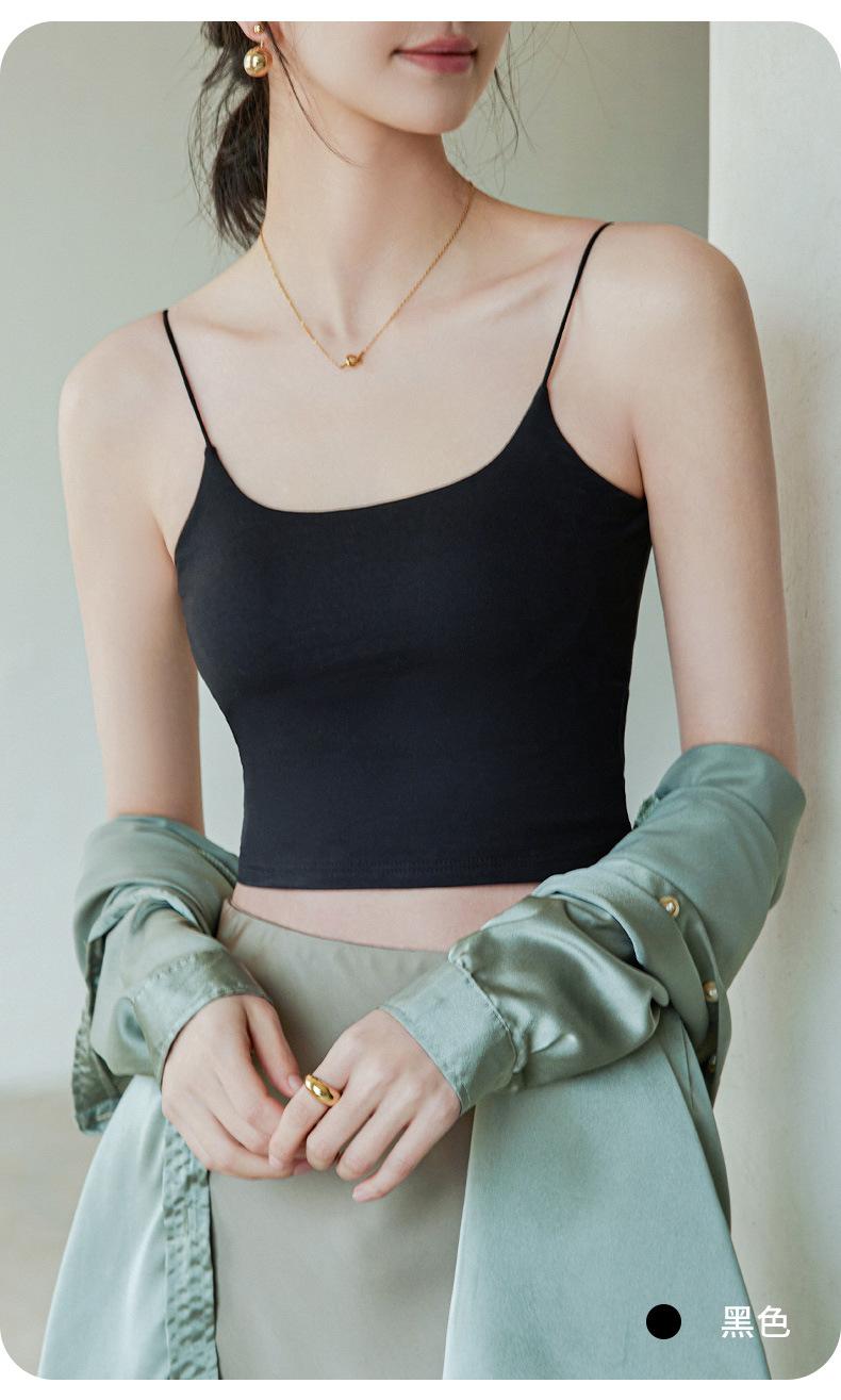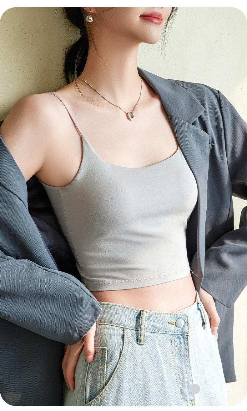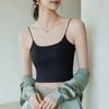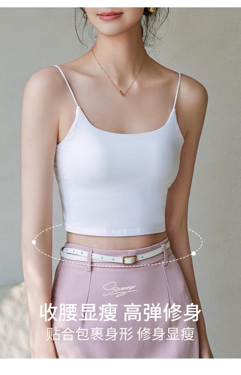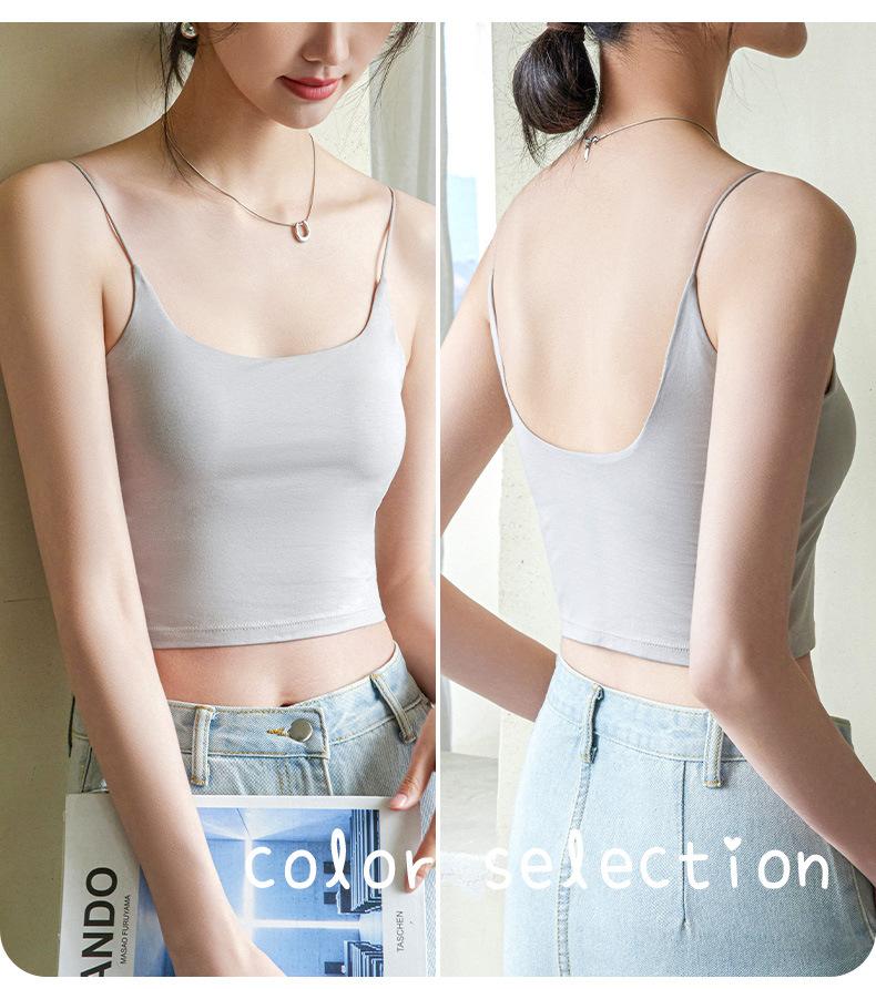 Camisola de mujer con almohadilla para el pecho, verano 2025, nuevo estilo, prenda exterior, tirantes finos antideslizantes, cuello lateral, espalda hermosa, sin marcas.