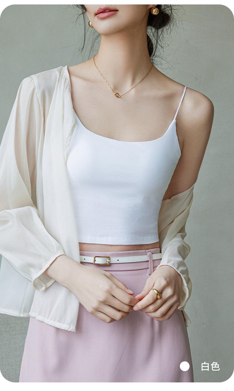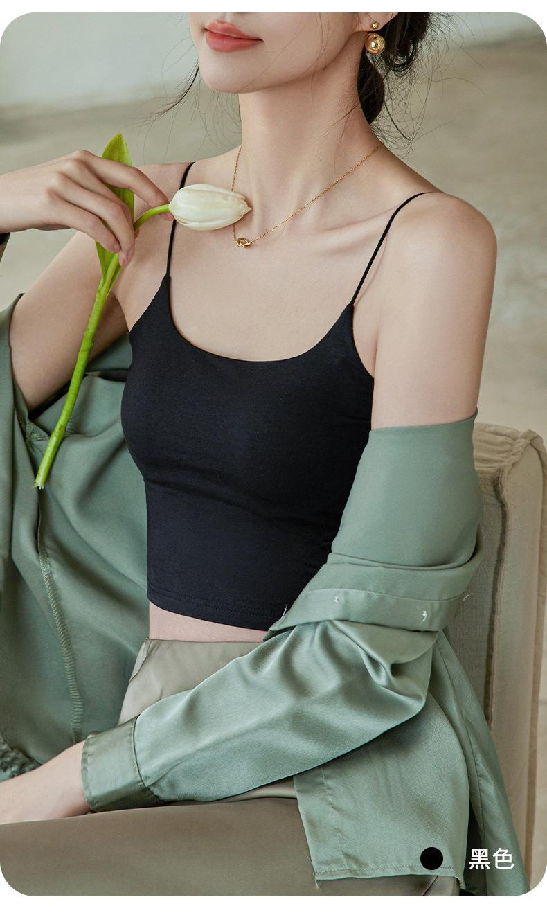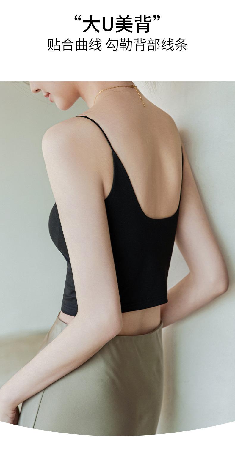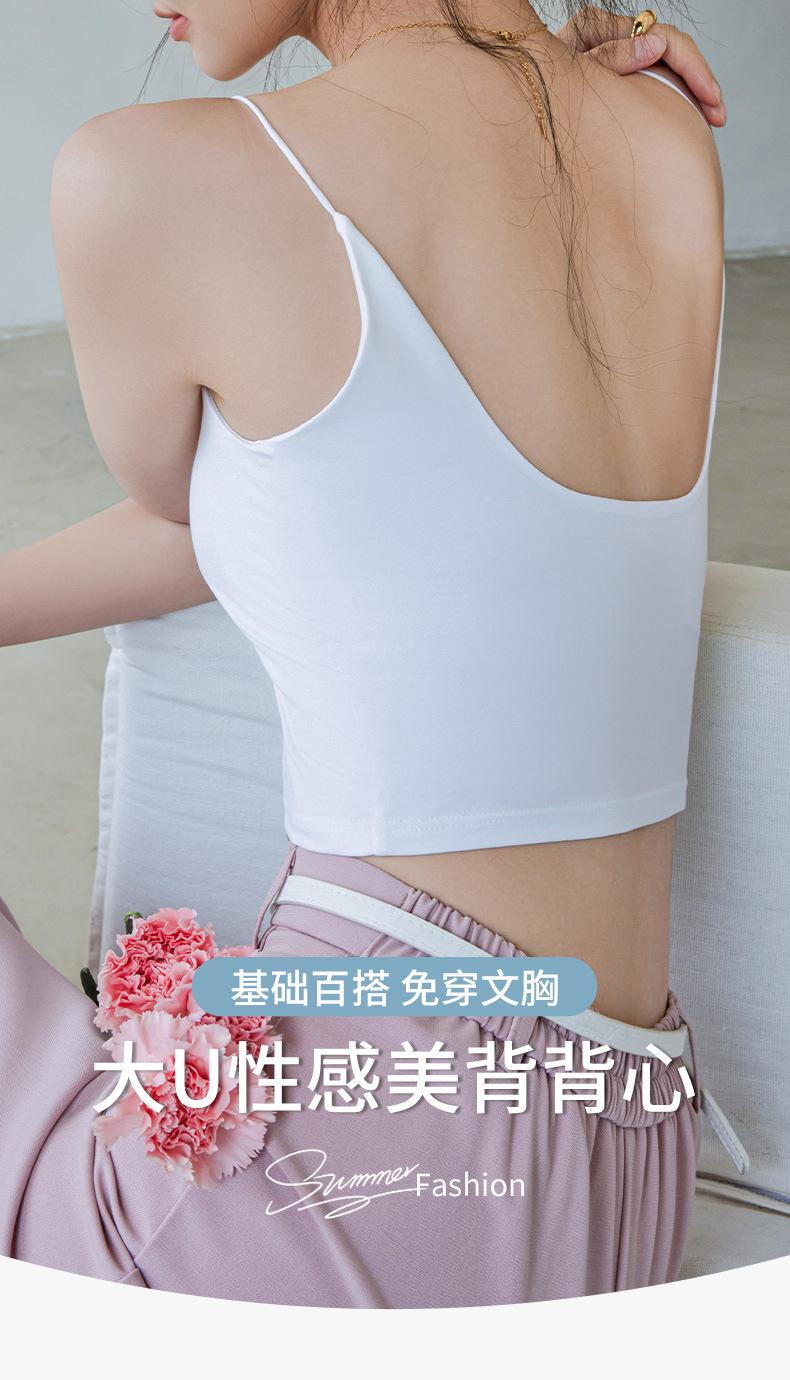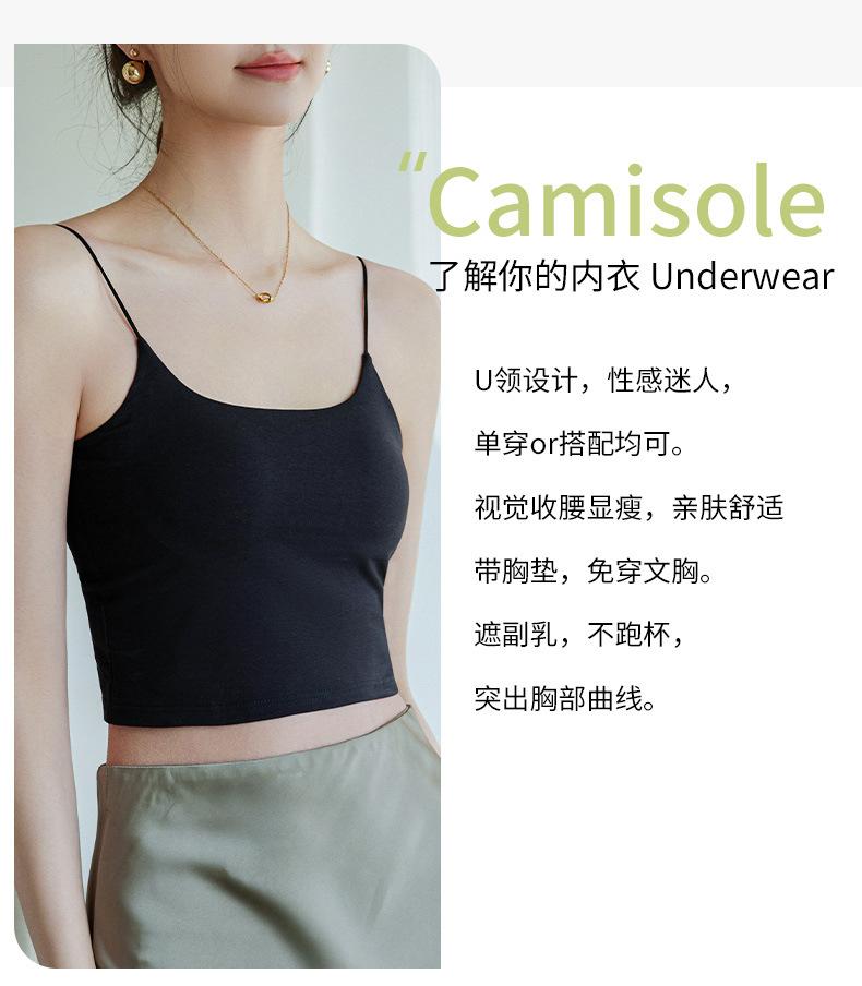 Camisola de mujer con almohadilla para el pecho, verano 2025, nuevo estilo, prenda exterior, tirantes finos antideslizantes, cuello lateral, espalda hermosa, sin marcas.