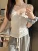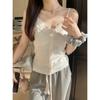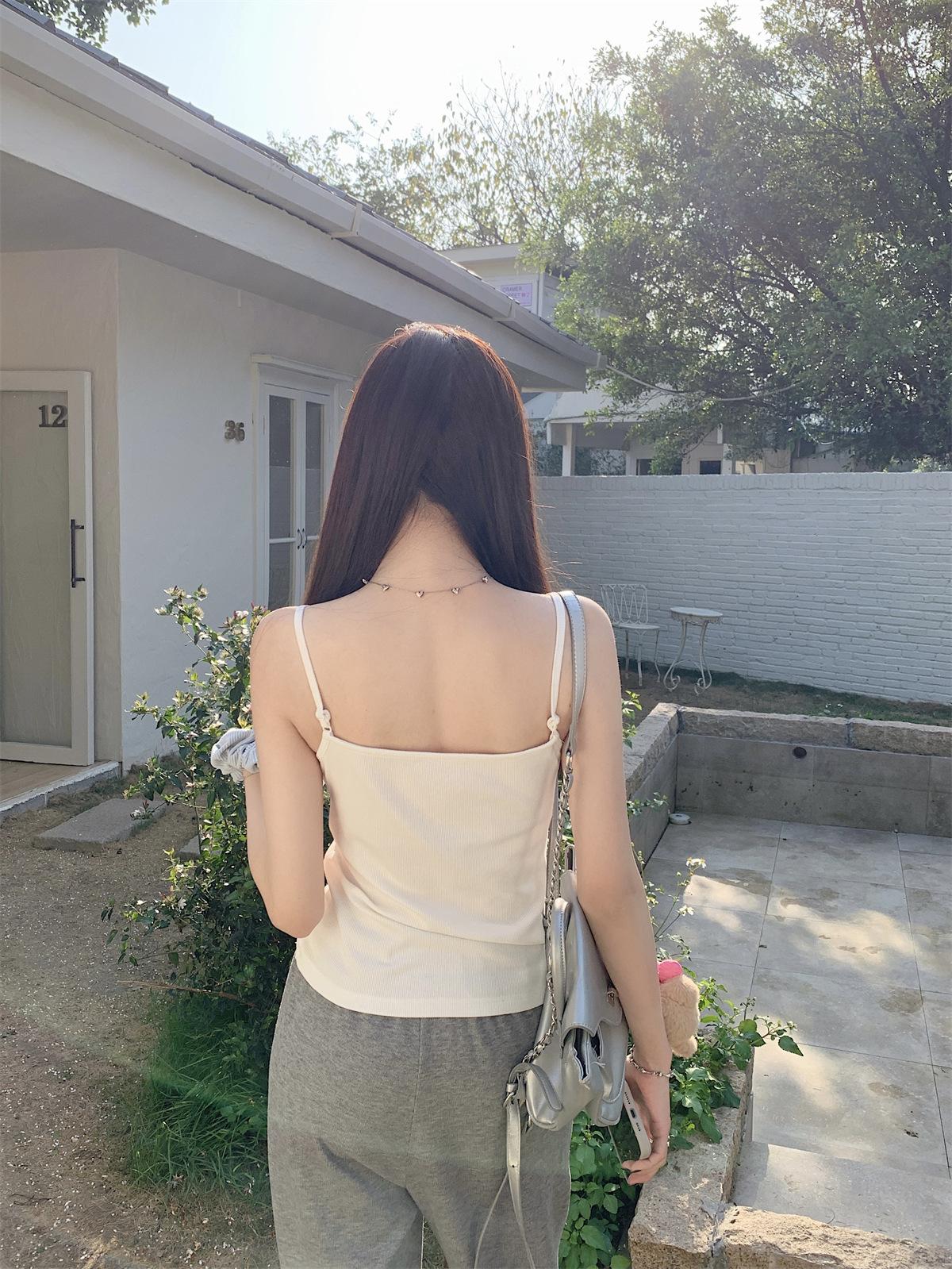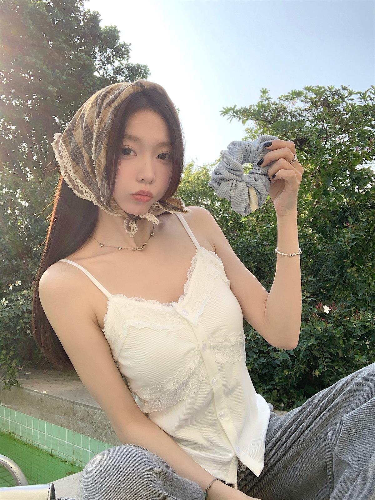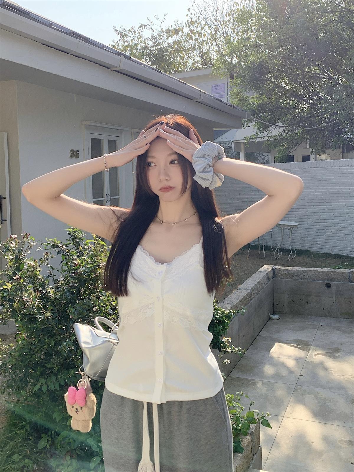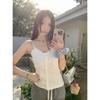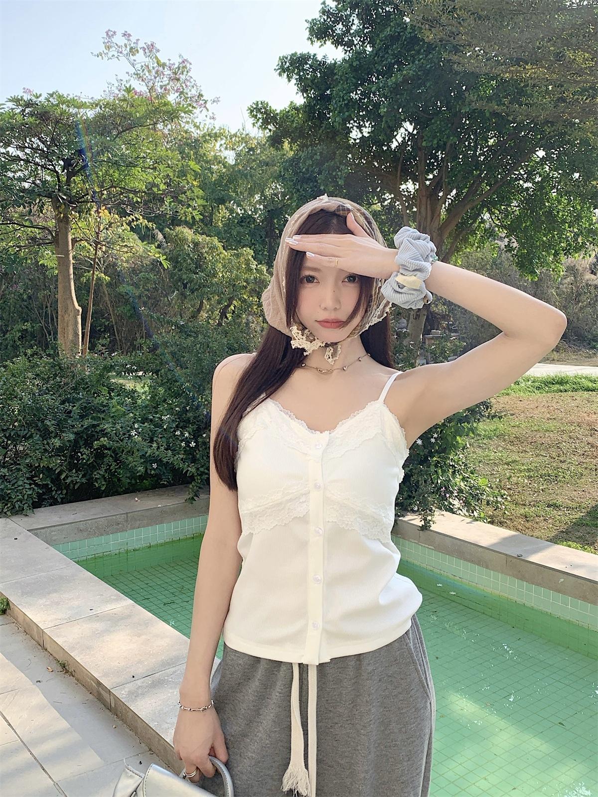 Foto real verano 2025 estilo coreano encaje puro botonadura sencilla tirante ajustable top camisola blanco