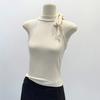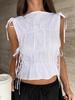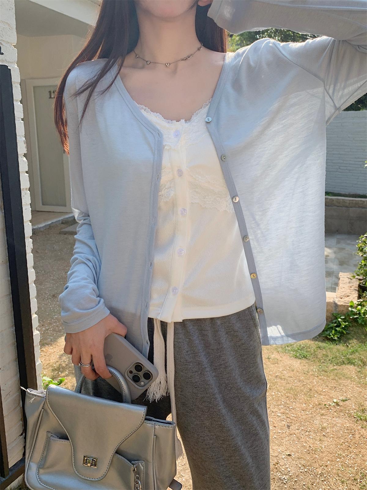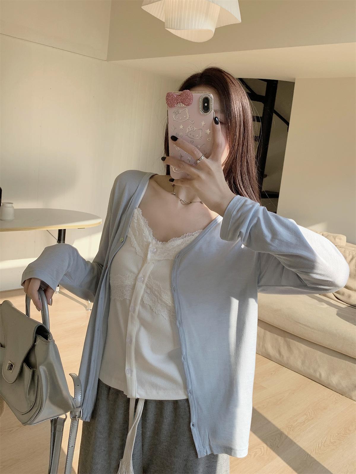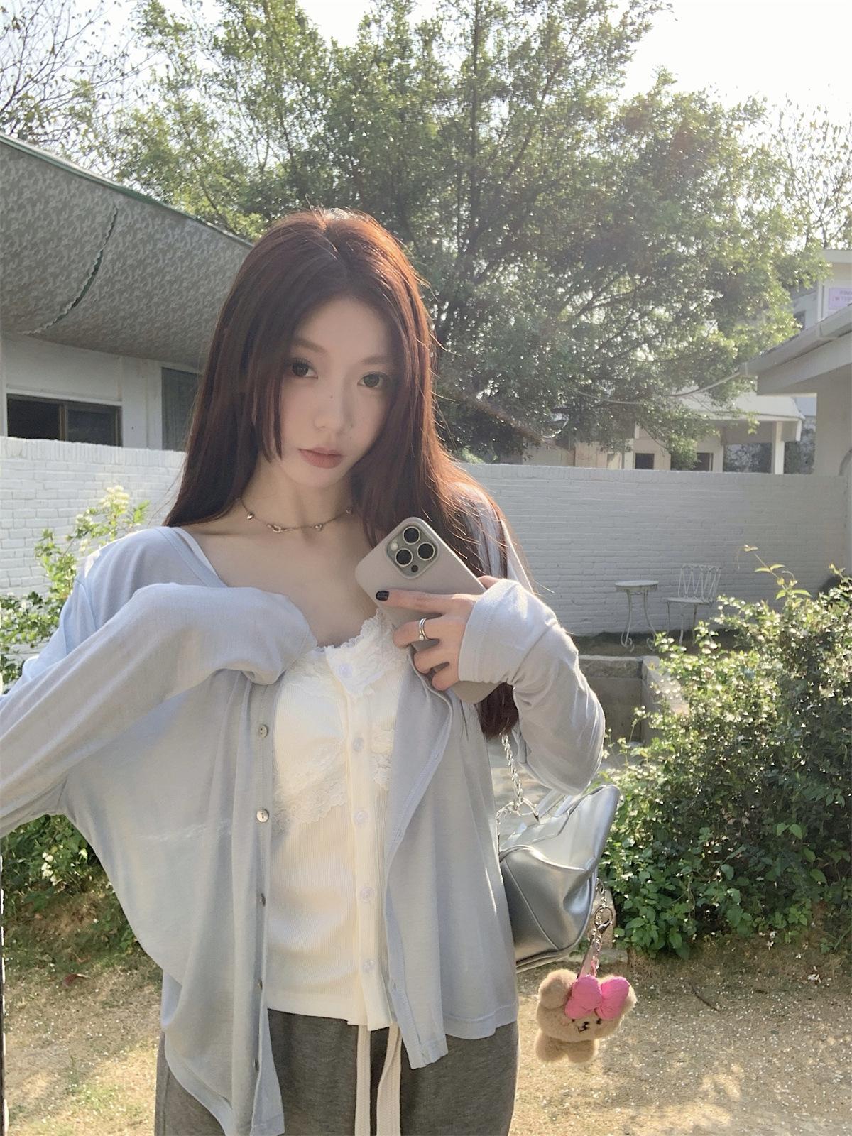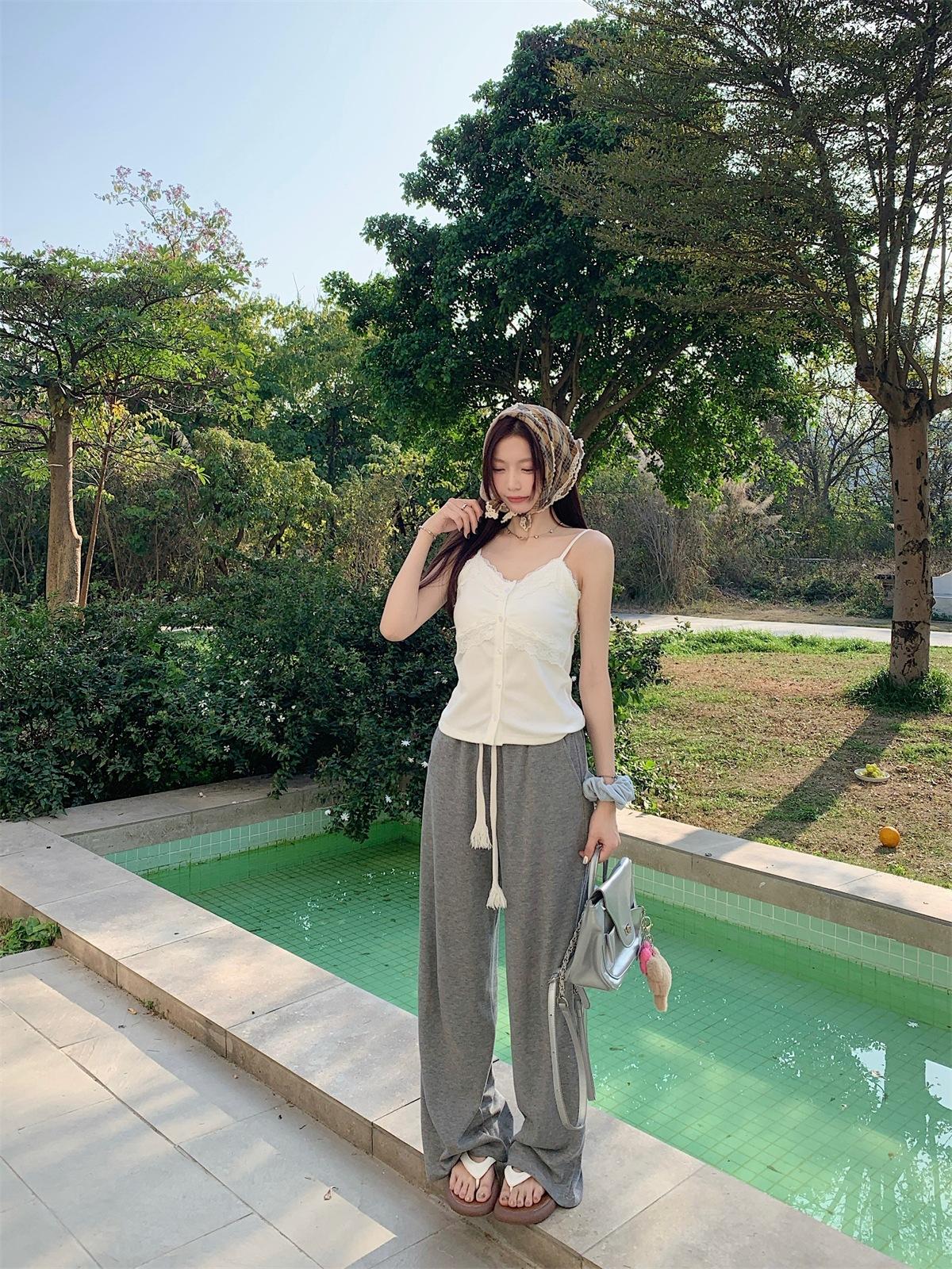 Foto real verano 2025 estilo coreano encaje puro botonadura sencilla tirante ajustable top camisola blanco