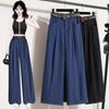 Pantalones vaqueros negros vintage de pierna ancha para mujer, nuevos pantalones casuales holgados de cintura alta y adelgazantes de talla grande