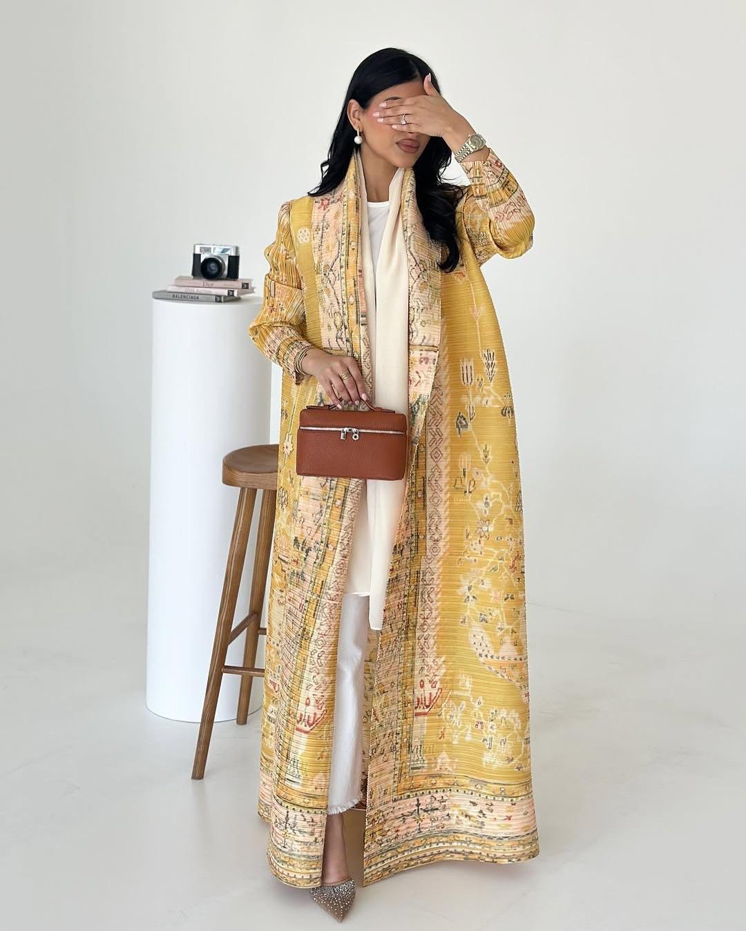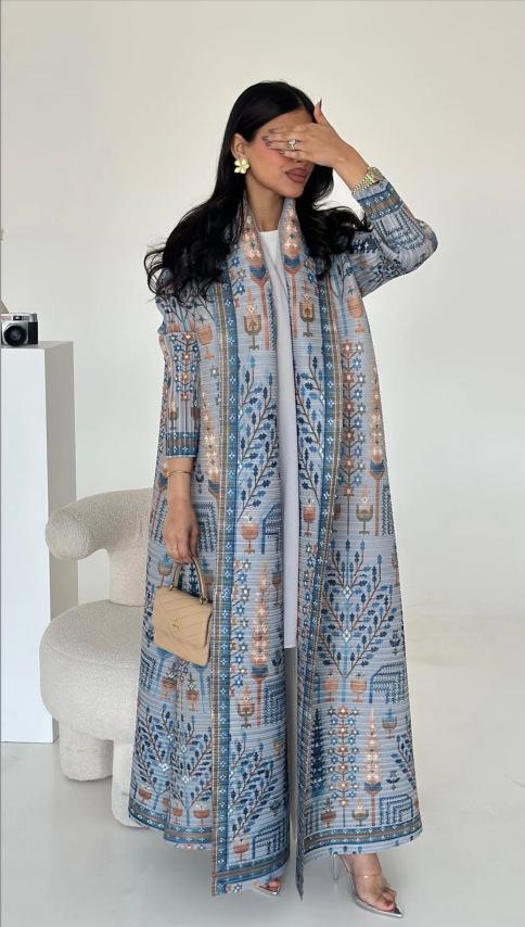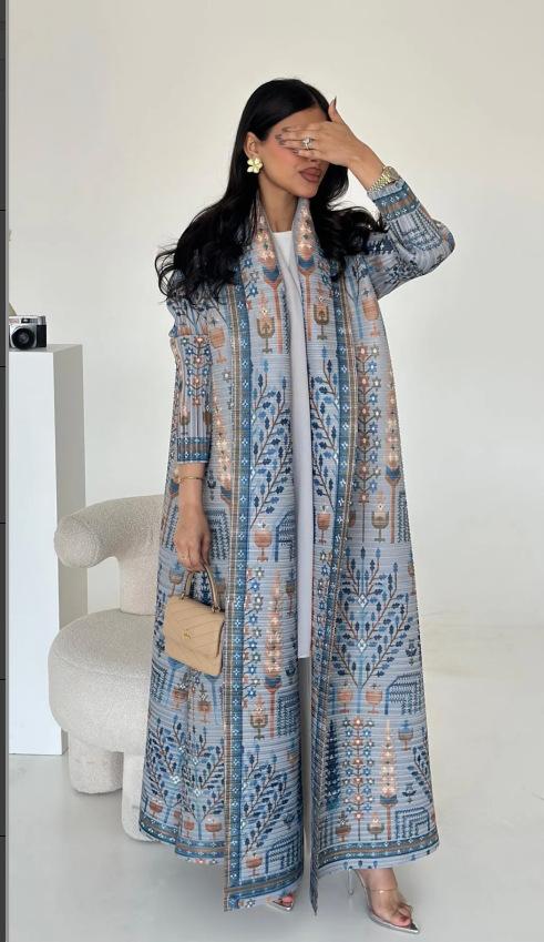 Miyake Medio Oriente Bata Elegante Abaya Abrigo Largo Bata Mujer Moda Ropa Musulmana Bata Medio Oriente Mujer