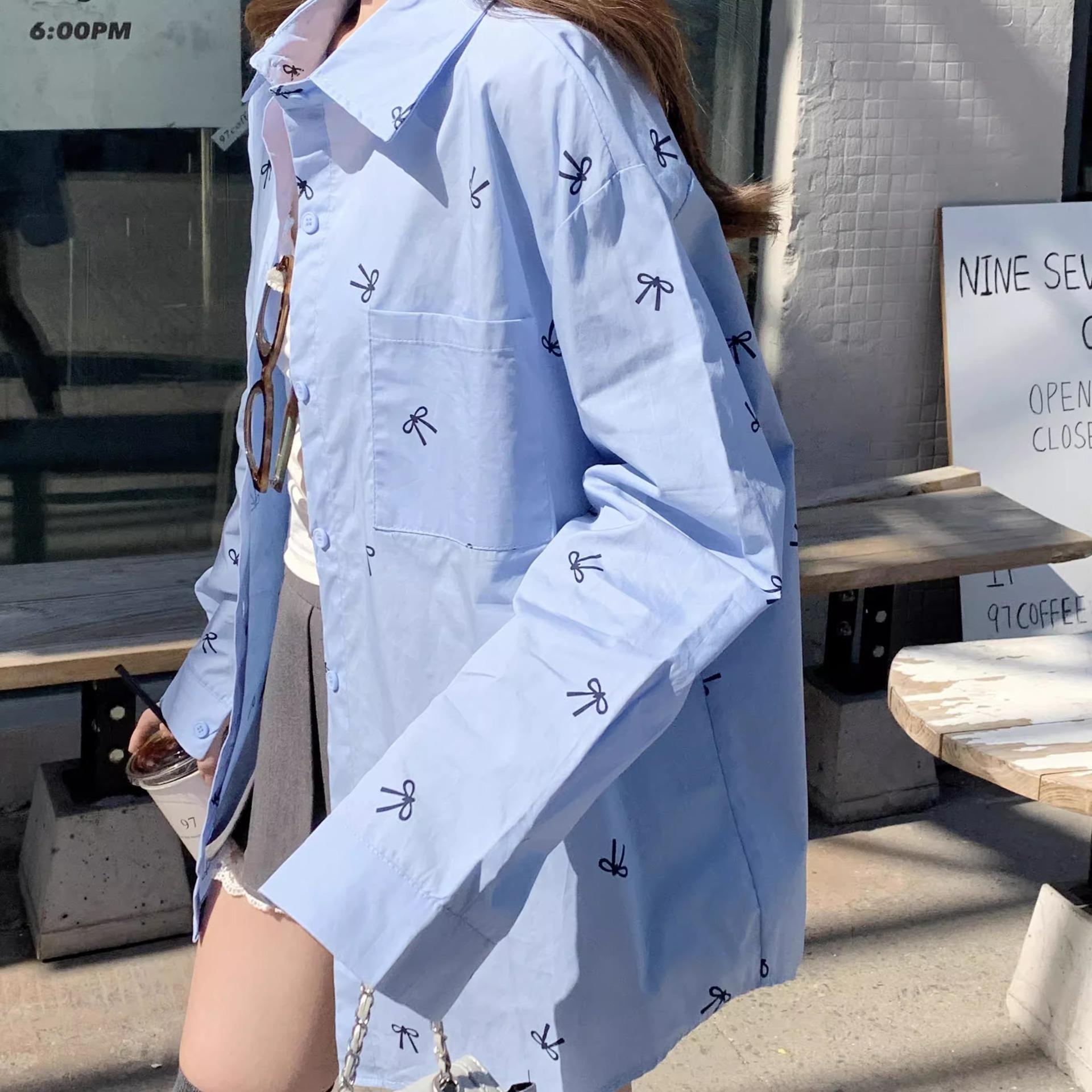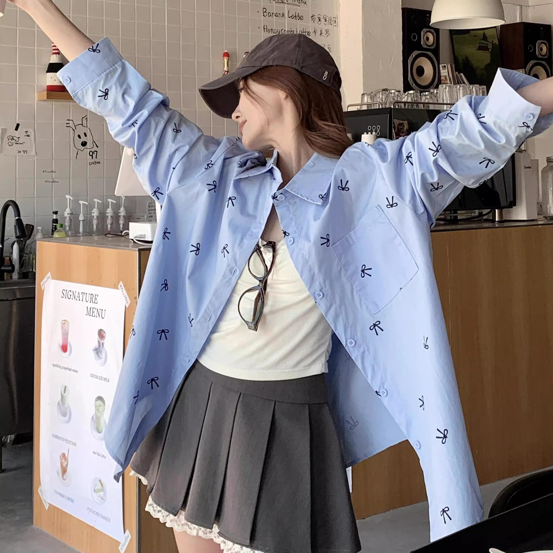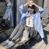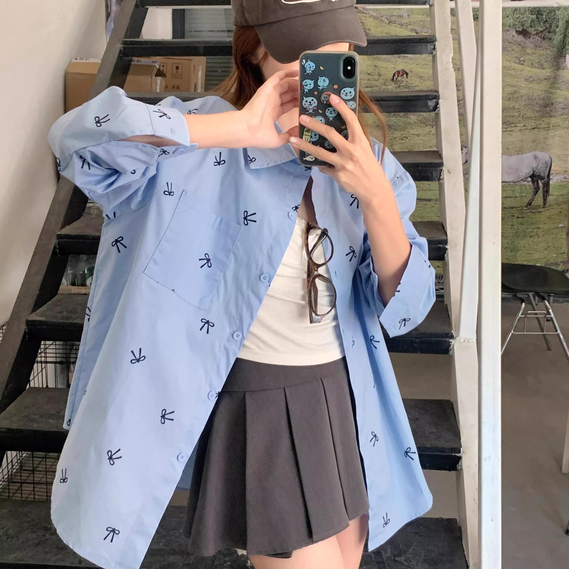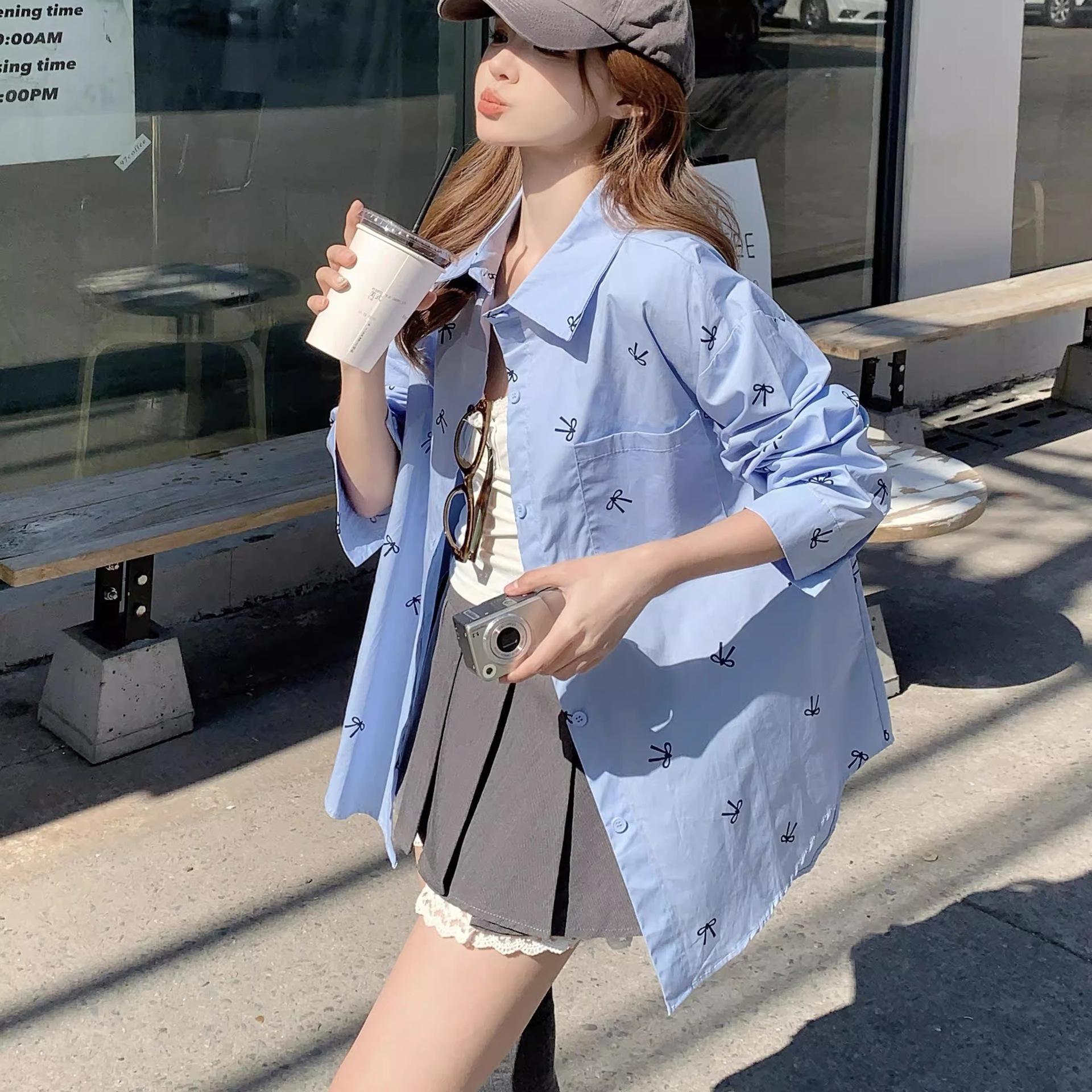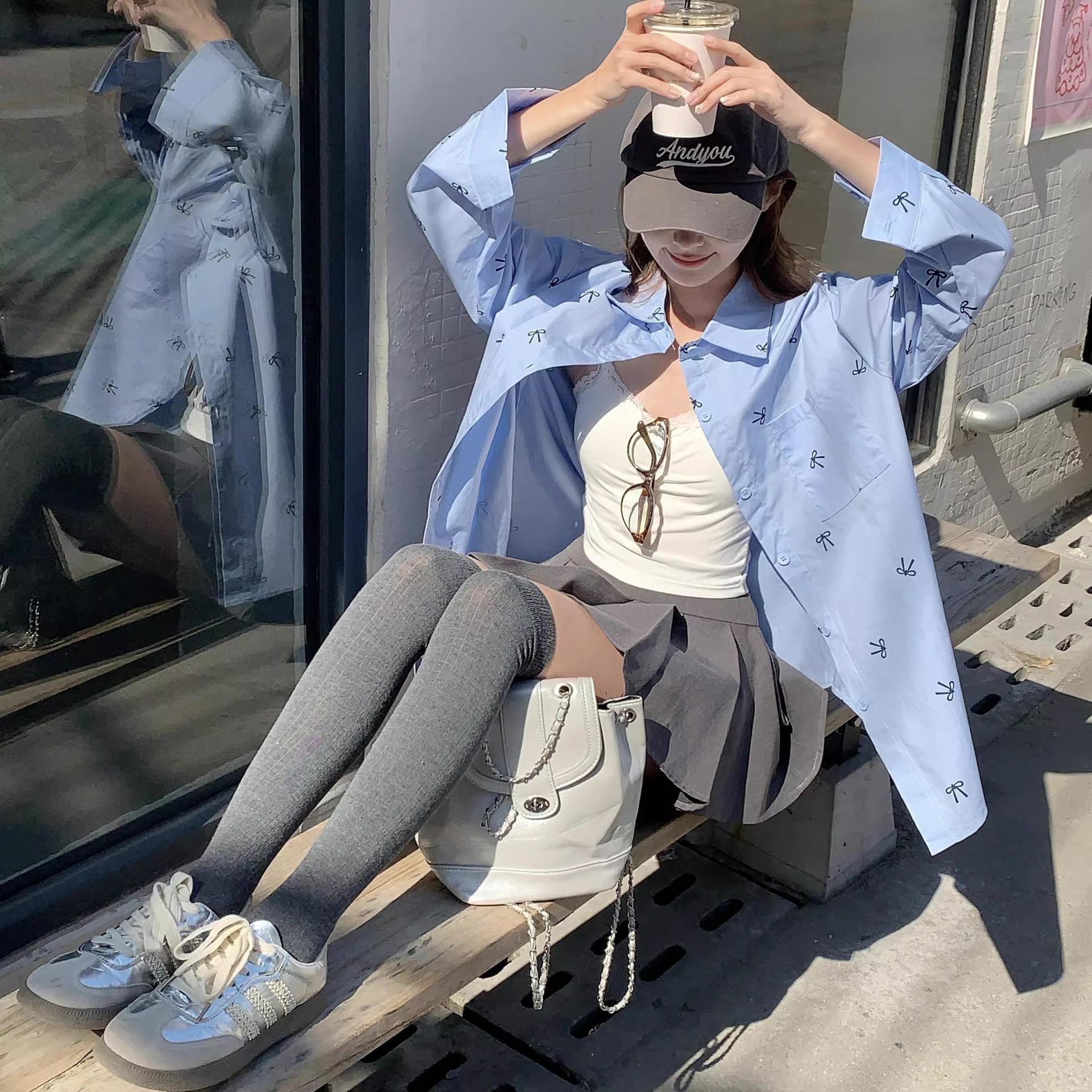 Camisa Protectora Solar Abrigo de Mujer Verano Camisa Pequeña Azul Top Camisa Elegante Estilo Coreano Holgado Estilo Perezoso Moda Combinable