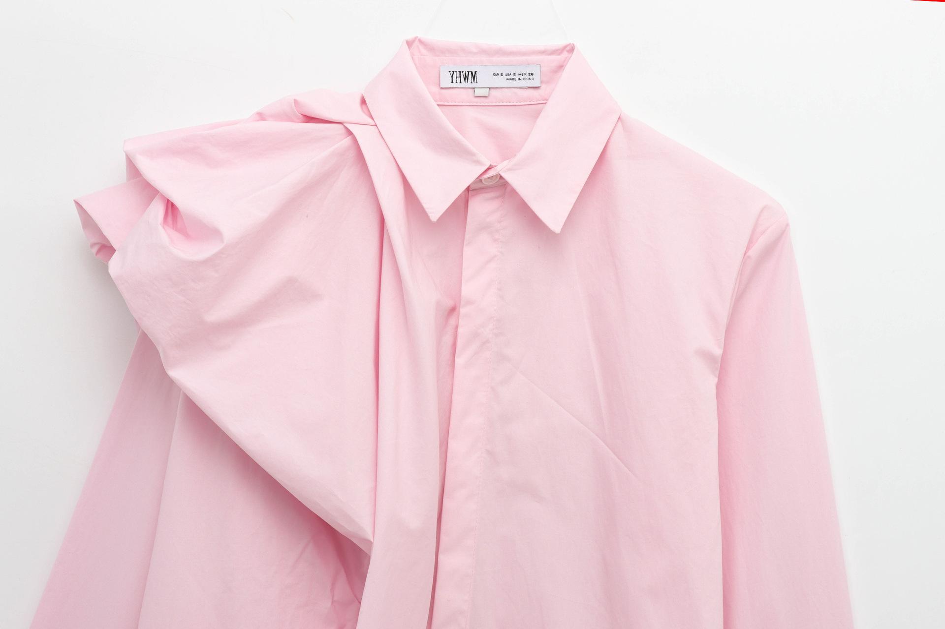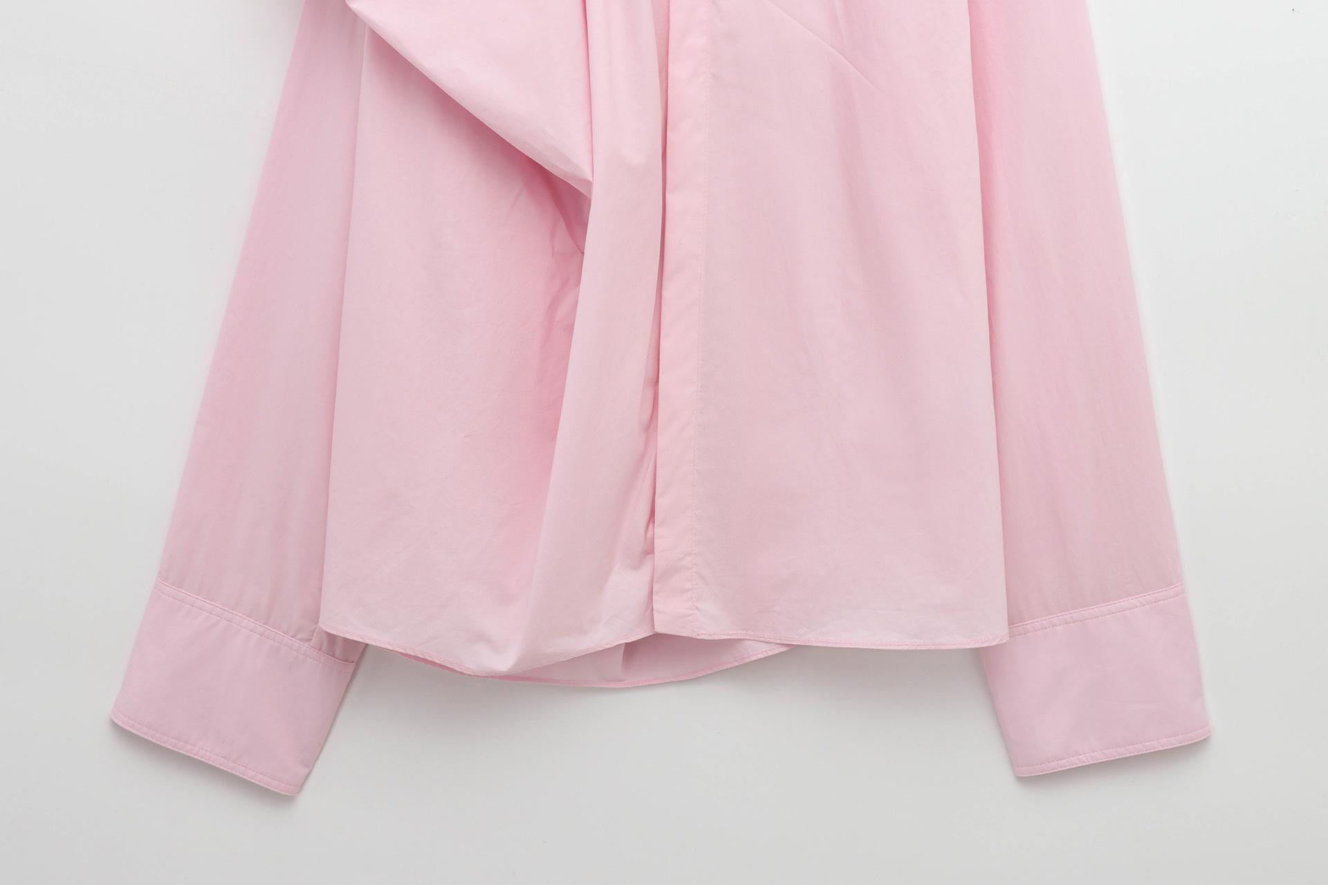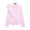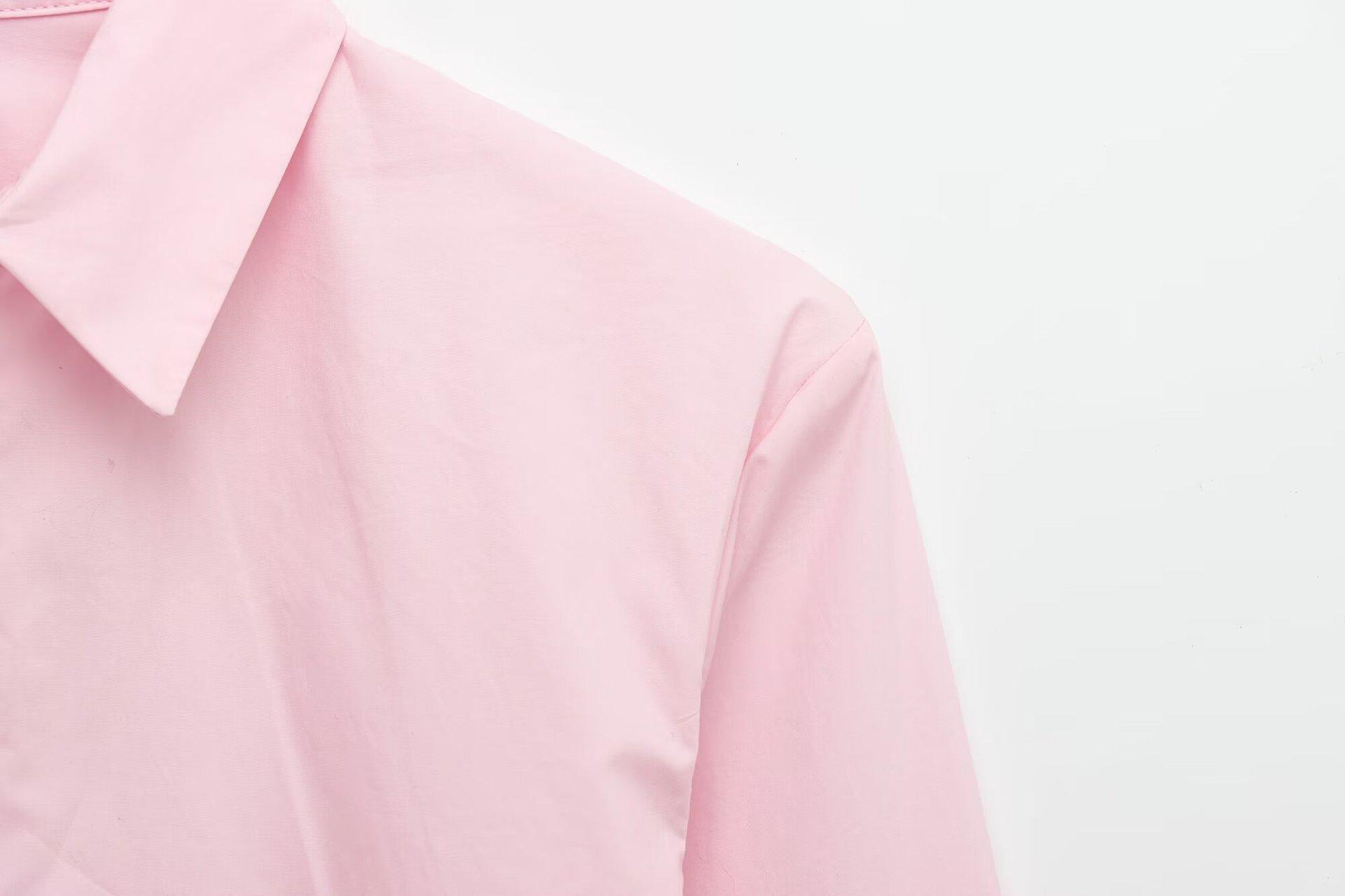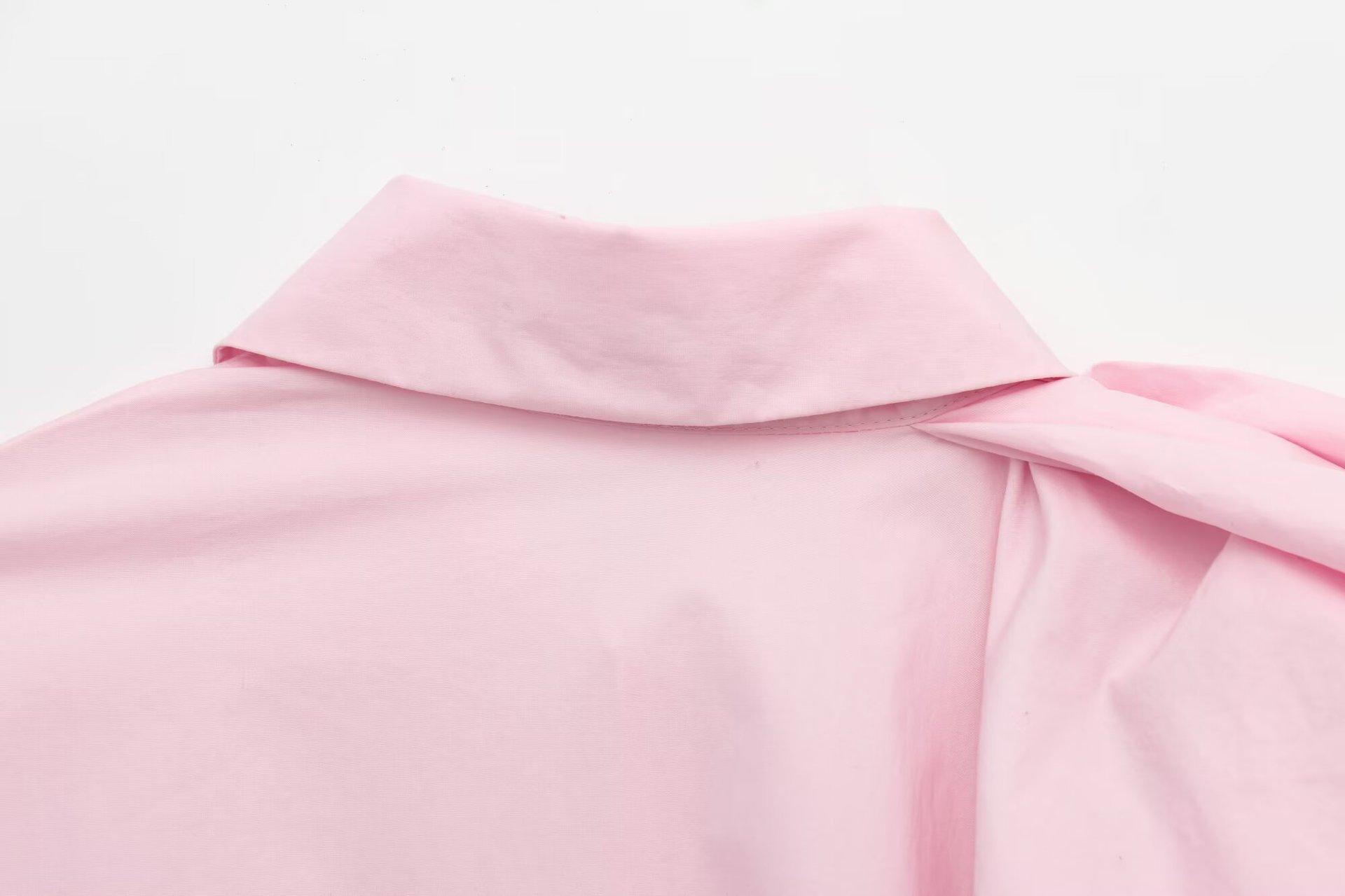 Moda de primavera 2025 europea y americana para mujer, camisa popelina de diseño simple con hombros abullonados B6-7655