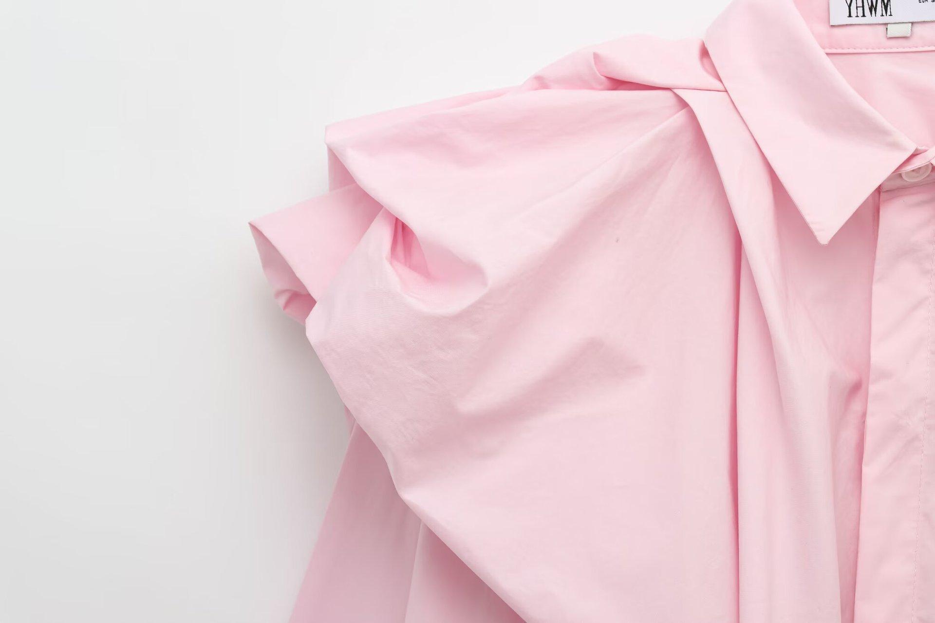 Moda Europea y Americana Primavera 2025 Nueva Camisa Popelina Diseño Simple de Hombro Esponjoso para Mujer