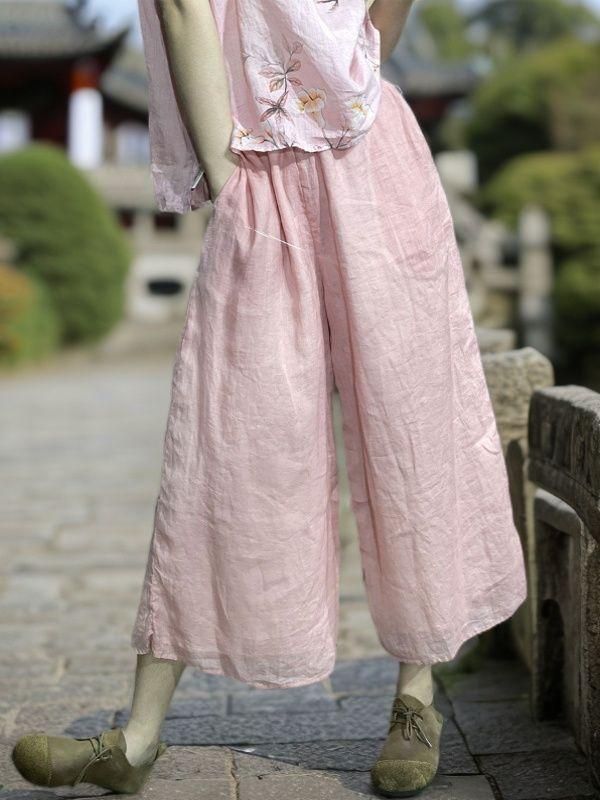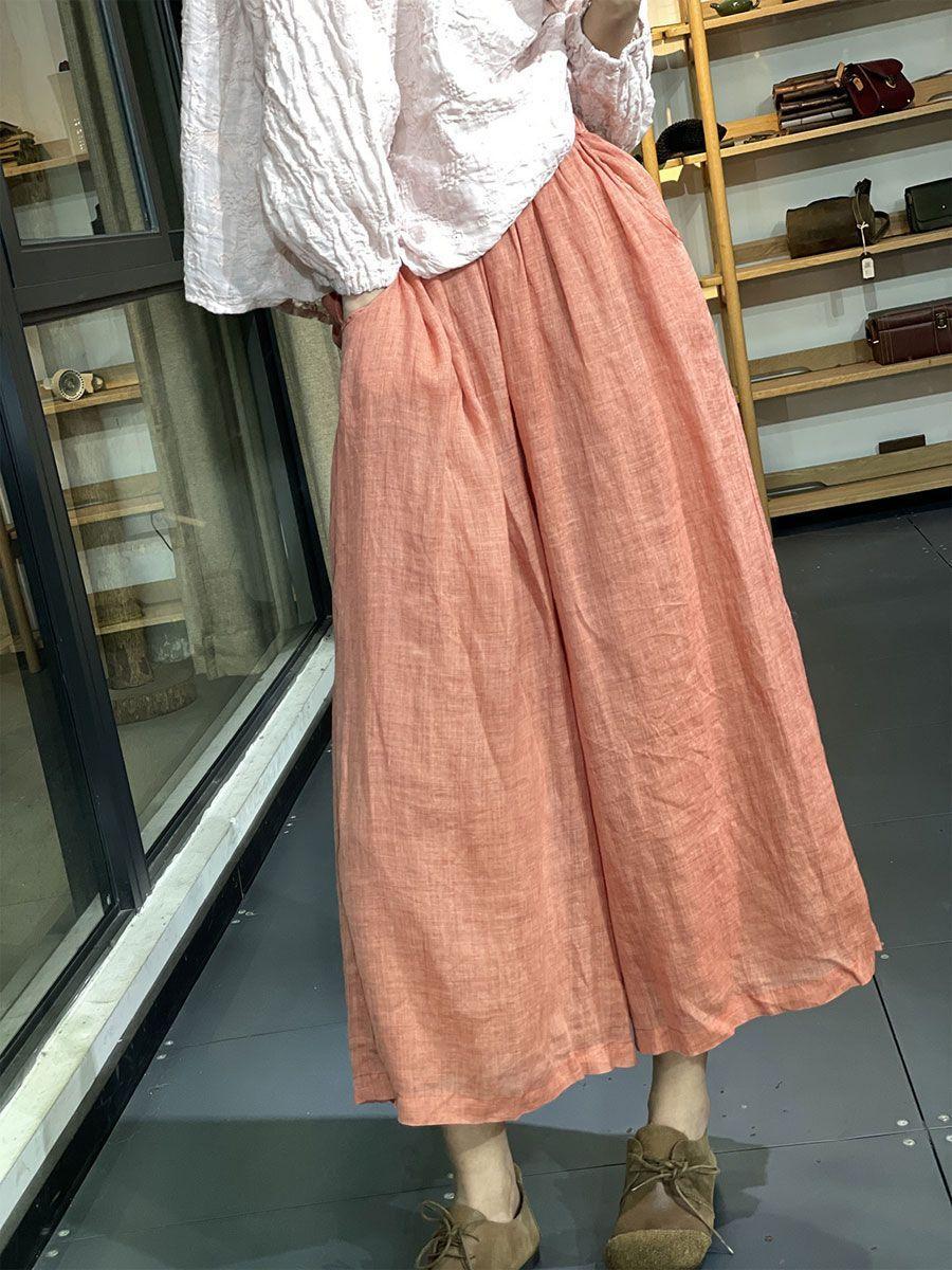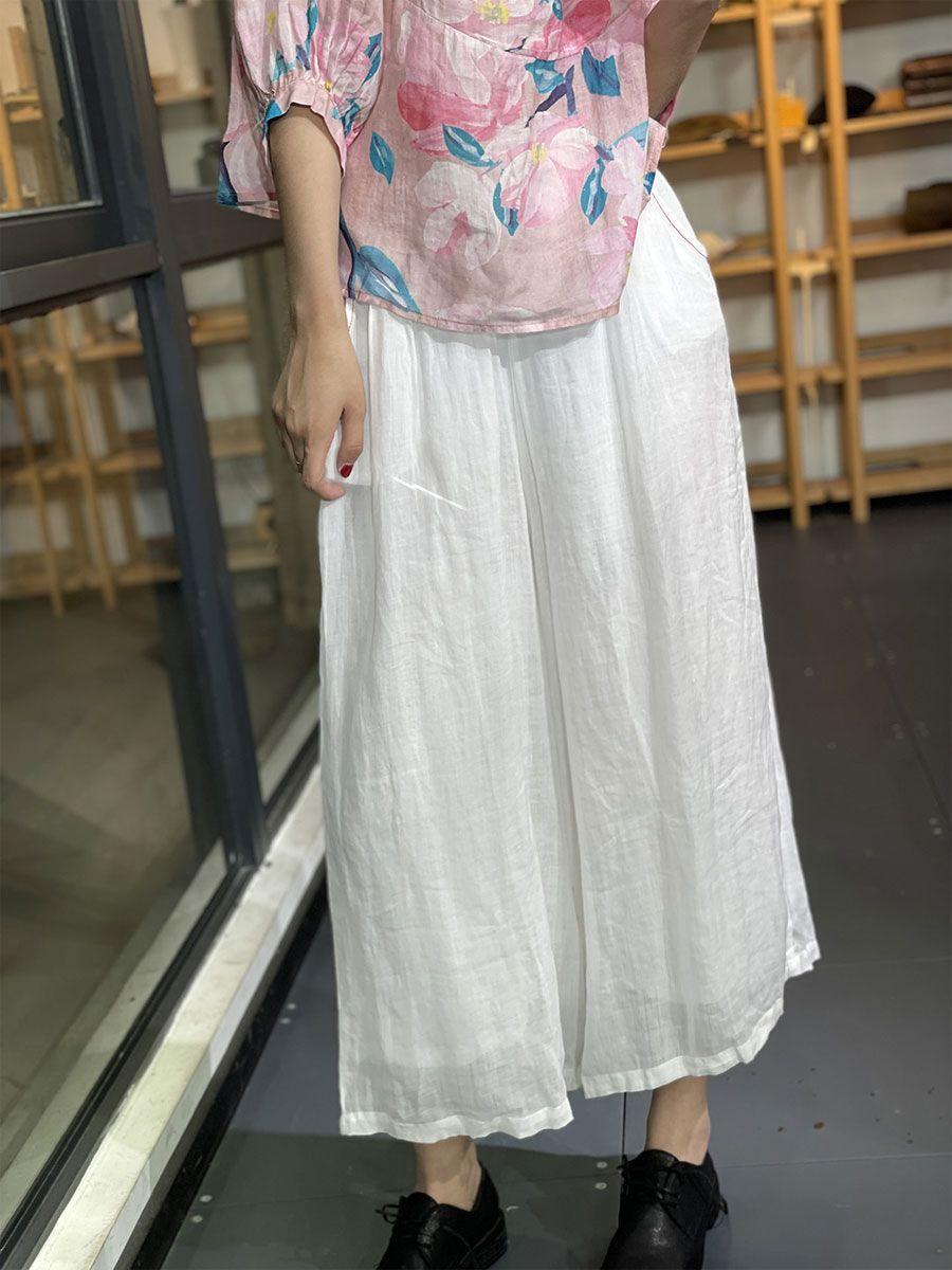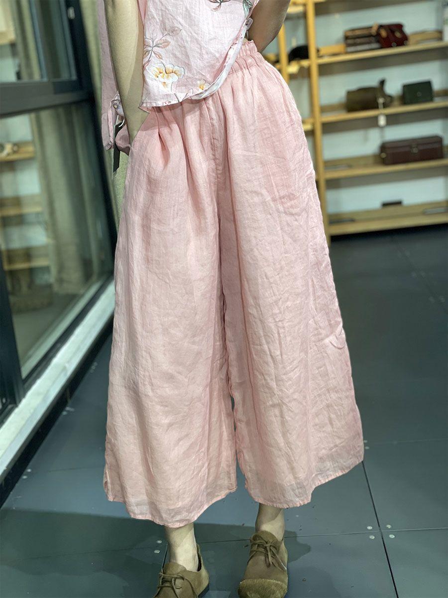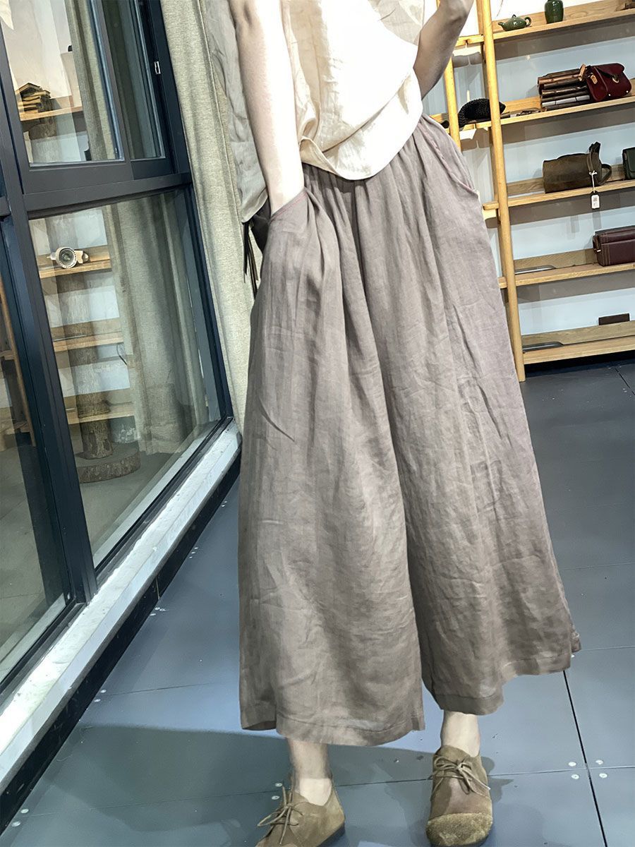 Talla grande Doble Capa Ligero Delgado Cáñamo Pantalones Pierna Ancha 2025 Primavera y Verano Nuevo Suelto Sencillo Artístico Combinable Color Sólido Pantalones Capri para Mujer