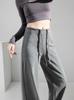 Pantalones deportivos grises de pierna recta para mujer, primavera y otoño 2025, nuevos pantalones de cintura alta con aberturas laterales, pantalones casuales de pierna ancha pequeños de verano.
