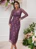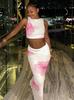 Ropa de mujer transfronteriza de verano 2025, nuevo y elegante conjunto de vestido de dos piezas de malla estampada