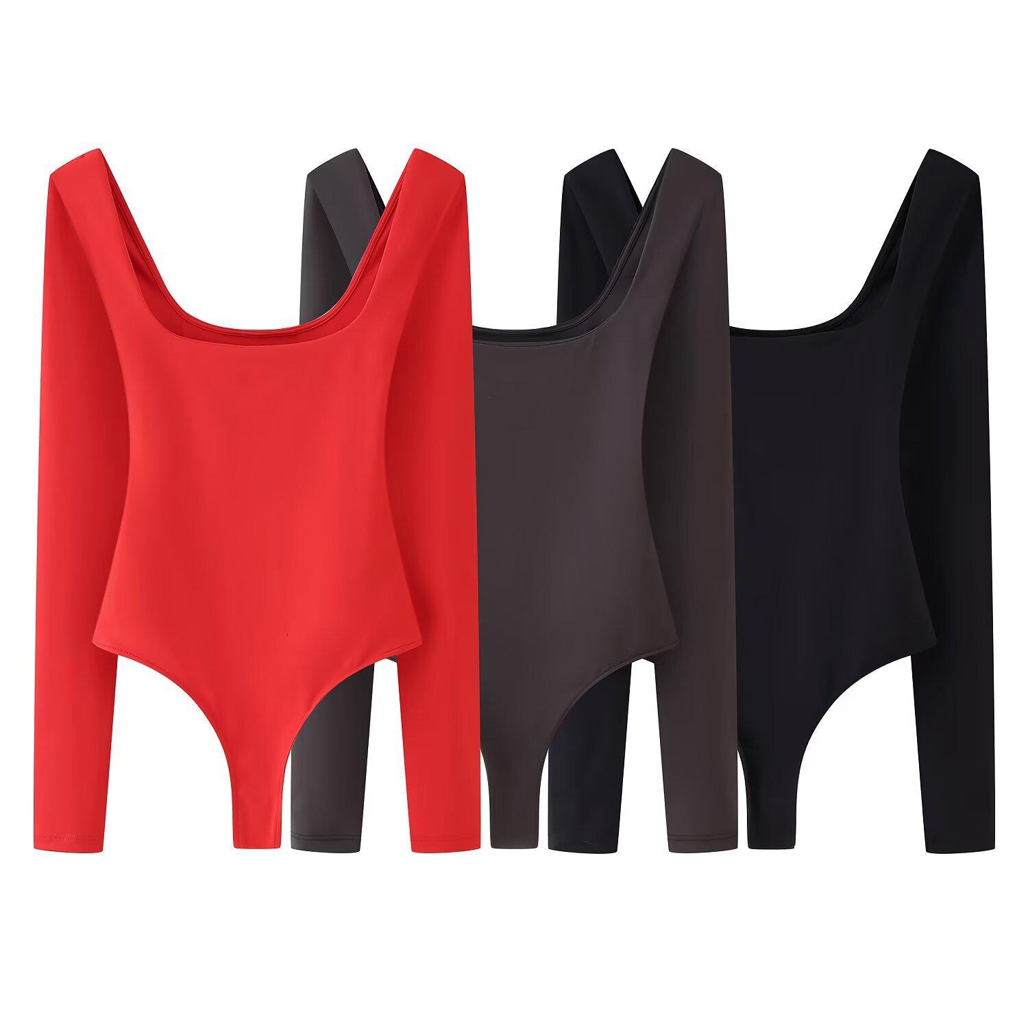 Ropa de mujer europea y americana transfronteriza 2025 primavera y verano nueva moda mameluco de nailon con cuello cuadrado 5039386800