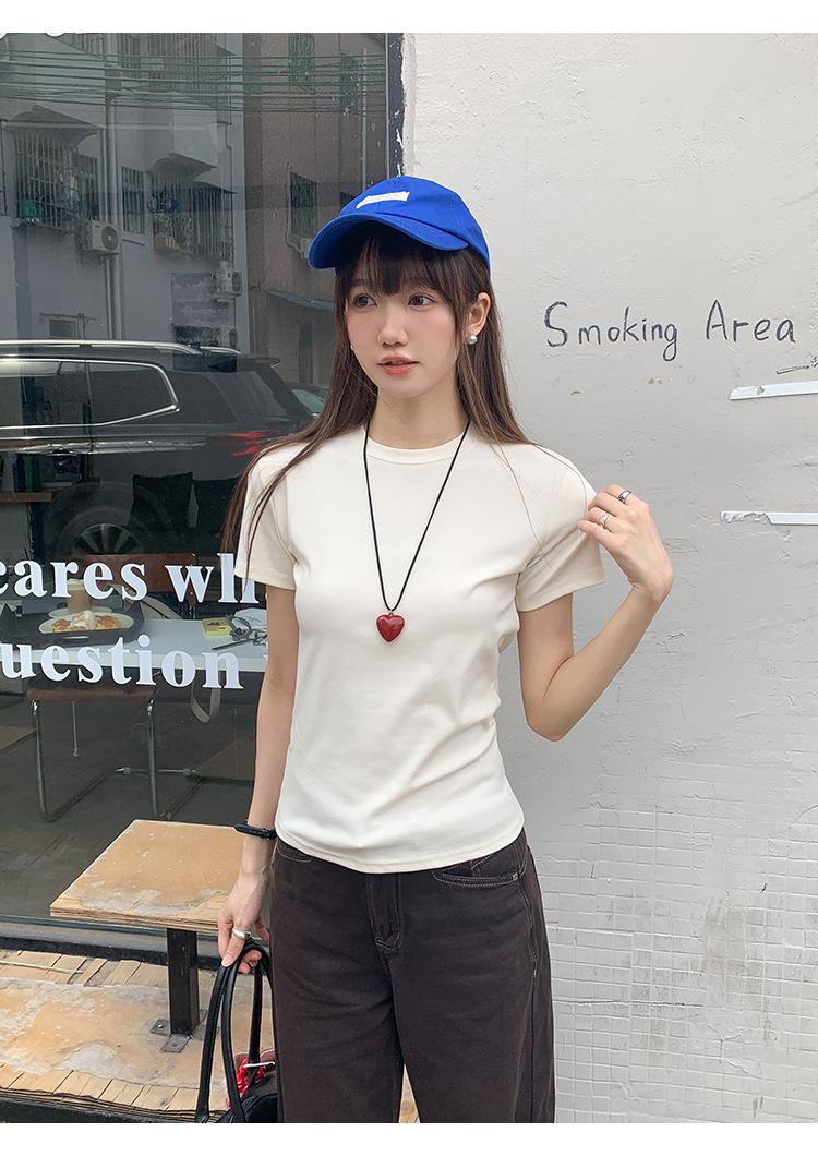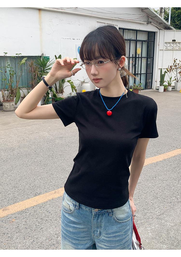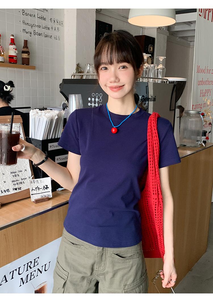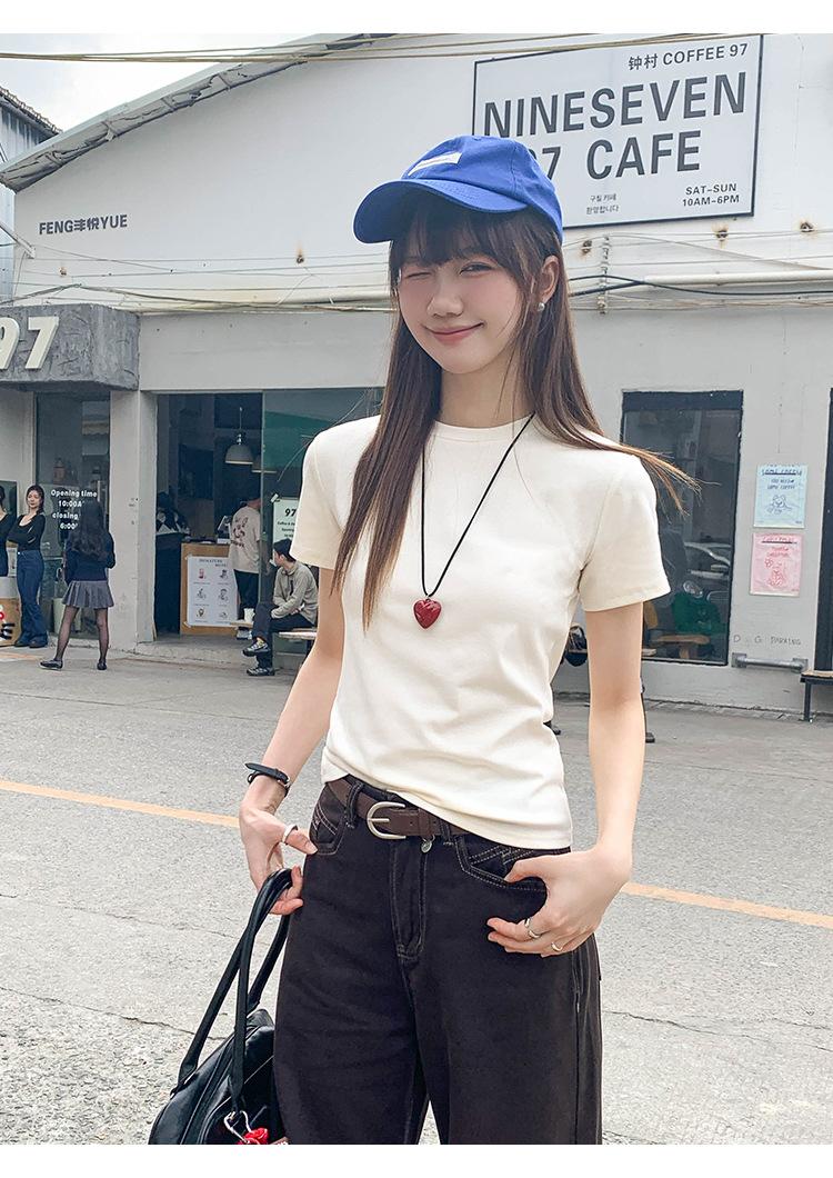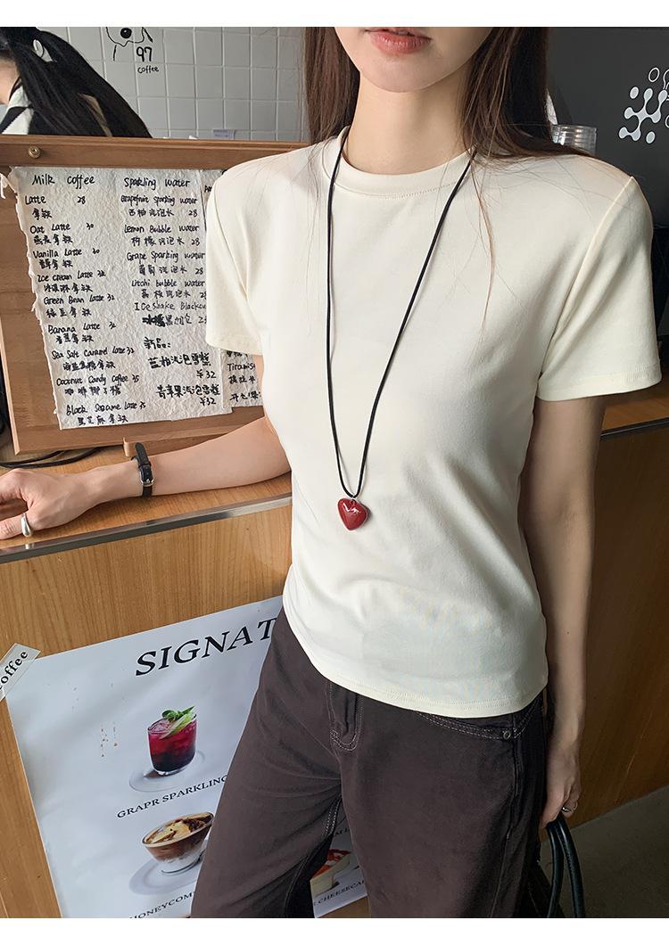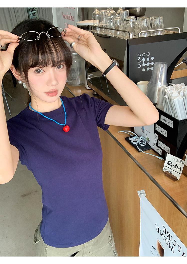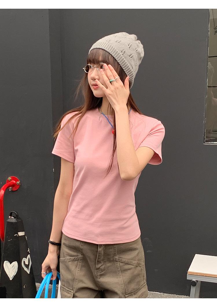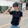 Camiseta de manga corta con hombros descubiertos para mujer, verano 2025, nueva camiseta ajustada adelgazante, combinable con todo, color liso, con base de dopamina.