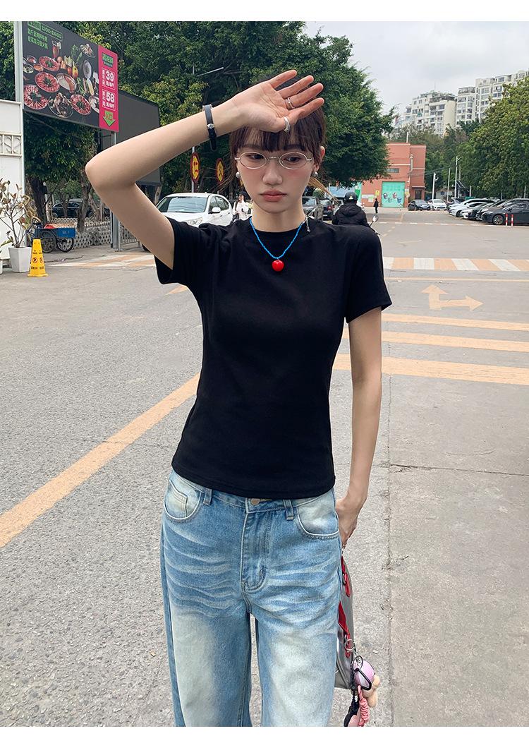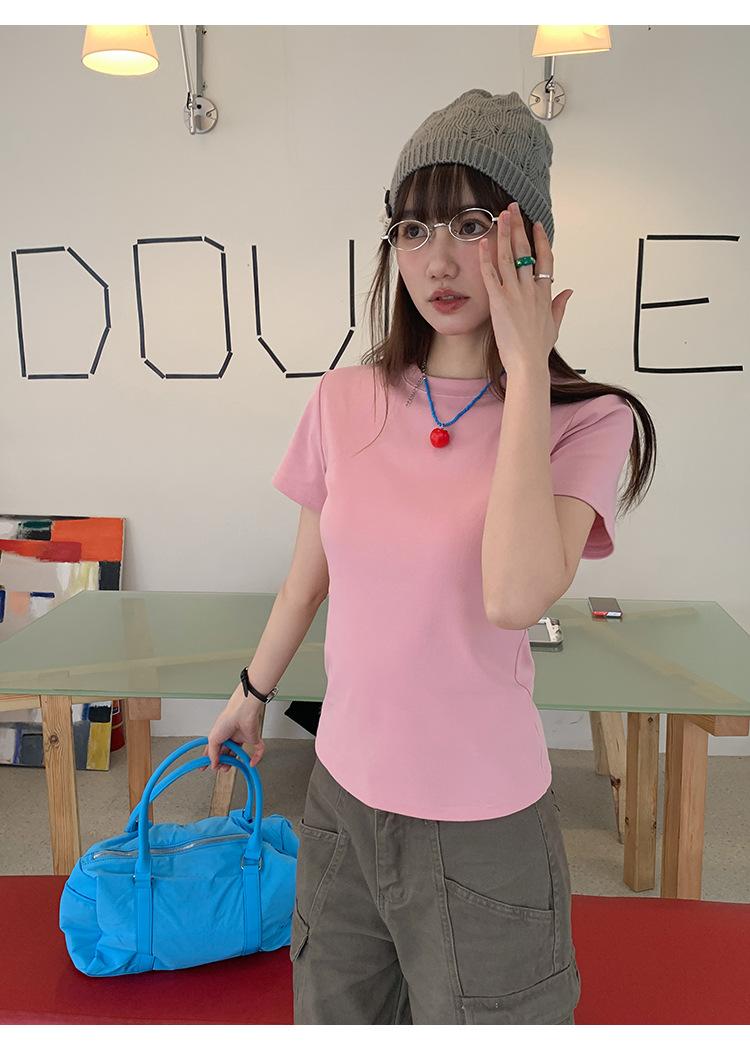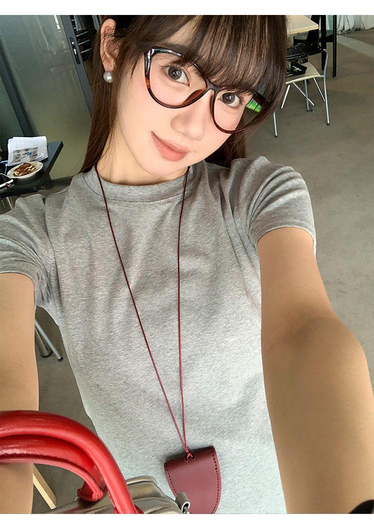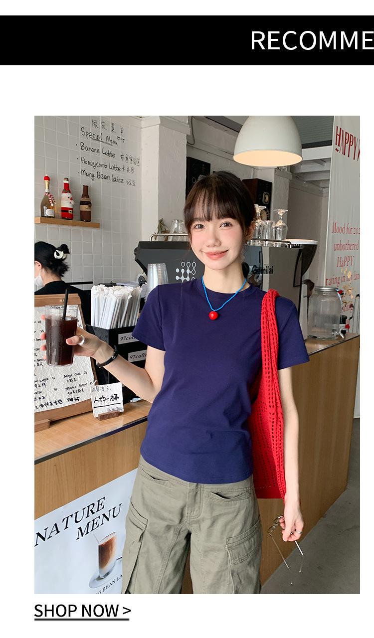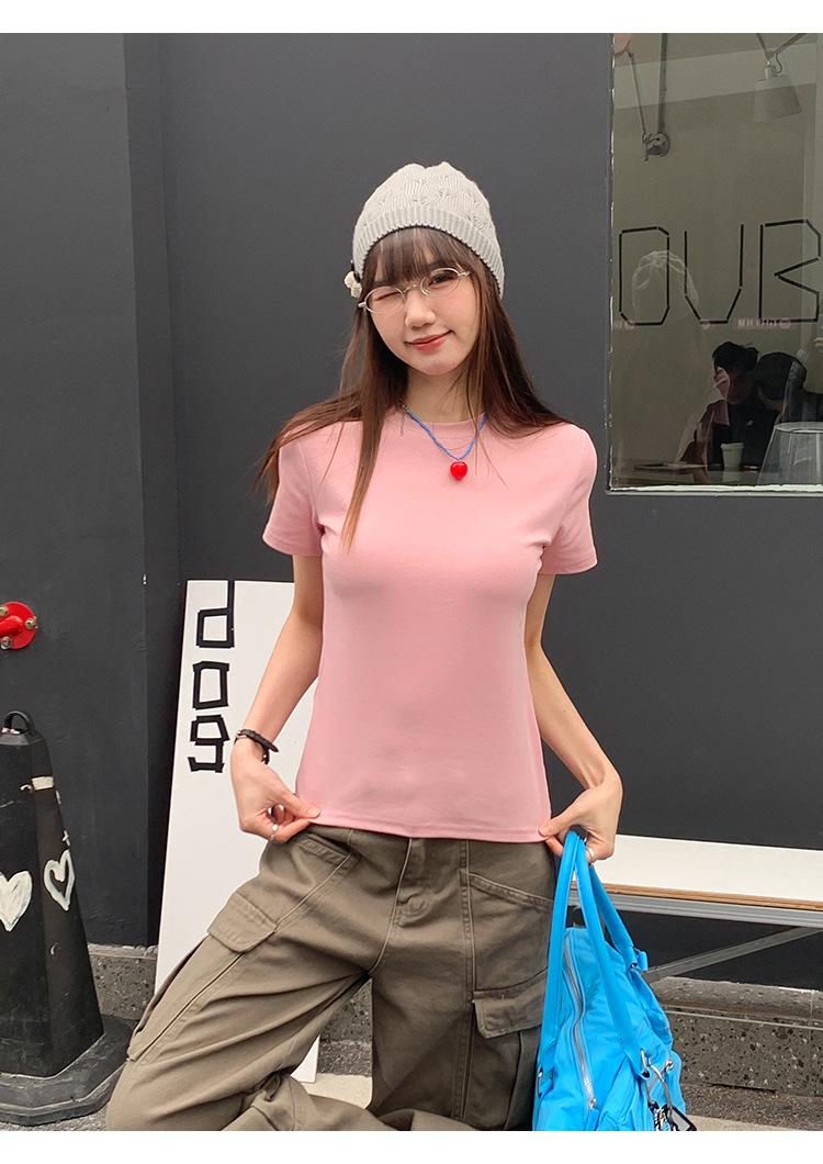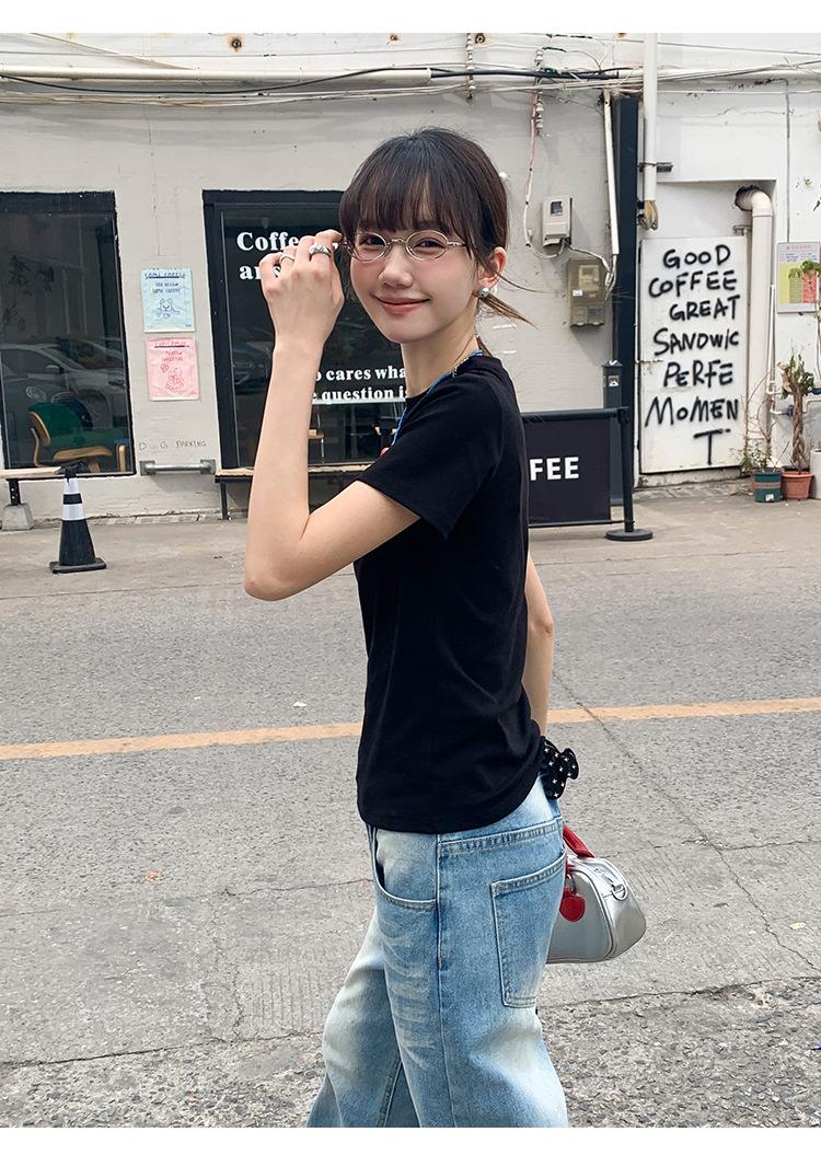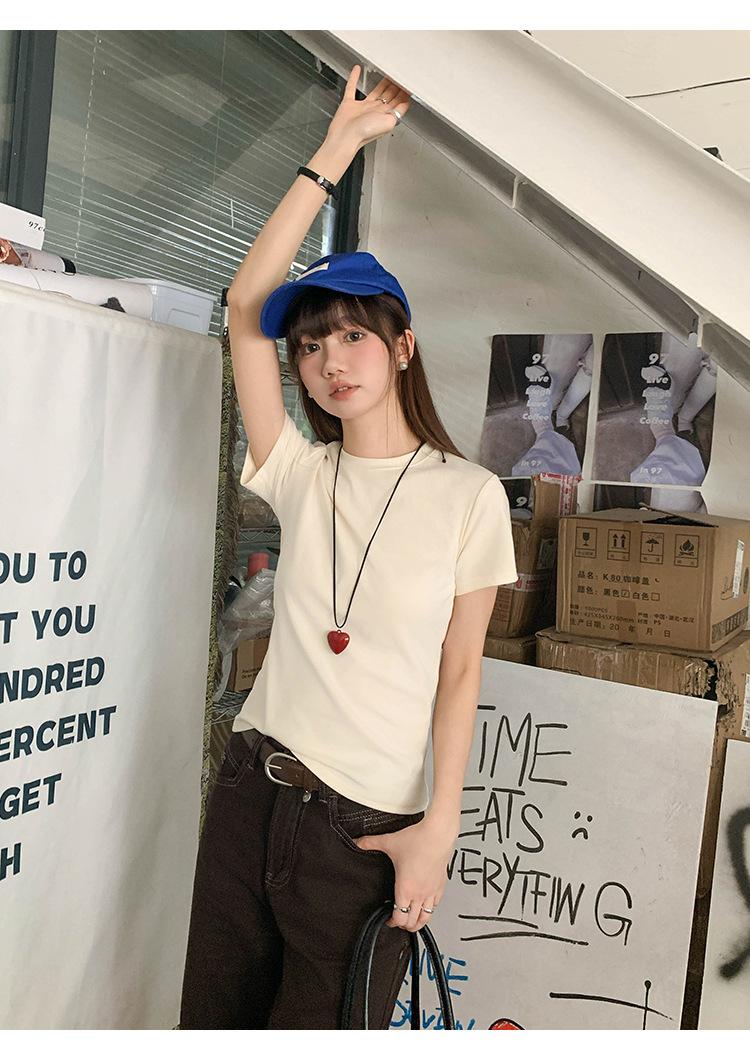 Camiseta de manga corta con hombros descubiertos para mujer, verano 2025, nueva camiseta ajustada adelgazante, combinable con todo, color liso, con base de dopamina.
