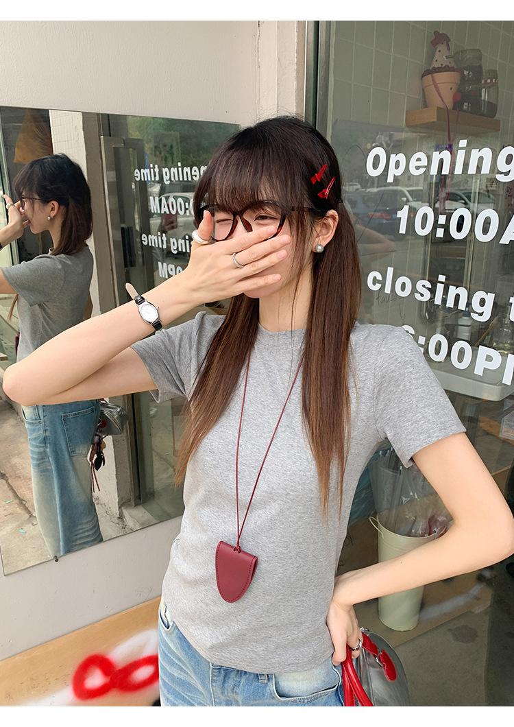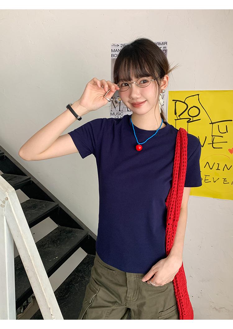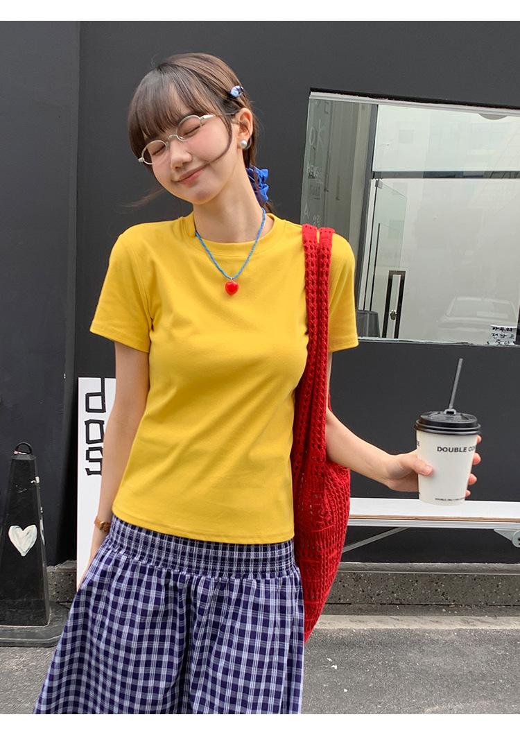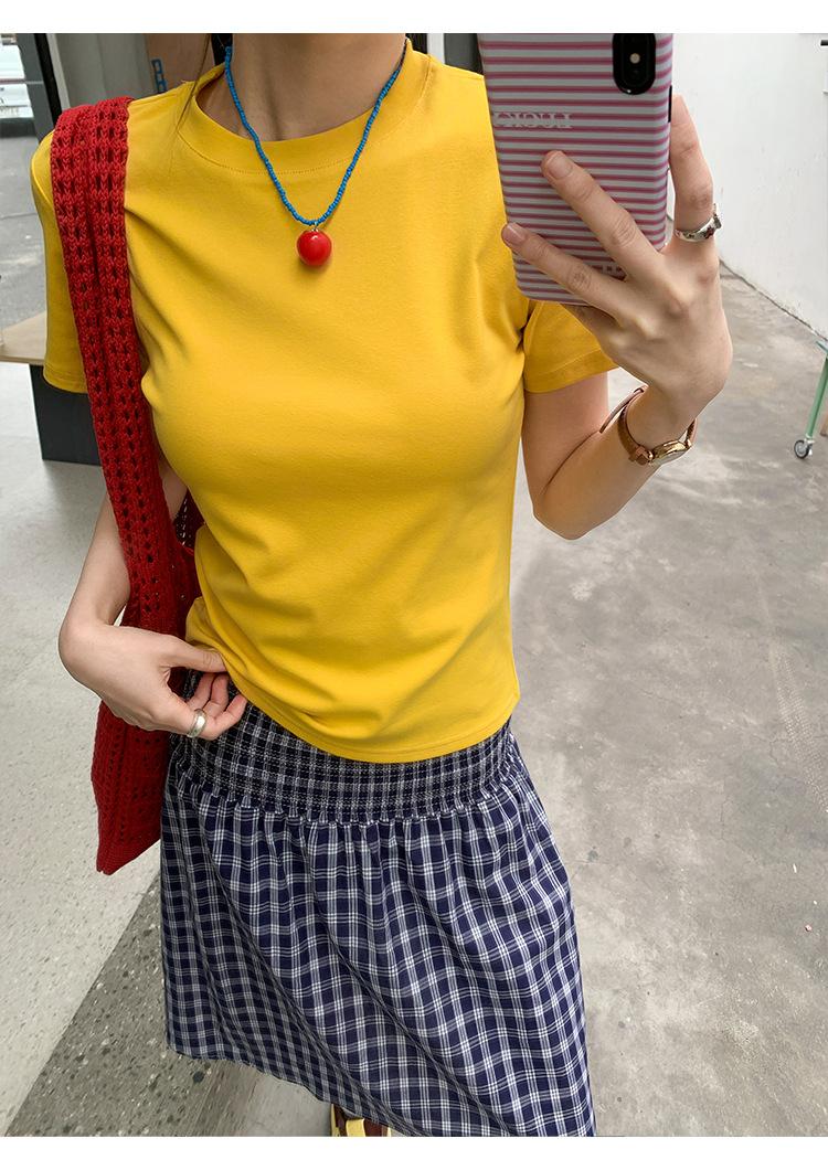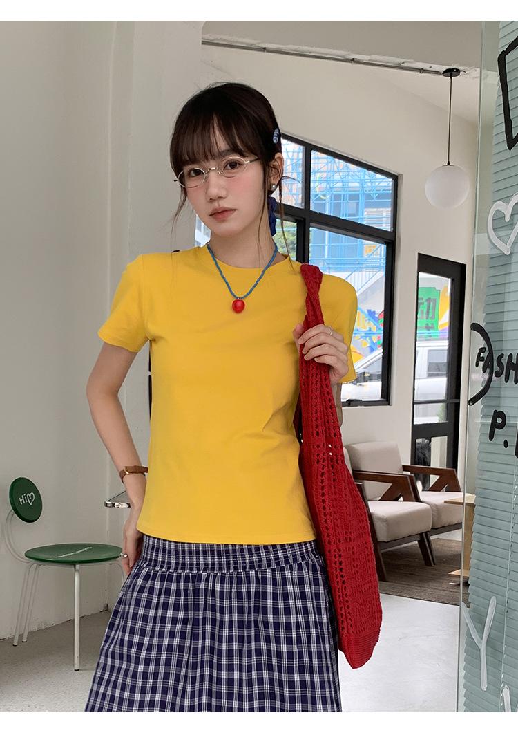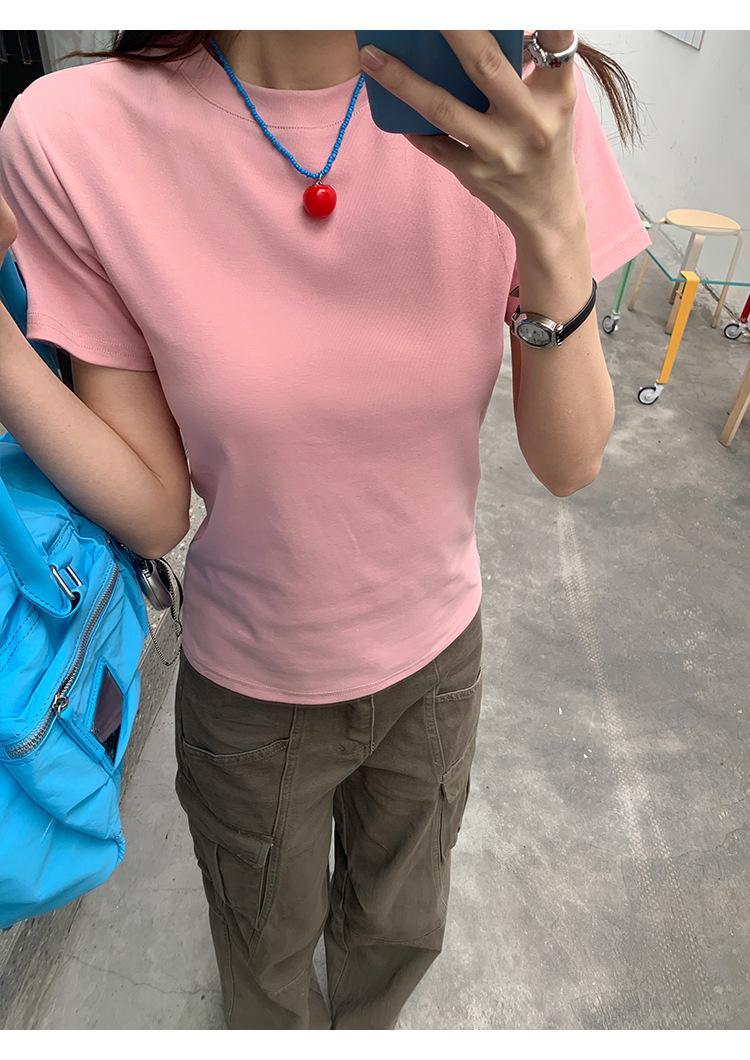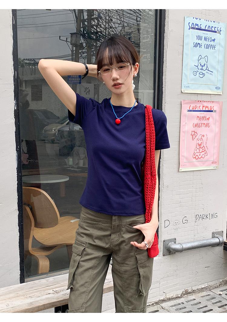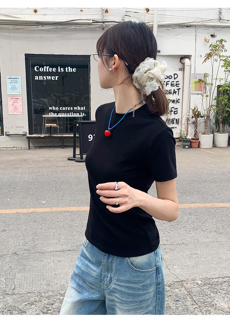 Camiseta de manga corta con hombros descubiertos para mujer, verano 2025, nueva camiseta ajustada adelgazante, combinable con todo, color liso, con base de dopamina.