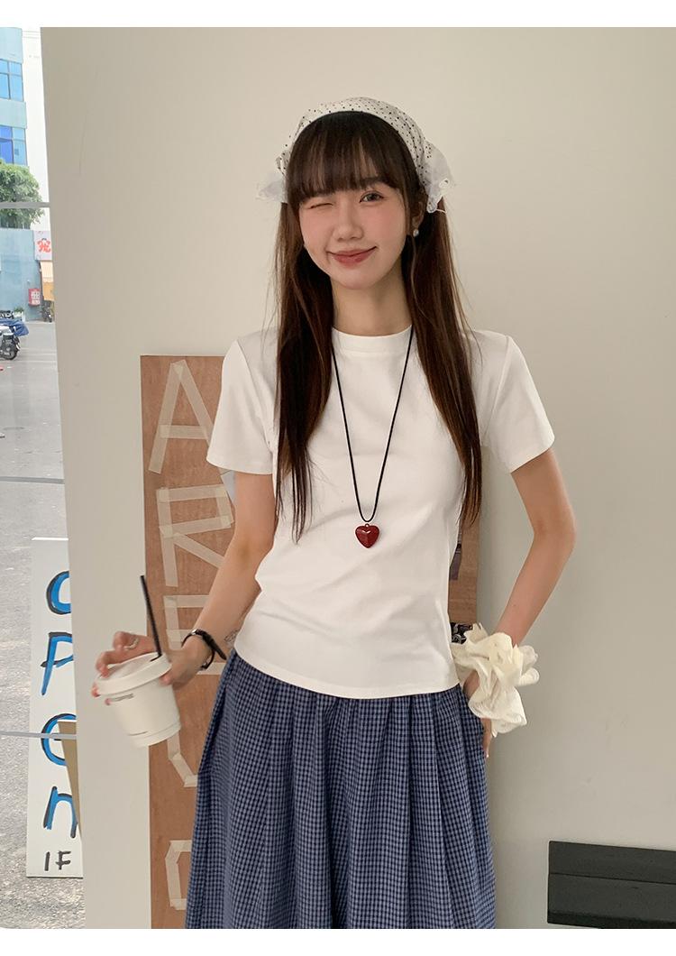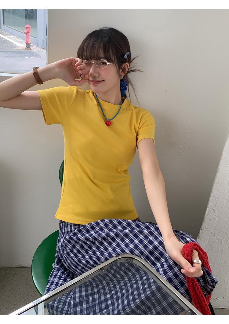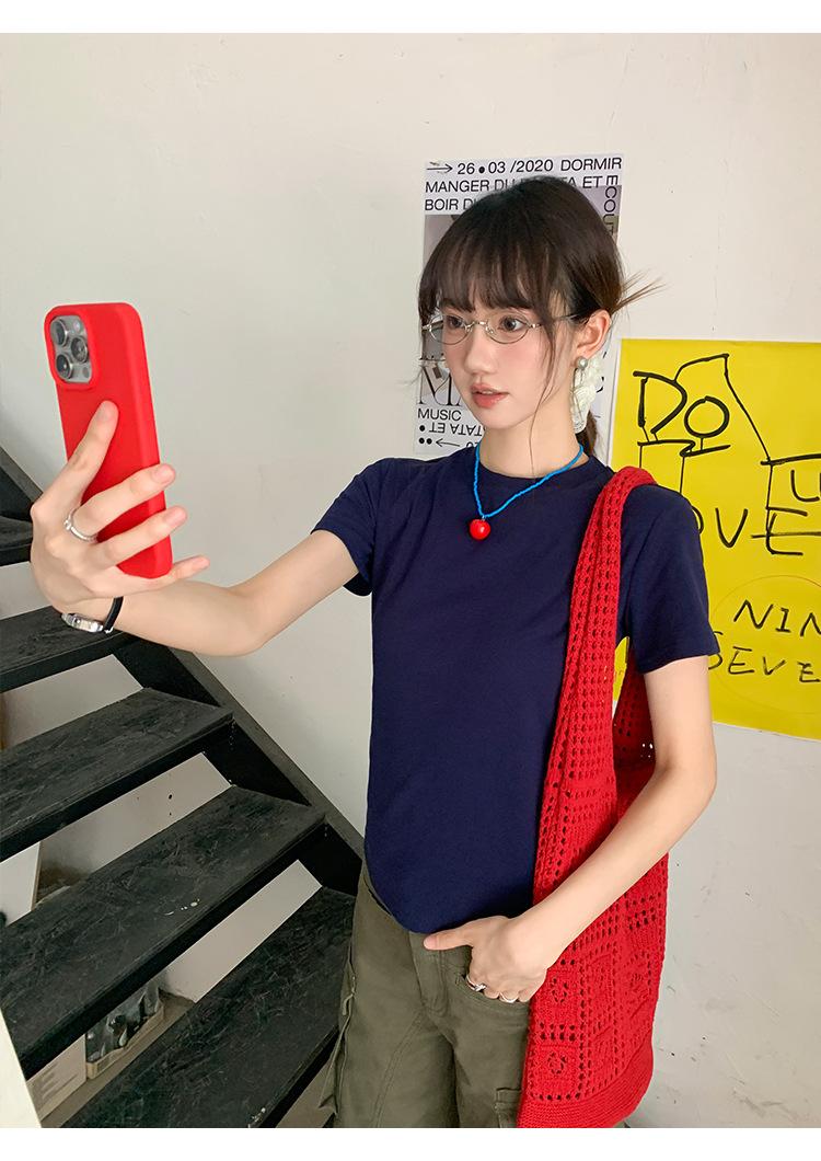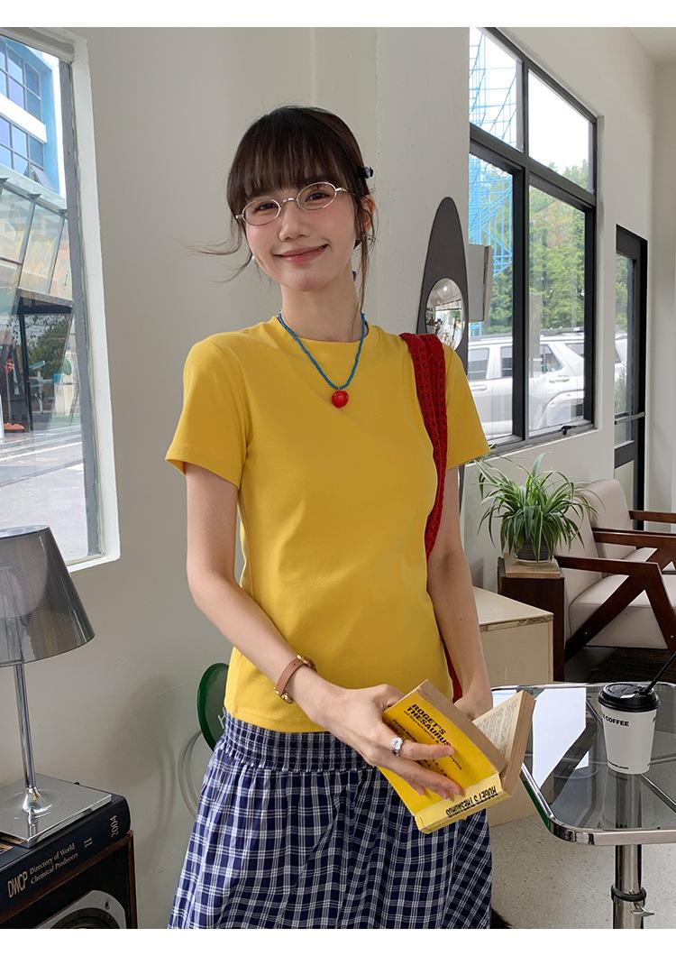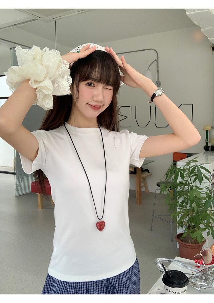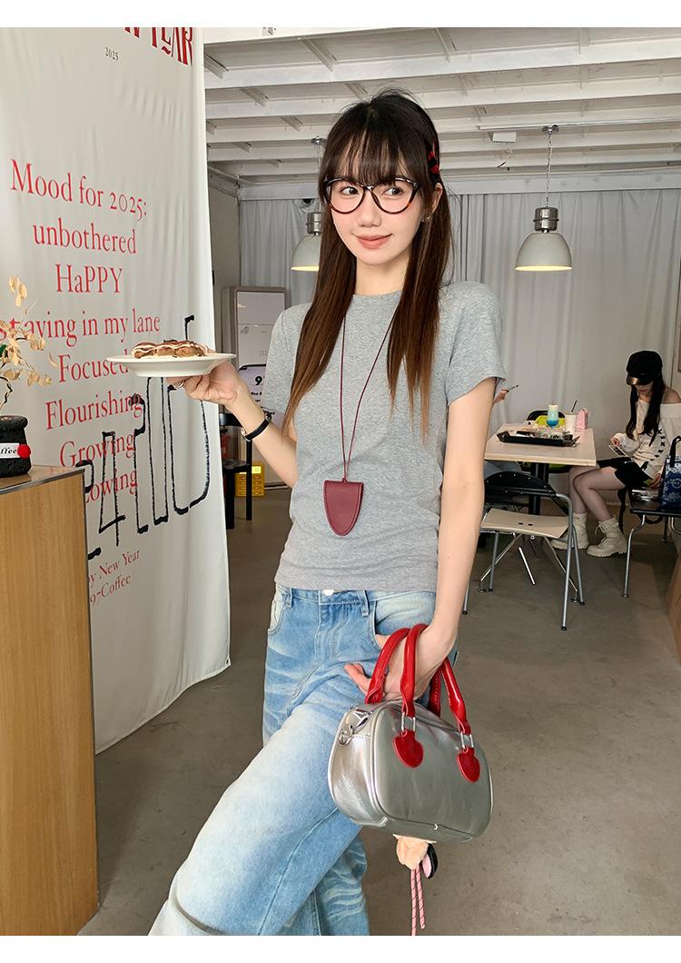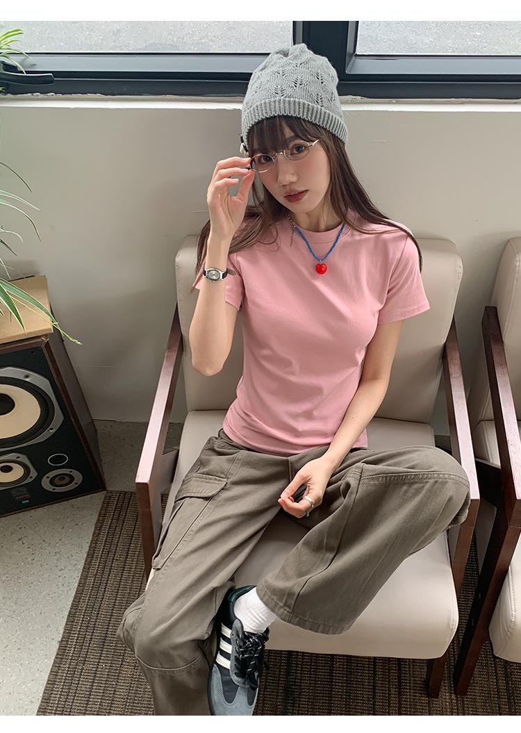 Camiseta de manga corta con hombros descubiertos para mujer, verano 2025, nueva camiseta ajustada adelgazante, combinable con todo, color liso, con base de dopamina.