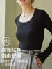 Camisa básica de cuello cuadrado negro para mujer 2024, nueva prenda interior ajustada de cuello bajo para otoño e invierno, top corto ajustado con cuello grande