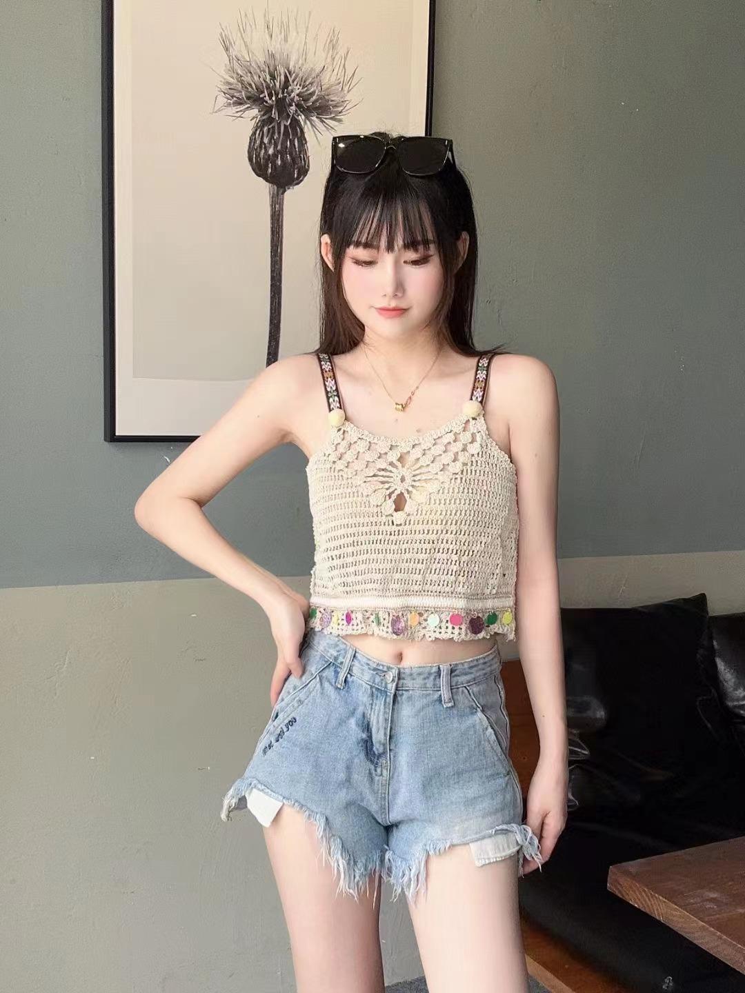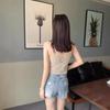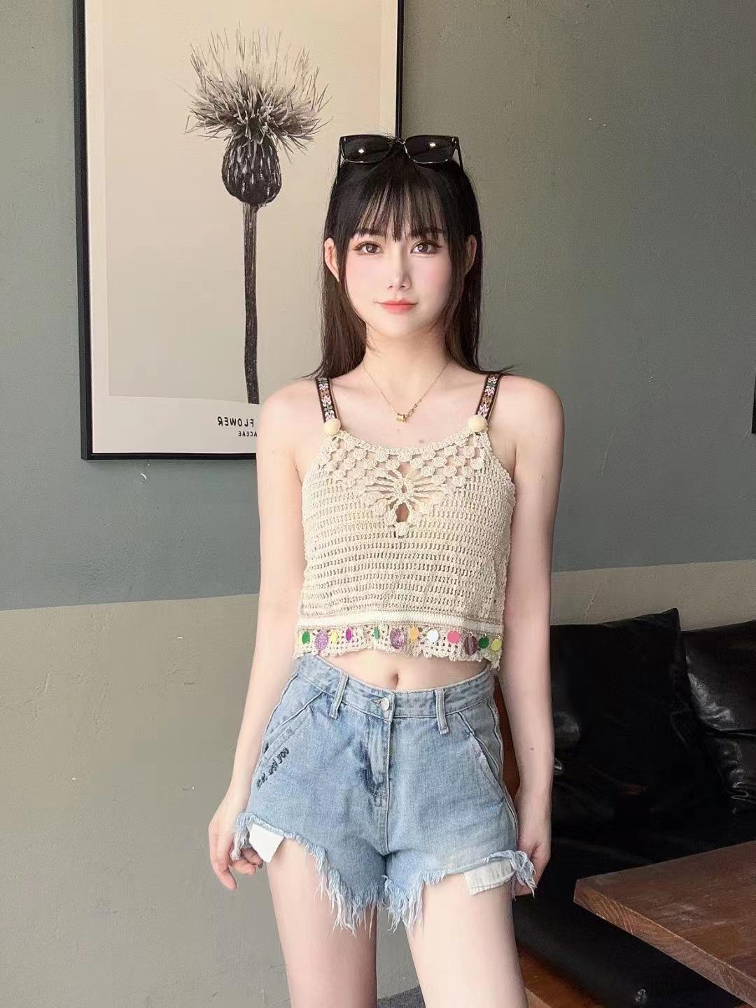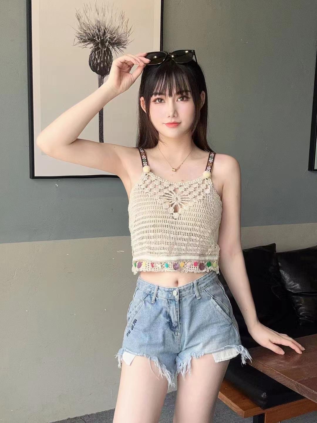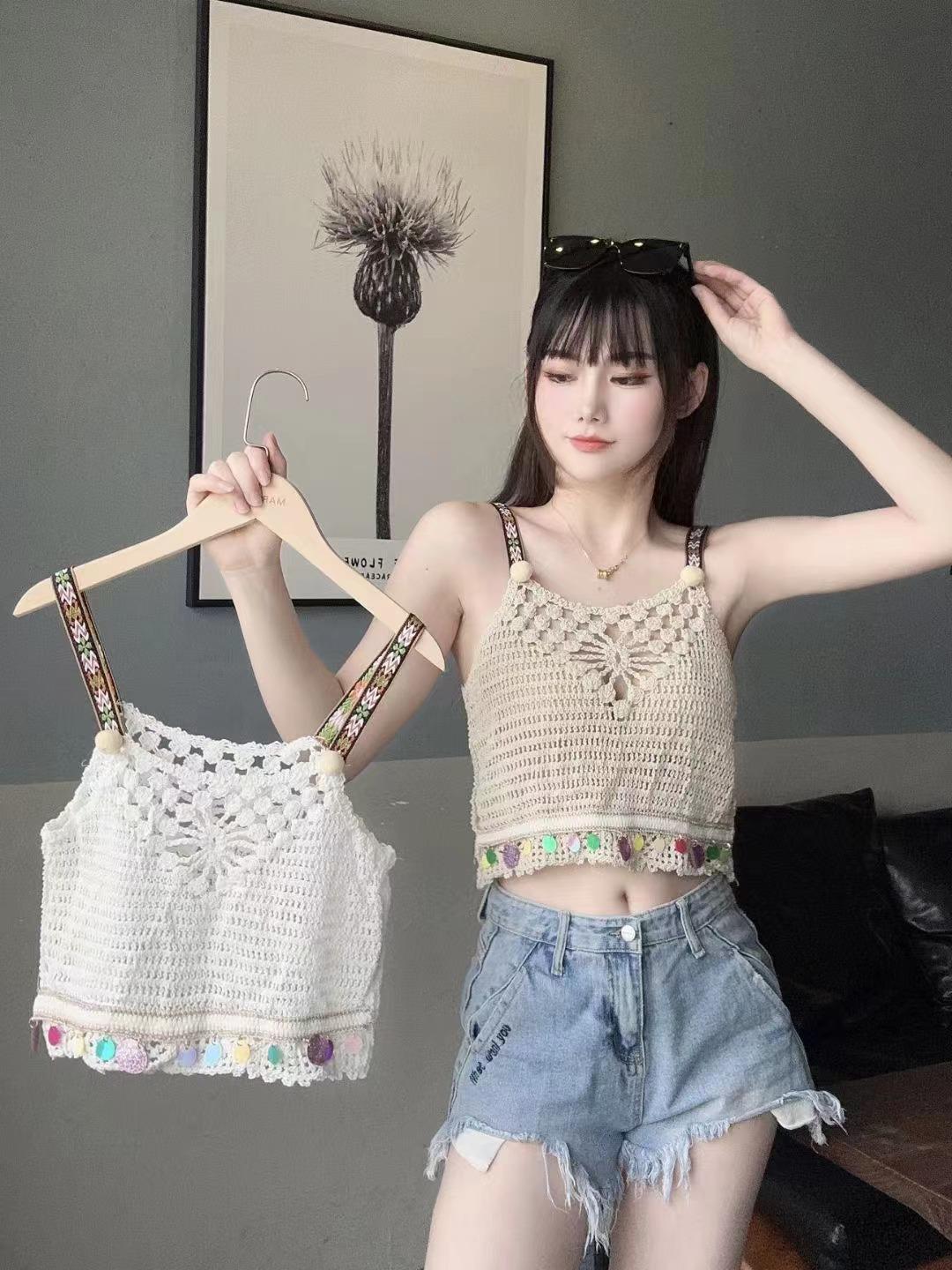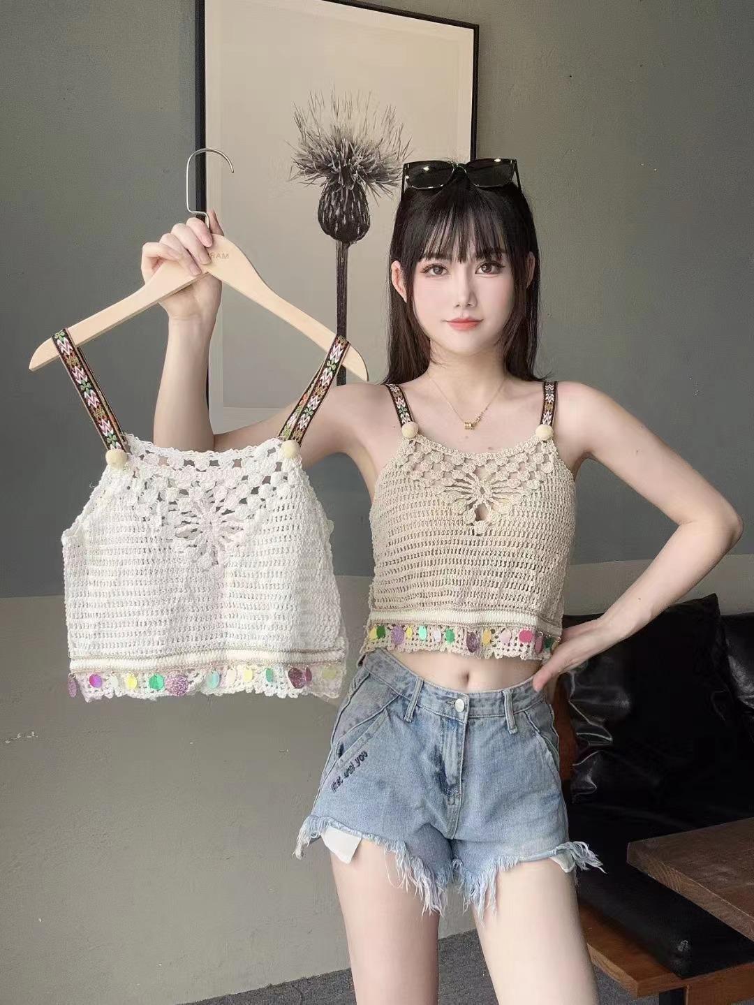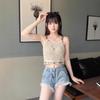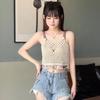 Camiseta de tirantes finos para mujer, estilo veraniego, estilo interior ajustado, corta, sexy y hueca.