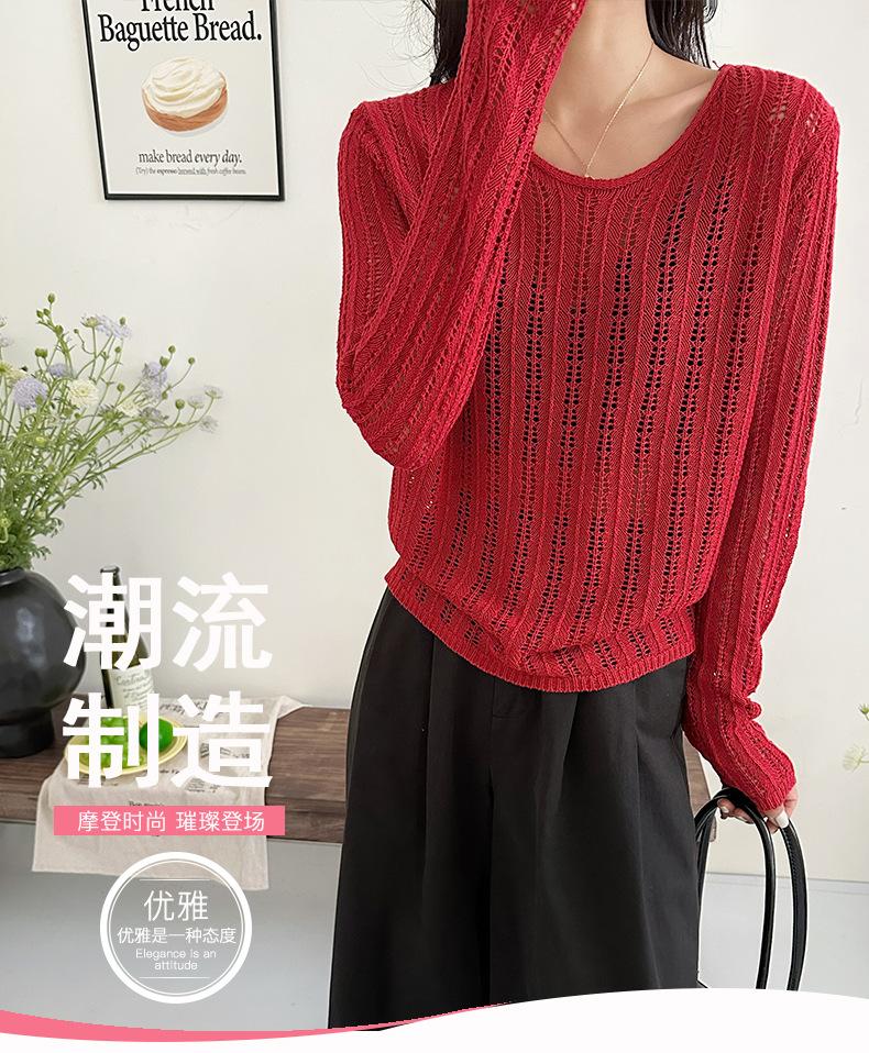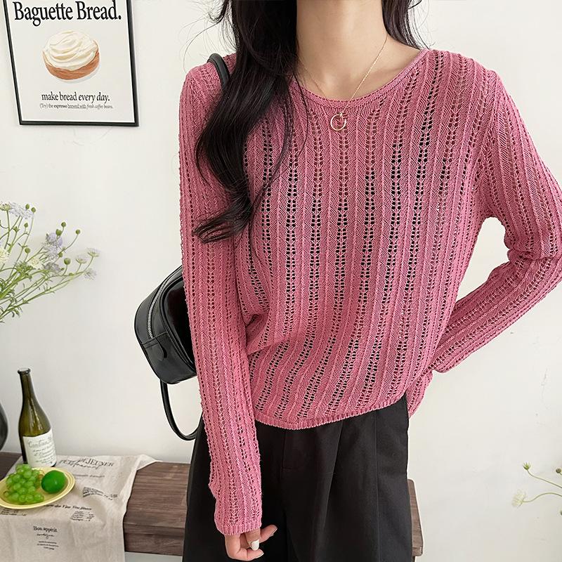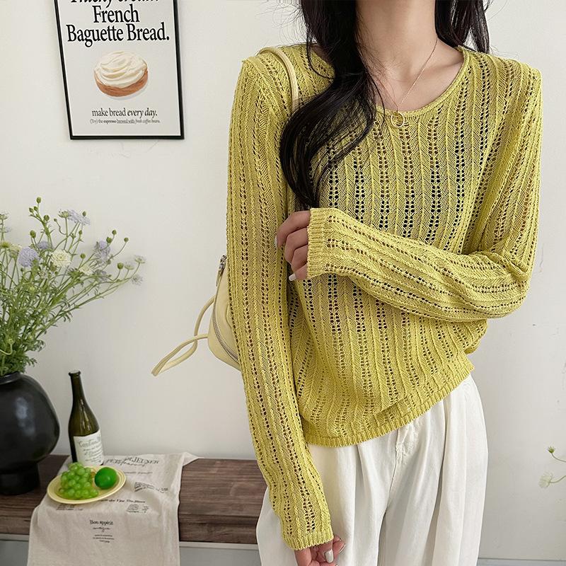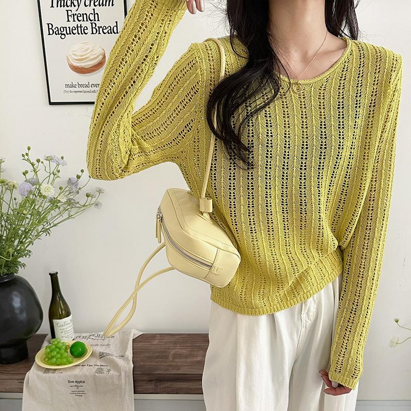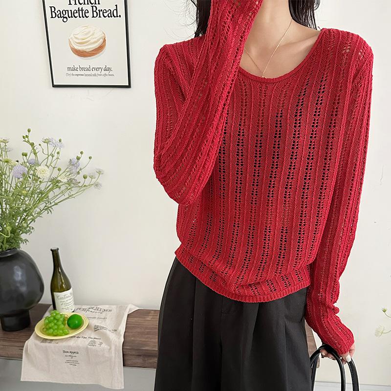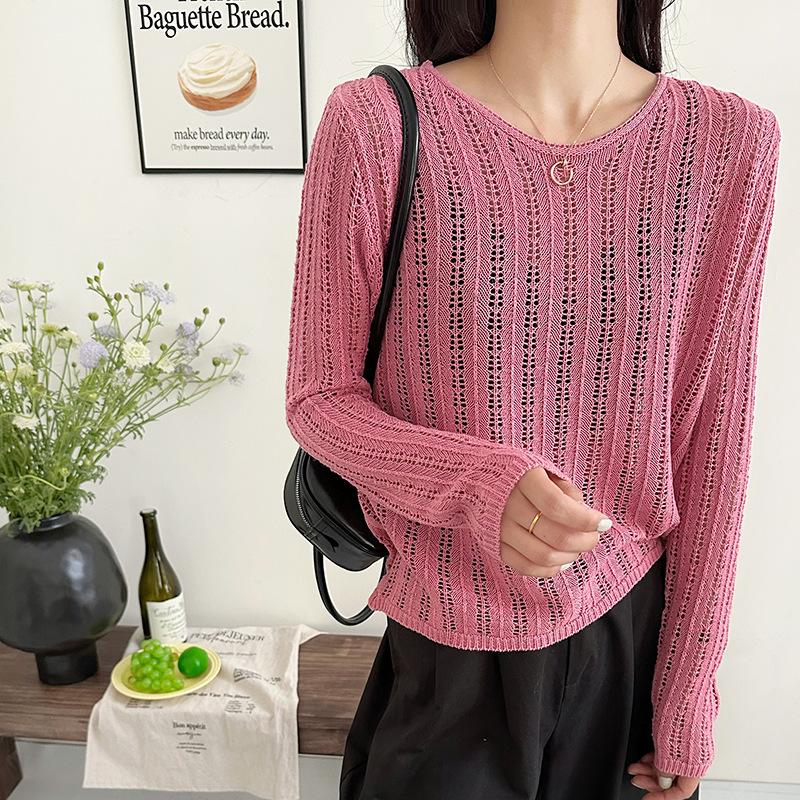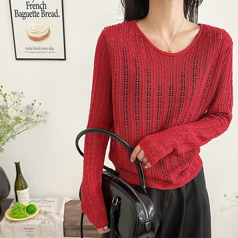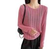 Verano Mujer Diseño Delgado Nicho Recorte Tejido de Punto Mujer 2025 Nuevo Suelto Aire Acondicionado Protección Solar Camisa Top